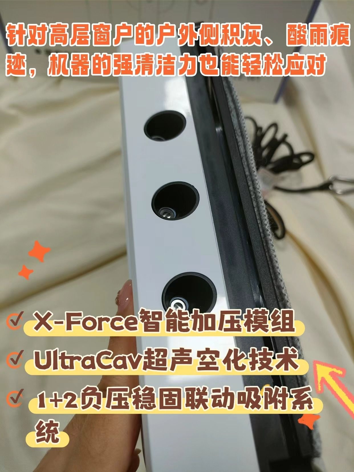 擦窗机器人安全下车 作为要带娃又要做家务的宝妈,擦窗真的是我的噩梦! 以前趁娃睡午觉擦窗,刚擦一半娃就醒了,又要哄娃又要惦记擦窗;探身子擦外窗更是提心吊胆,就怕吓到屋里的娃,直到入了希亦W1,才算真正解放双手! 之前硬挤时间用抹布擦,匆匆忙忙擦完全是水痕,阳光一照像花脸猫 结果希亦W1走一遍,清洁布上全是黑黢黢的灰絮+水垢印,才知道之前根本没擦干净! 合着以前都是白忙活,还浪费了宝贵的带...