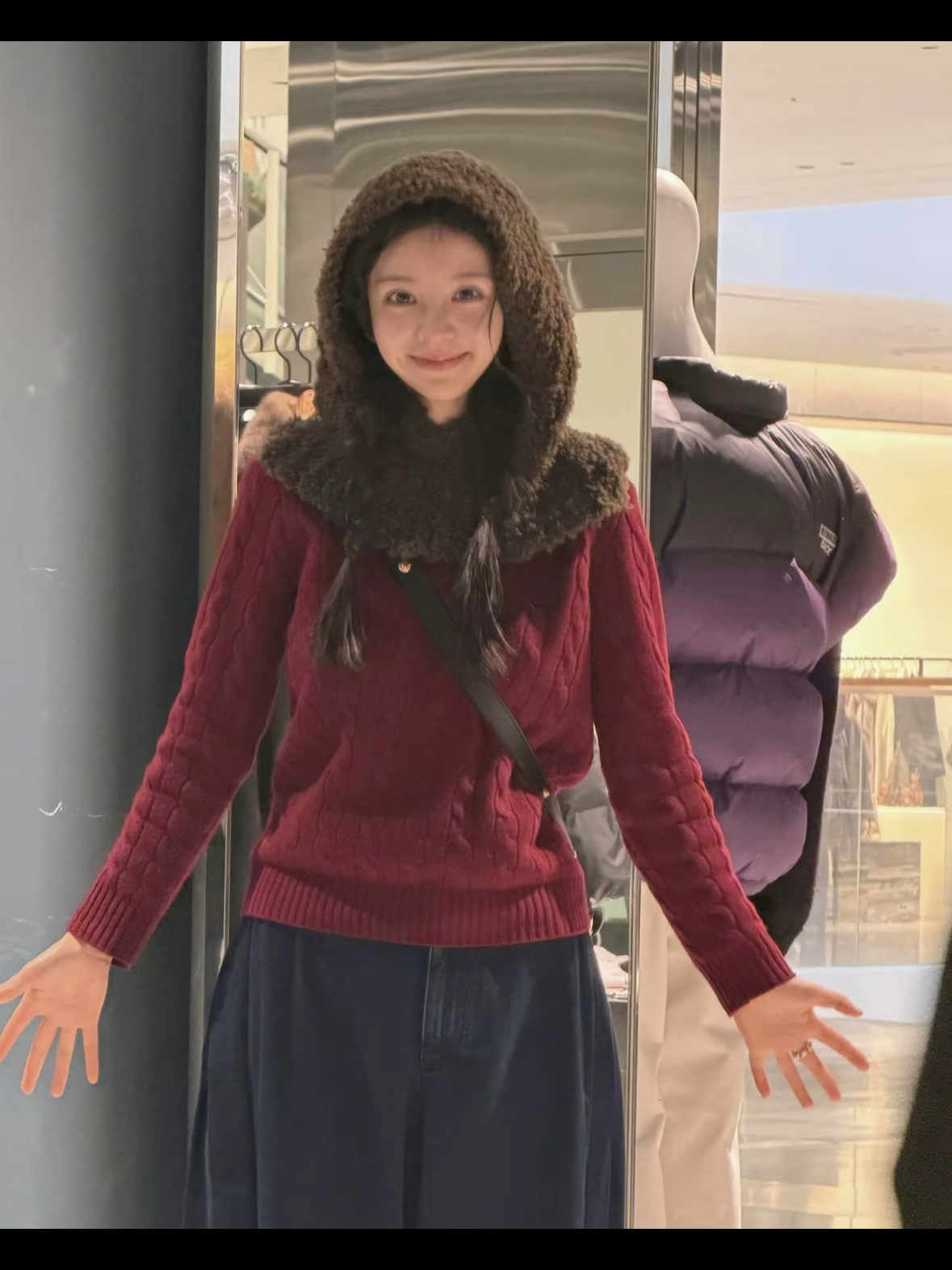 田曦薇这顶NANGA雷锋帽是整套穿搭的“甜酷开关”——软乎乎的版型中和了酒红针织衫的温柔,自带松弛随性感,和精致的GUCCI包形成反差萌,既保留甜妹的娇憨,又用帽型增加了造型记忆点,让温柔穿搭跳出单调,甜得更有层次~