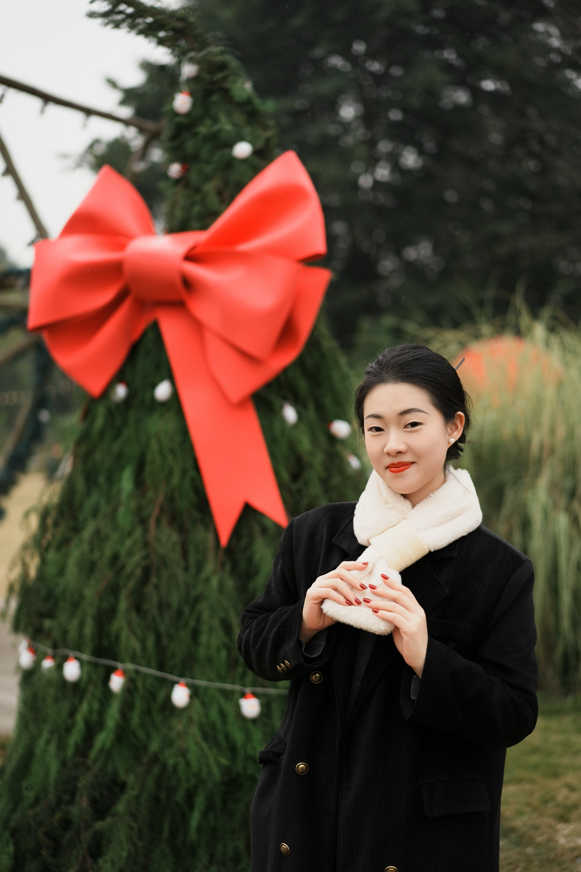 黑色长款大衣质感拉满🖤,毛绒围巾柔化冷调,圣诞氛围里慵懒精致🎄适配轻户外松弛感~