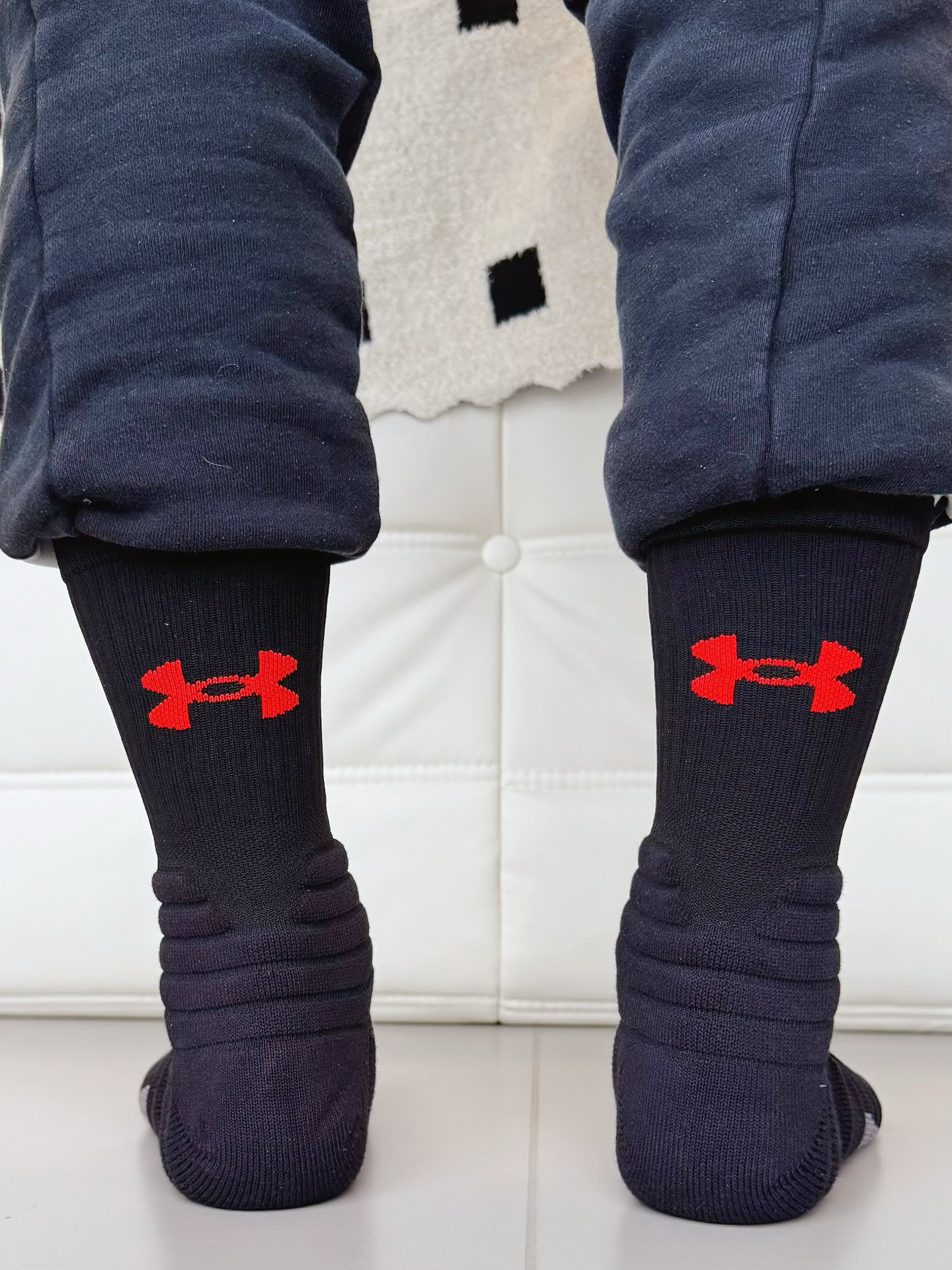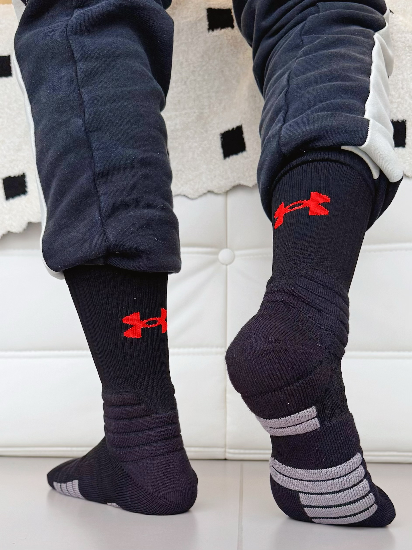 安德玛这双运动袜直接治好了我运动崴脚的阴影!脚踝那圈加压织纹巨贴脚,跑跳时能明显感觉到在托着脚踝,一点不晃。脚背的压纹也刚好撑住足弓,久站走路都不酸。 脚尖的毛圈软乎乎的,防滑还耐磨,打脚跑步都不闷汗。而且穿它居然一点不挤脚,洗了好几次,脚踝的支撑织纹和整体弹性也都没松,还是跟新的一样贴脚。 黑红配色搭球鞋超酷,logo露出来也很有质感,日常穿也不违和,运动党闭眼冲就完事儿!@安德玛官方 #...