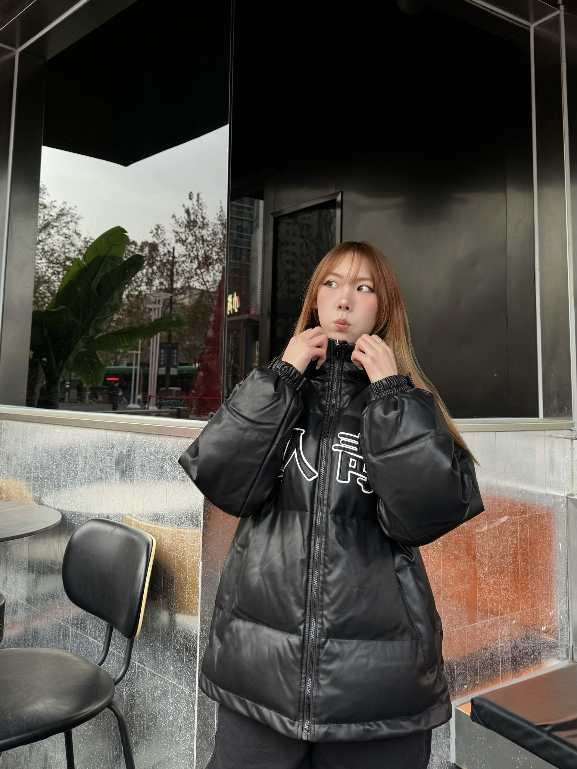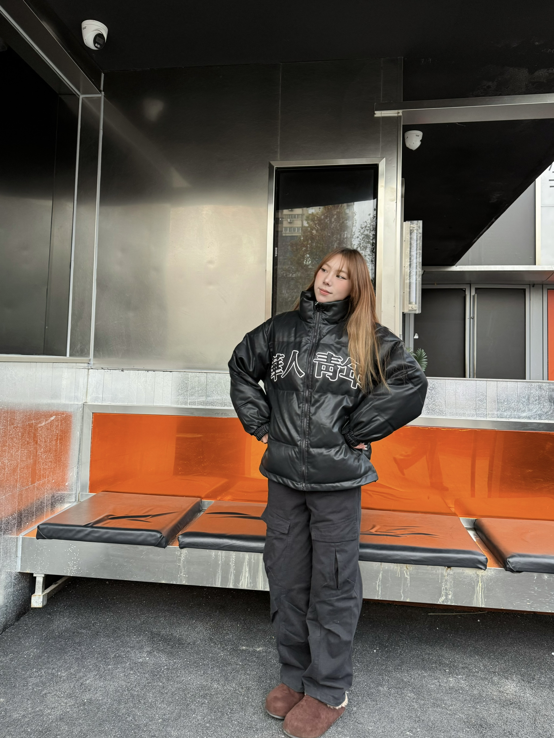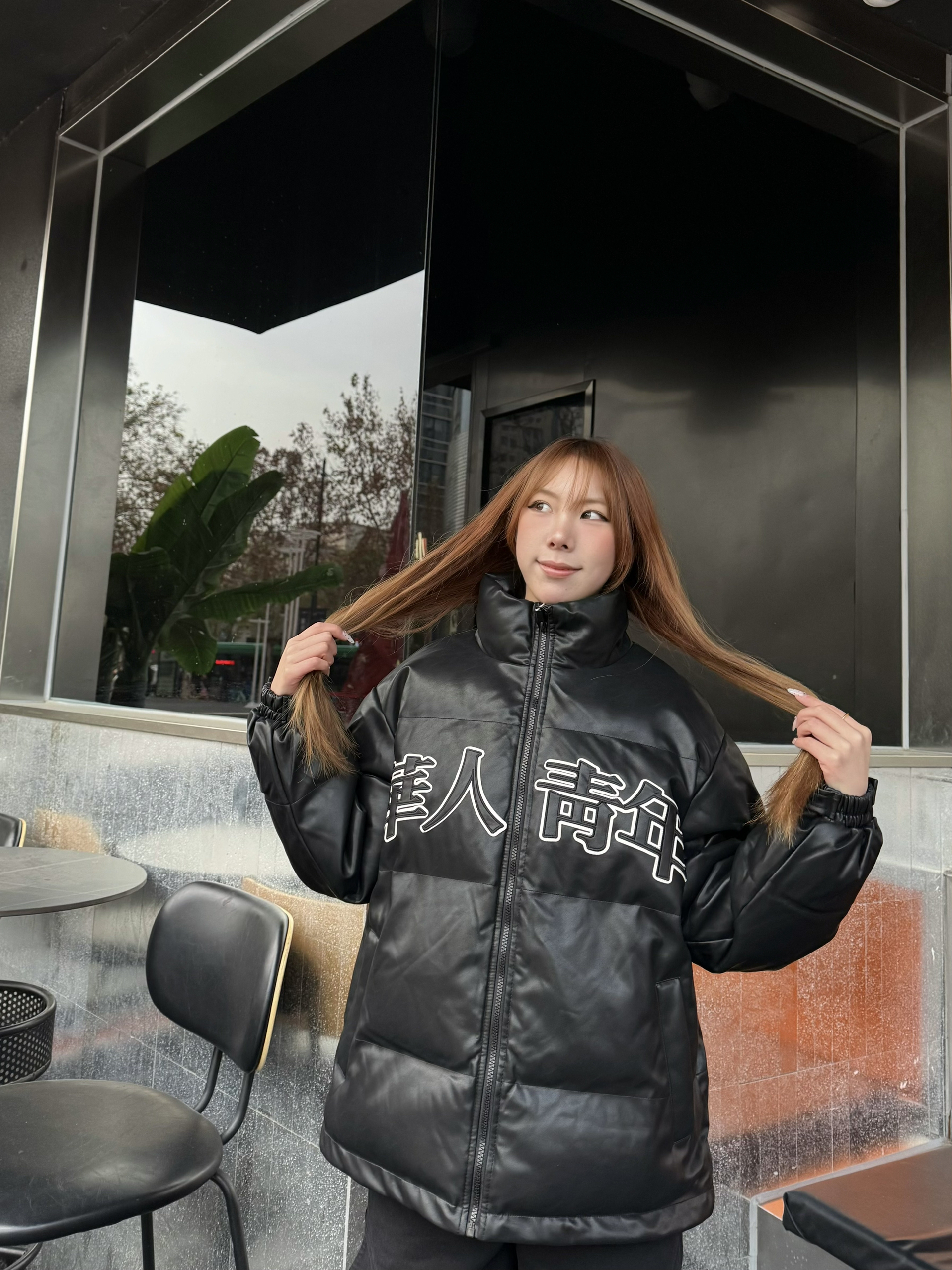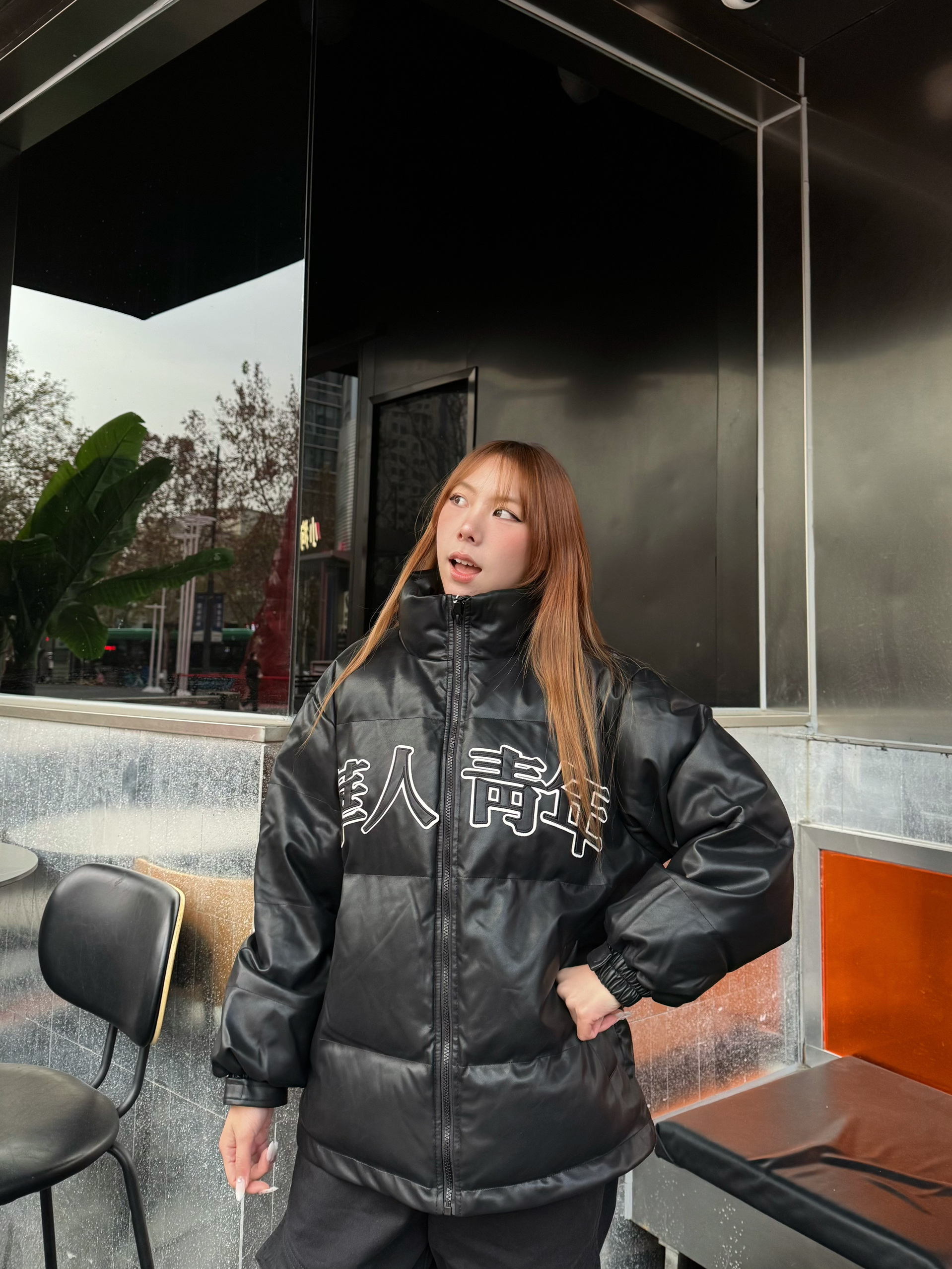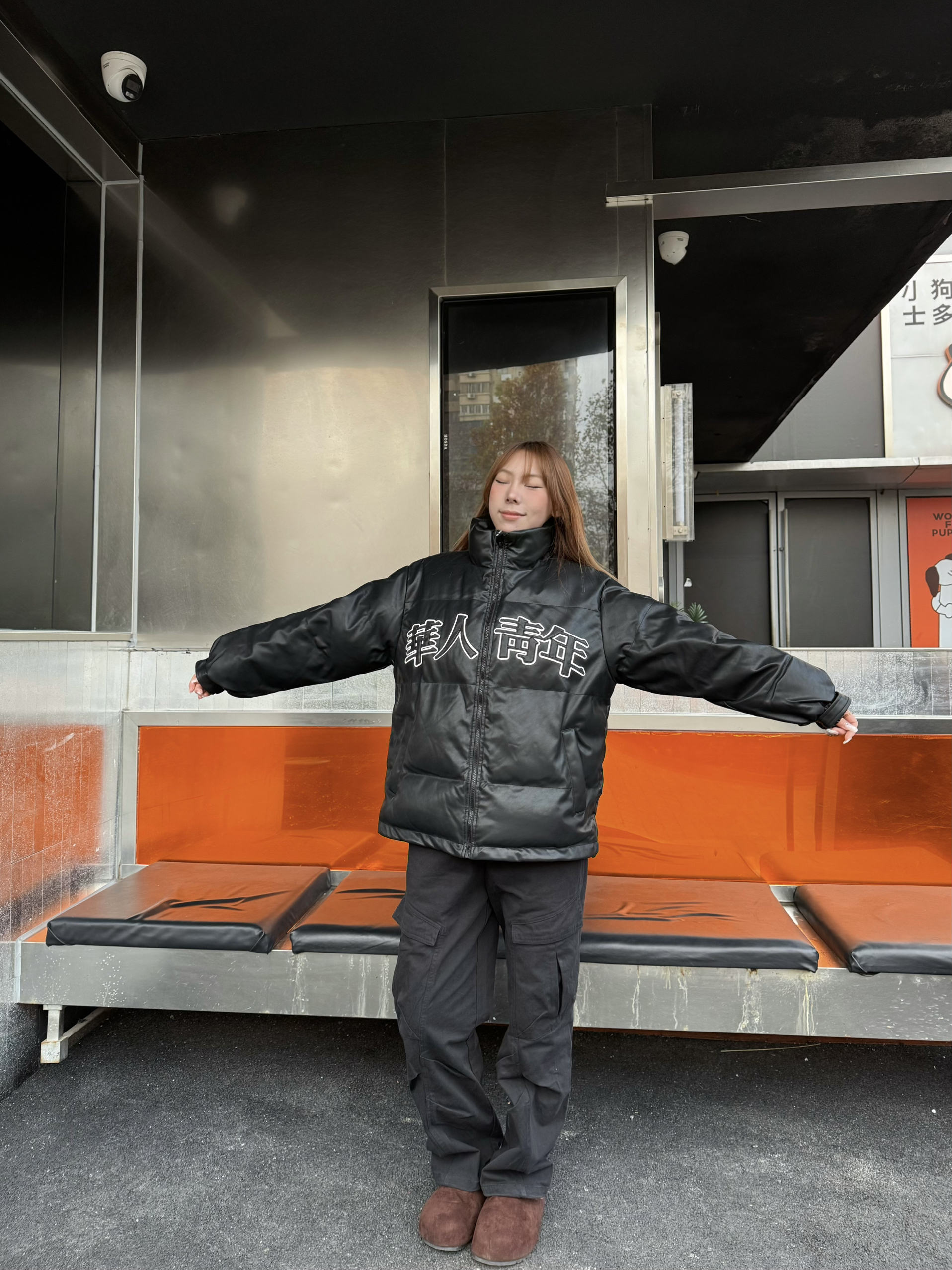 家人们这款黑色棉服真的挖到宝了! 版型是宽松的,非常显瘦,我16穿s码刚刚好! 面料摸起来滑滑的还防风,填充的棉很均匀,上身暖乎乎的但不会显胖,胸前的小图案还很有设计感,搭牛仔裤、运动裤都超合适!💕