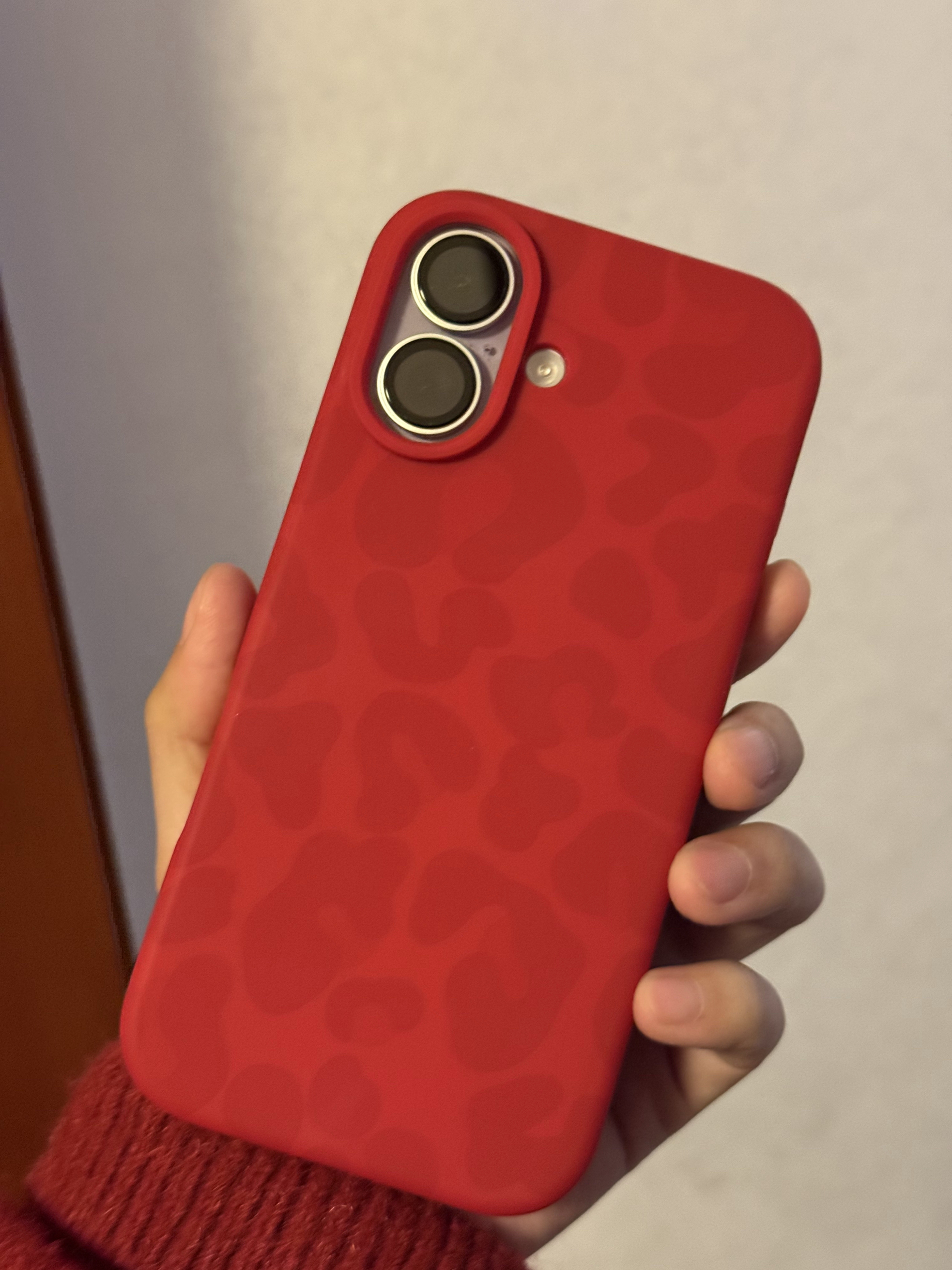 已经提前准备好迎接新的一年2026年啦 用大红色的苹果17跨年的快乐谁懂👏 牛奶纹路好好看😻手感超好 不会粘毛这一点我超爱😊 材质是液态硅胶,上手老舒服了😌