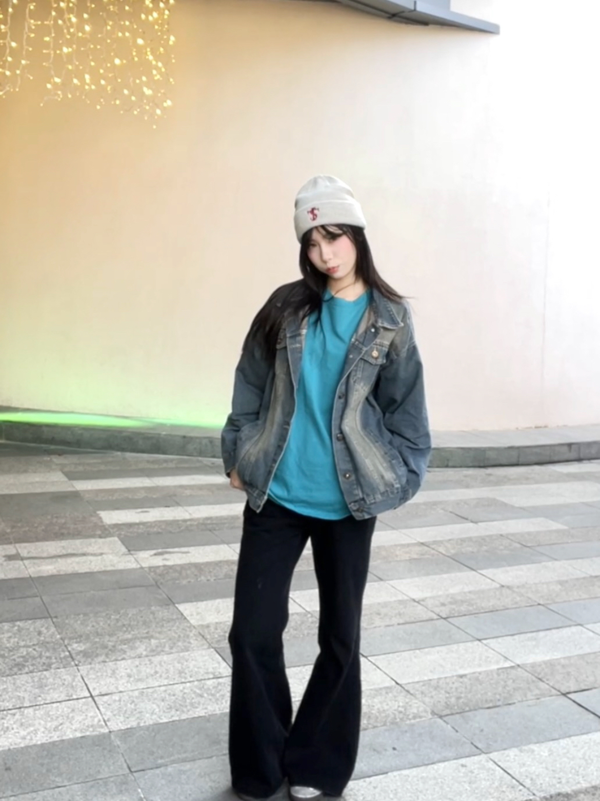 帽檐上的红色小刺绣超点睛,不会让纯色帽子显得单调,软软糯糯的针织材质贴头戴也舒服~ 💡穿搭思路就是用这种简约款冷帽搭休闲风穿搭,我配了做旧牛仔外套+亮蓝色内搭,冷帽中和了内搭的跳脱感,整体看着更协调~ 日常出门逛街、压马路,或者和朋友约着喝下午茶都能戴,懒得打理头发的时候扣上它,随手一搭就有休闲感,素颜出门也不违和~