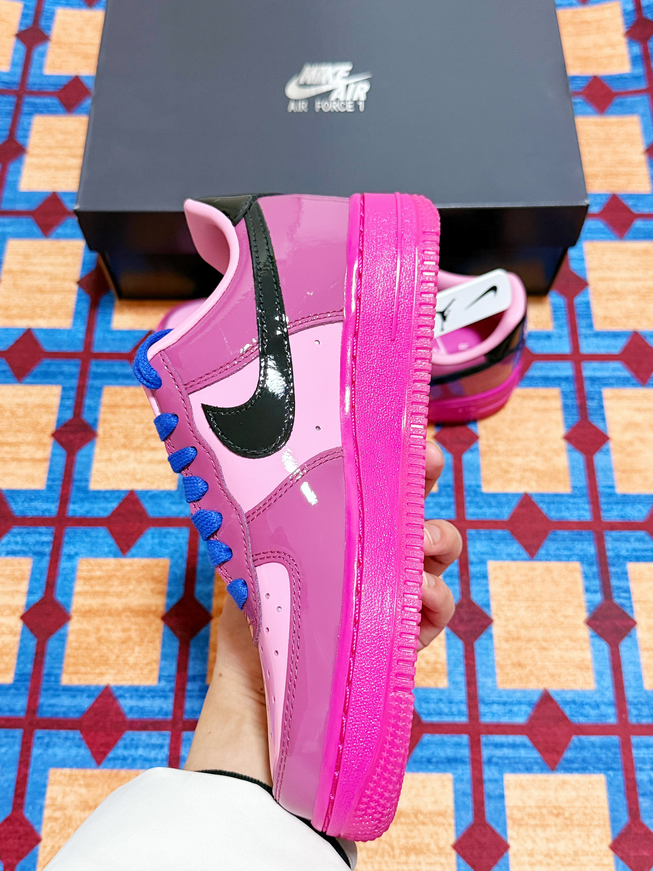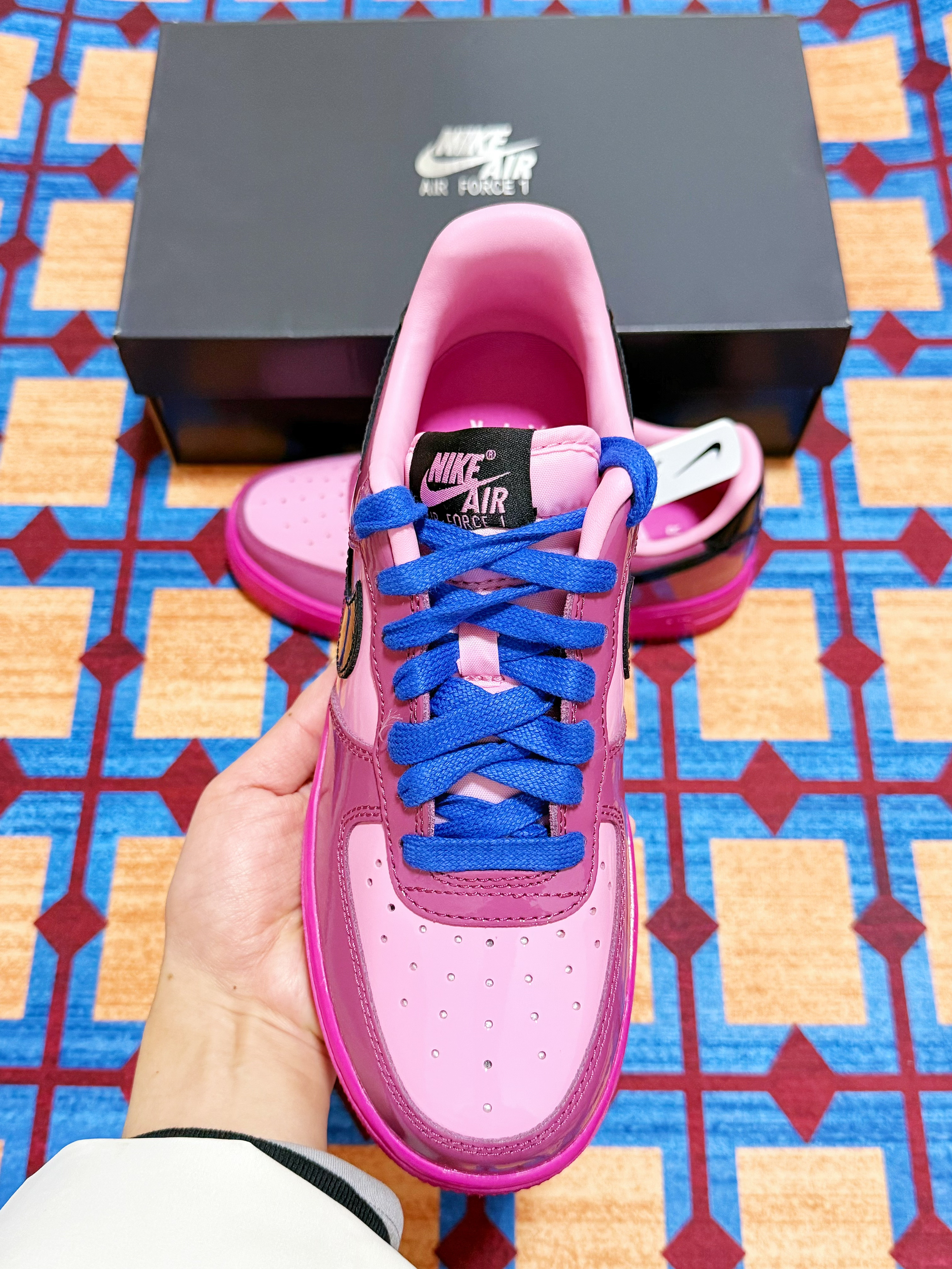哈喽大家 今年入手的第一双空军一号 就是这双漆皮亮面设计的AF1空军一号啦~ 整体的配色还是比较适合女孩子的 搭配属性的话应该是也是蛮不错的 牛仔裤工装裤都可以轻松驾驭