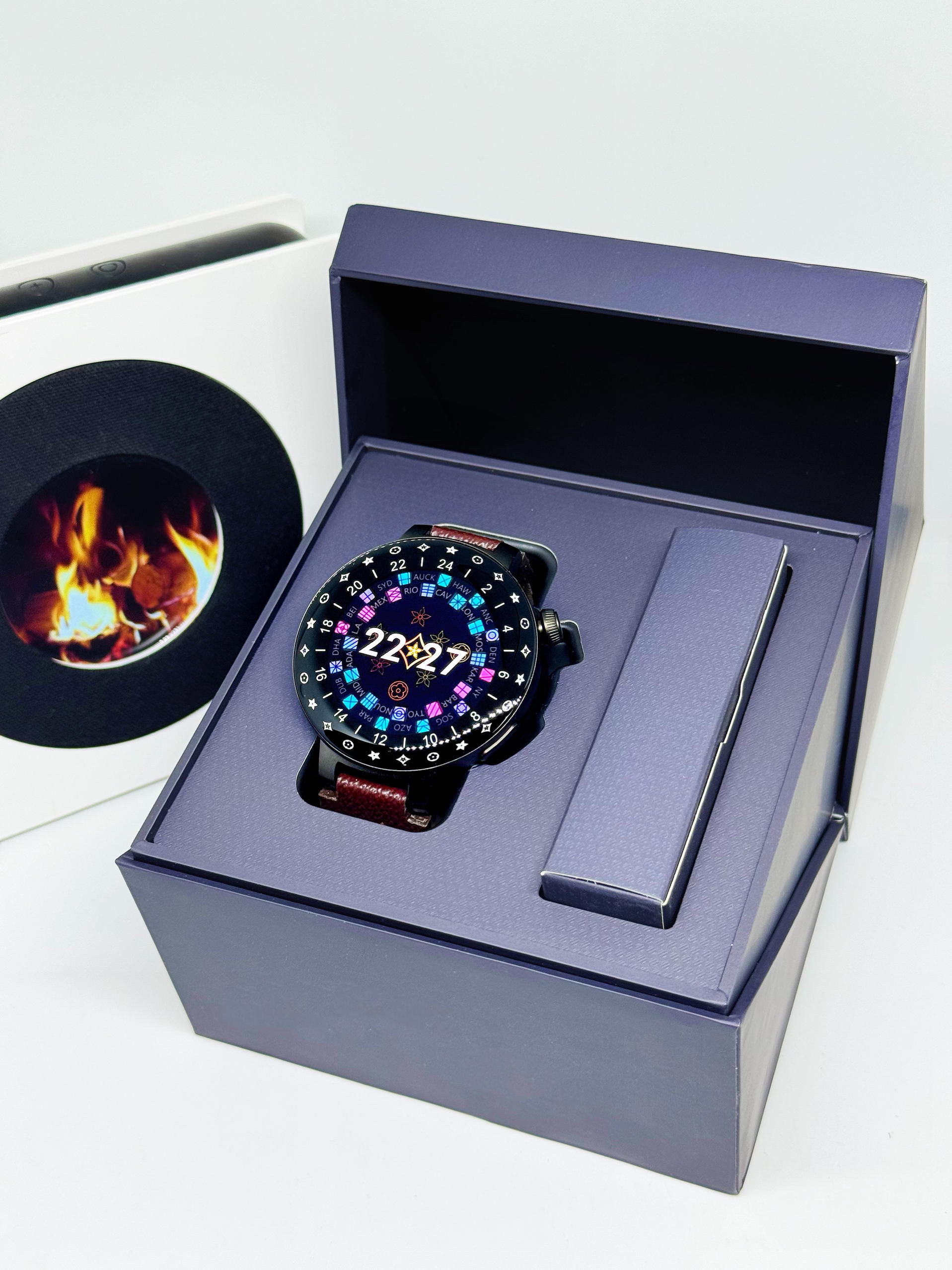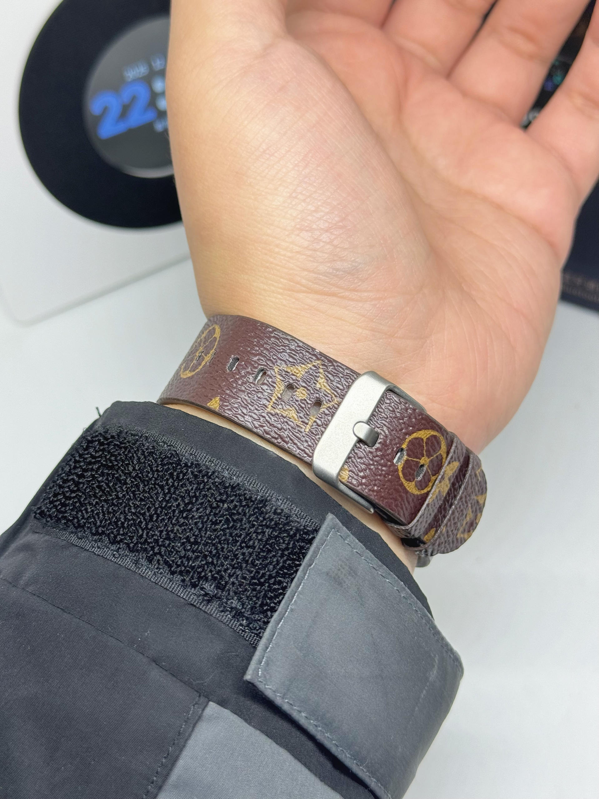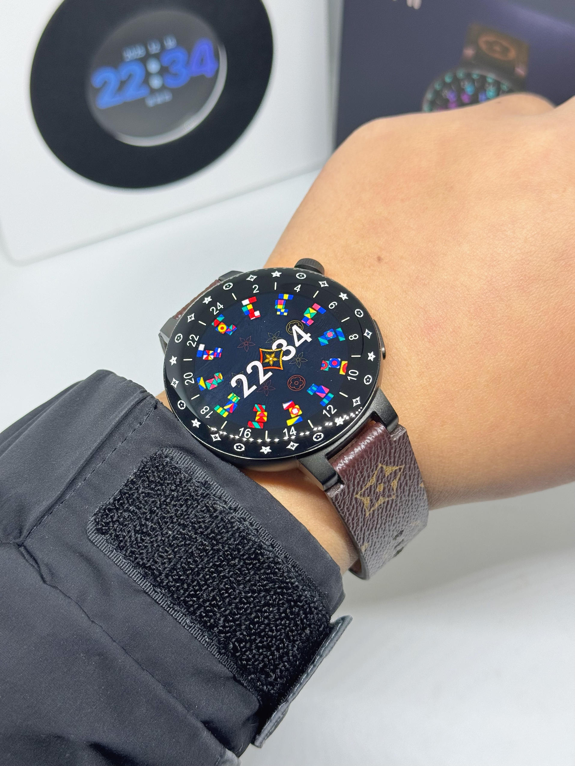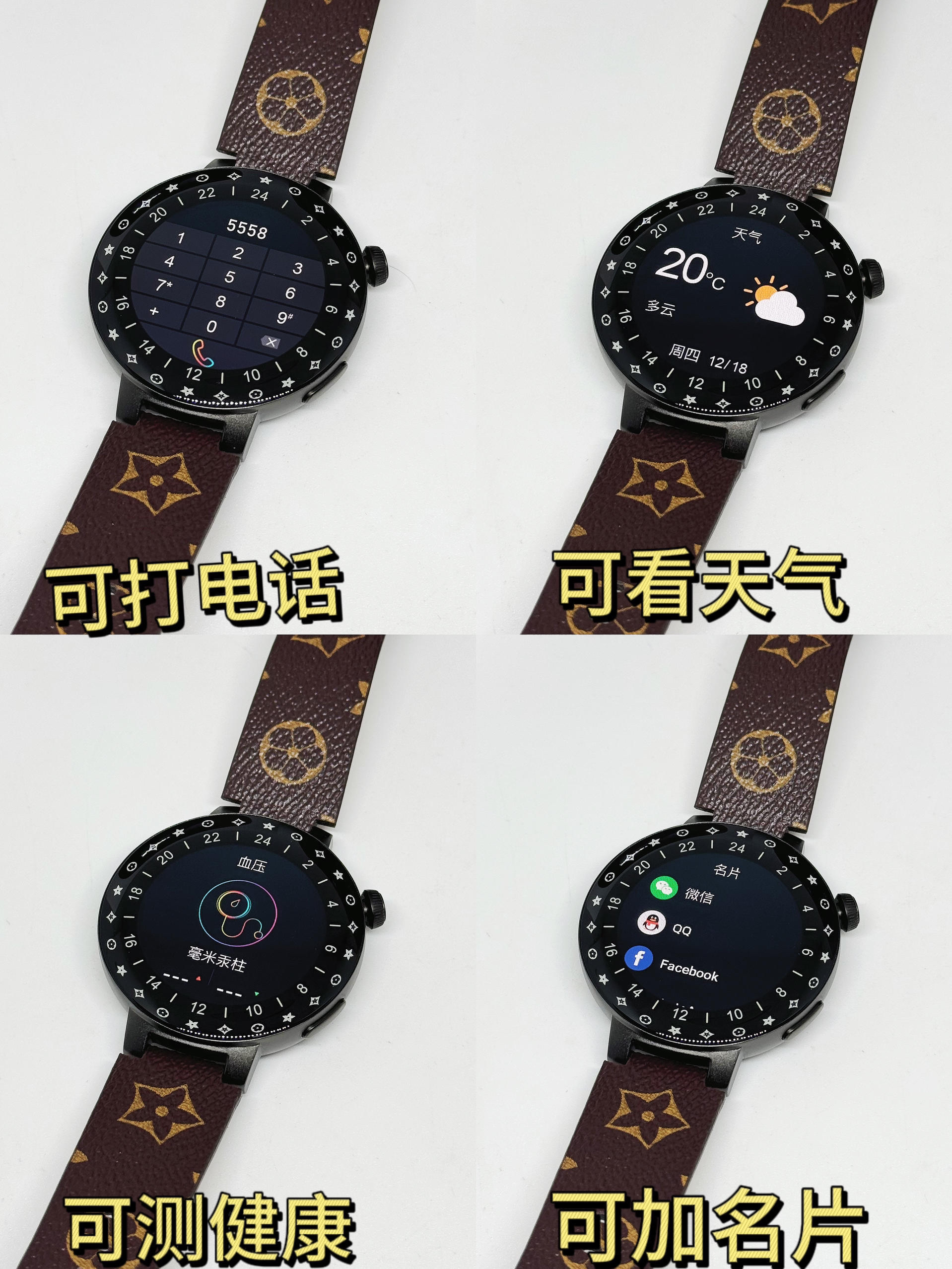 这款库觅智能手表和其他的手表还是有不一样的地方,它的表圈在收到信息是会亮色的,这个设计还是很炫酷哦! 而且手表还是可磁吸充电的,与手机连接后也可以拨打电话,健康检测等功能也是有的。 当然,在佩戴上也是很舒适也很百搭衣服的。