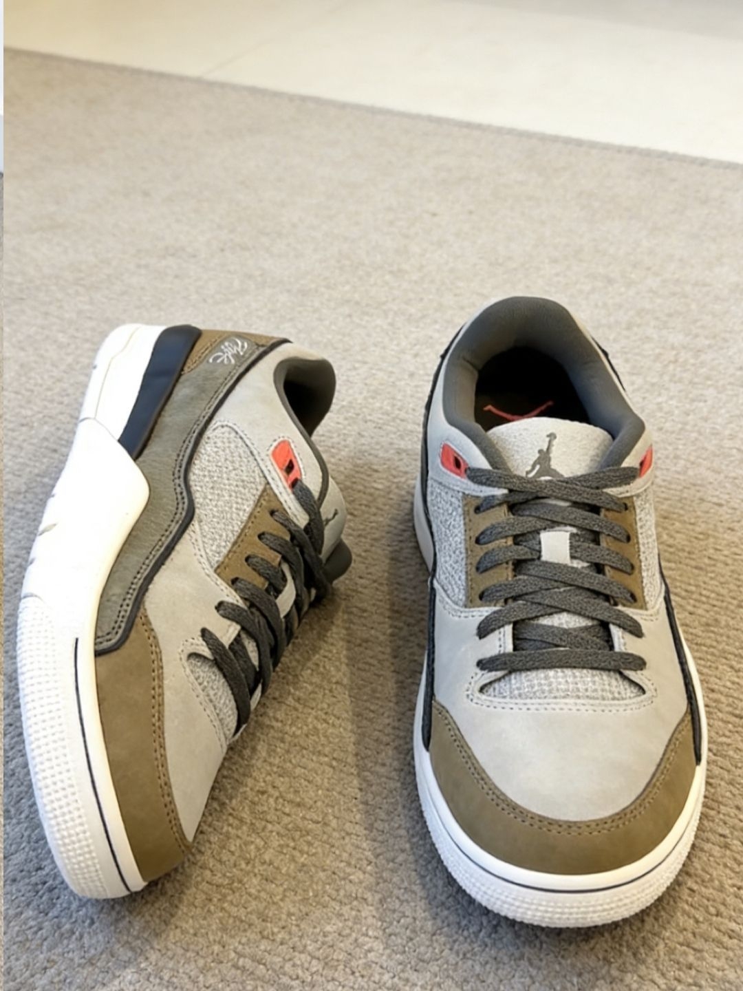 这双浅咖色Jordan板鞋,颜色是偏暖的浅棕,很柔和,配卡其色、深灰、黑色裤子都很和谐,日常搭配省心 穿着很轻,走久了脚不累,适合通勤和日常。皮质有质感,越穿越有味道。 缺点也很明显:鞋面有点窄,脚宽的人会挤脚,建议试穿。颜色不耐脏,浅色皮面容易显脏,要常打理。鞋带有点长,容易散 整体是双好看又好穿的鞋,适合喜欢低调风格的人。如果你脚不宽、能接受浅色打理,值得入手