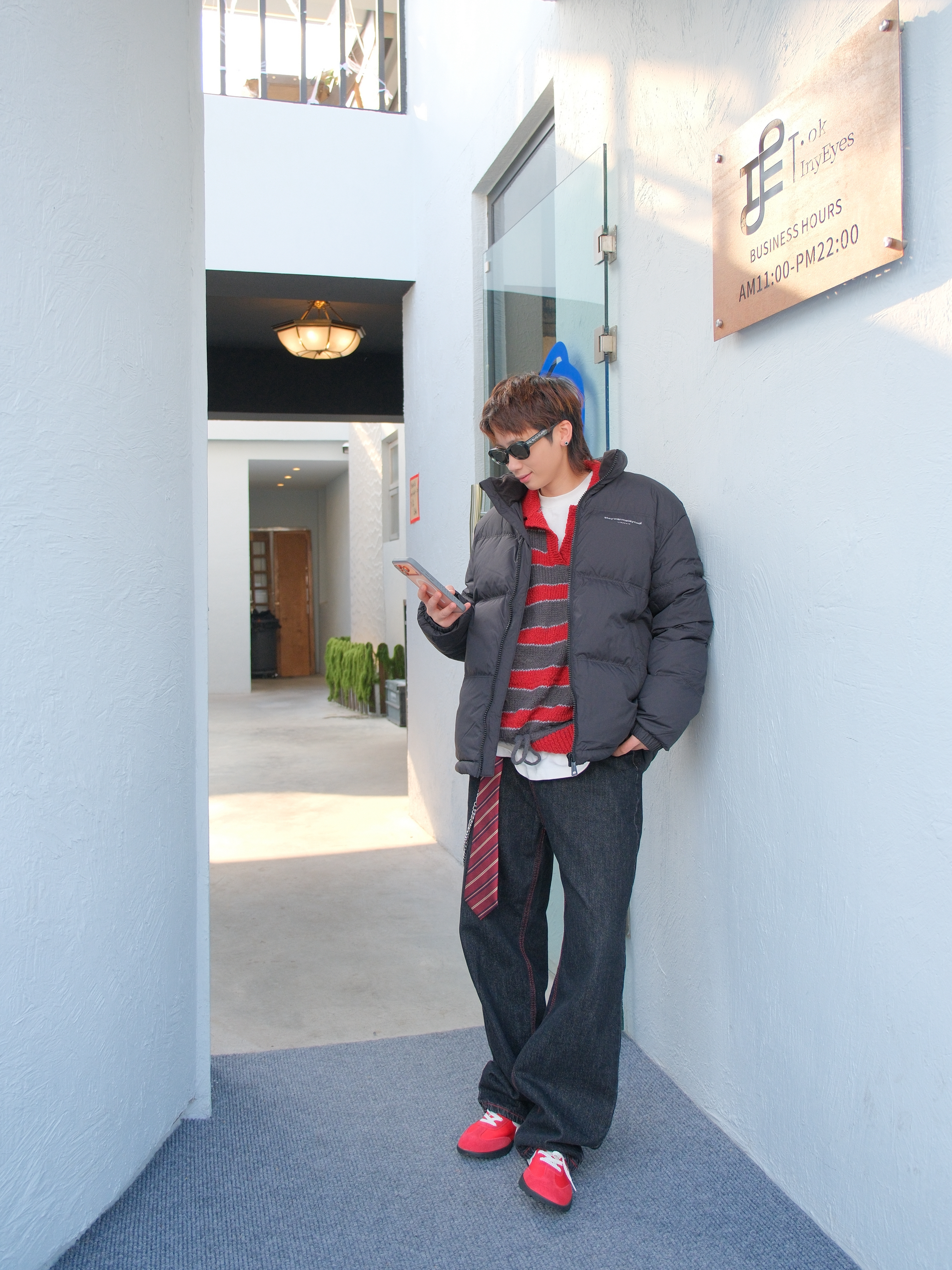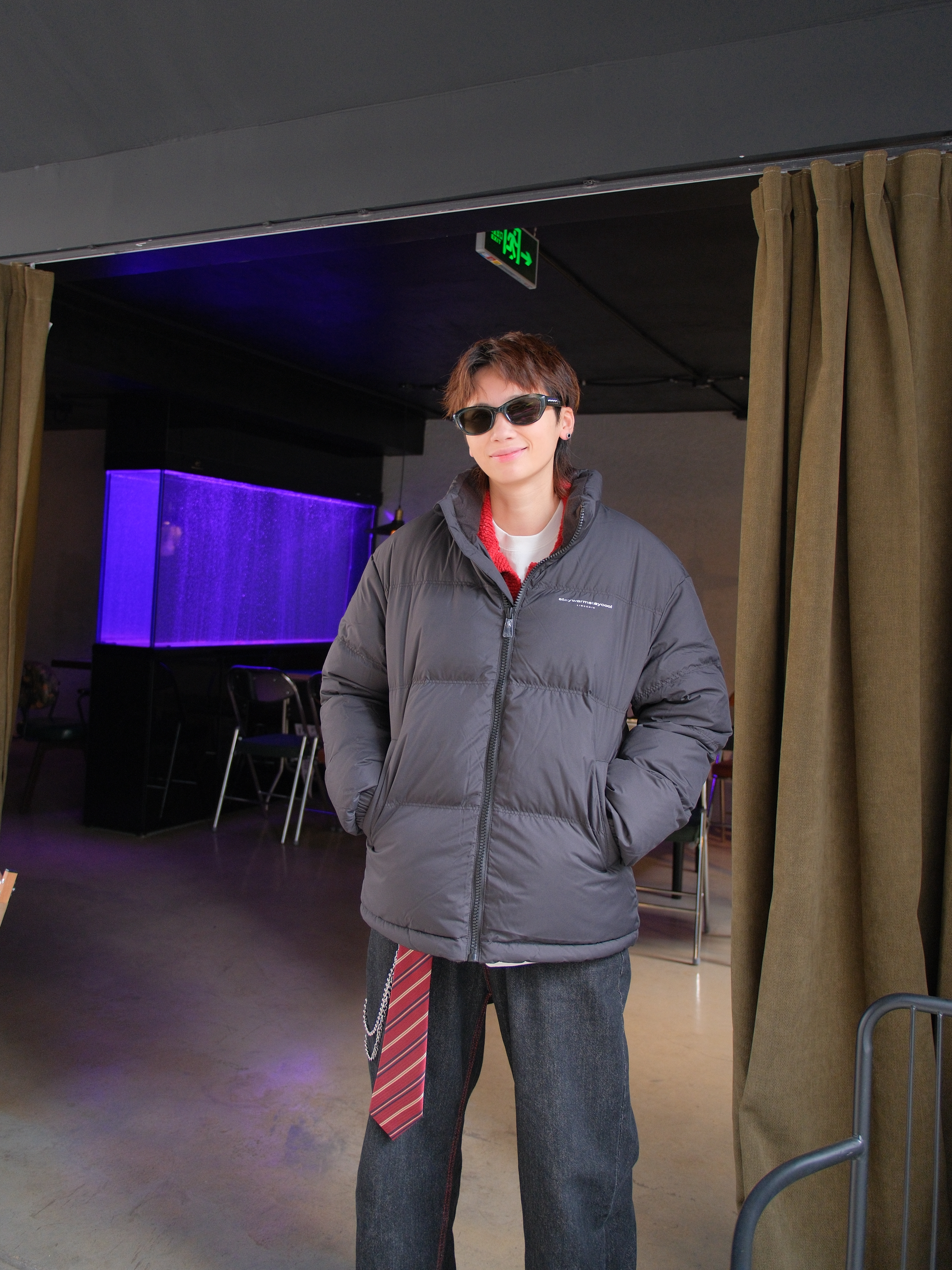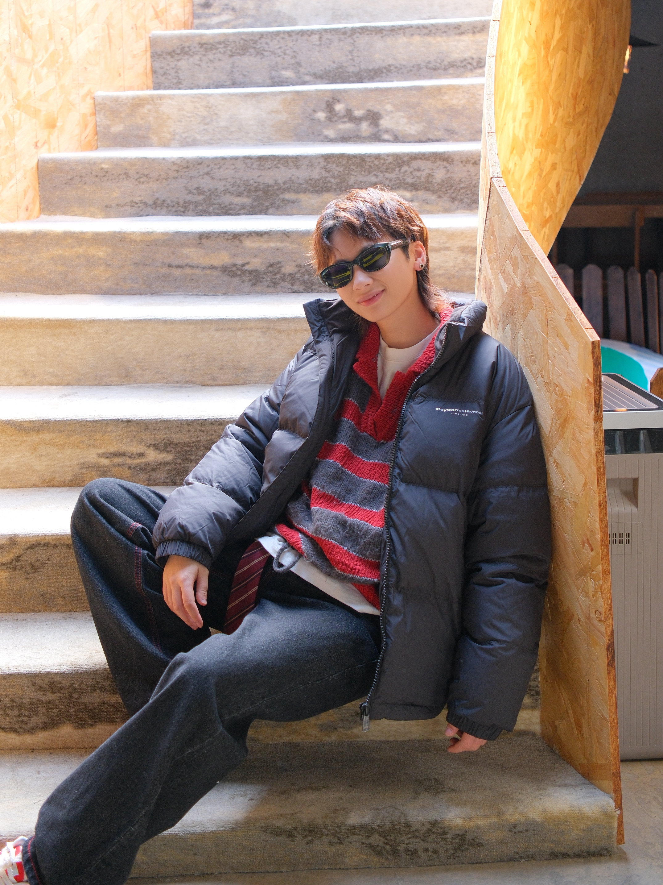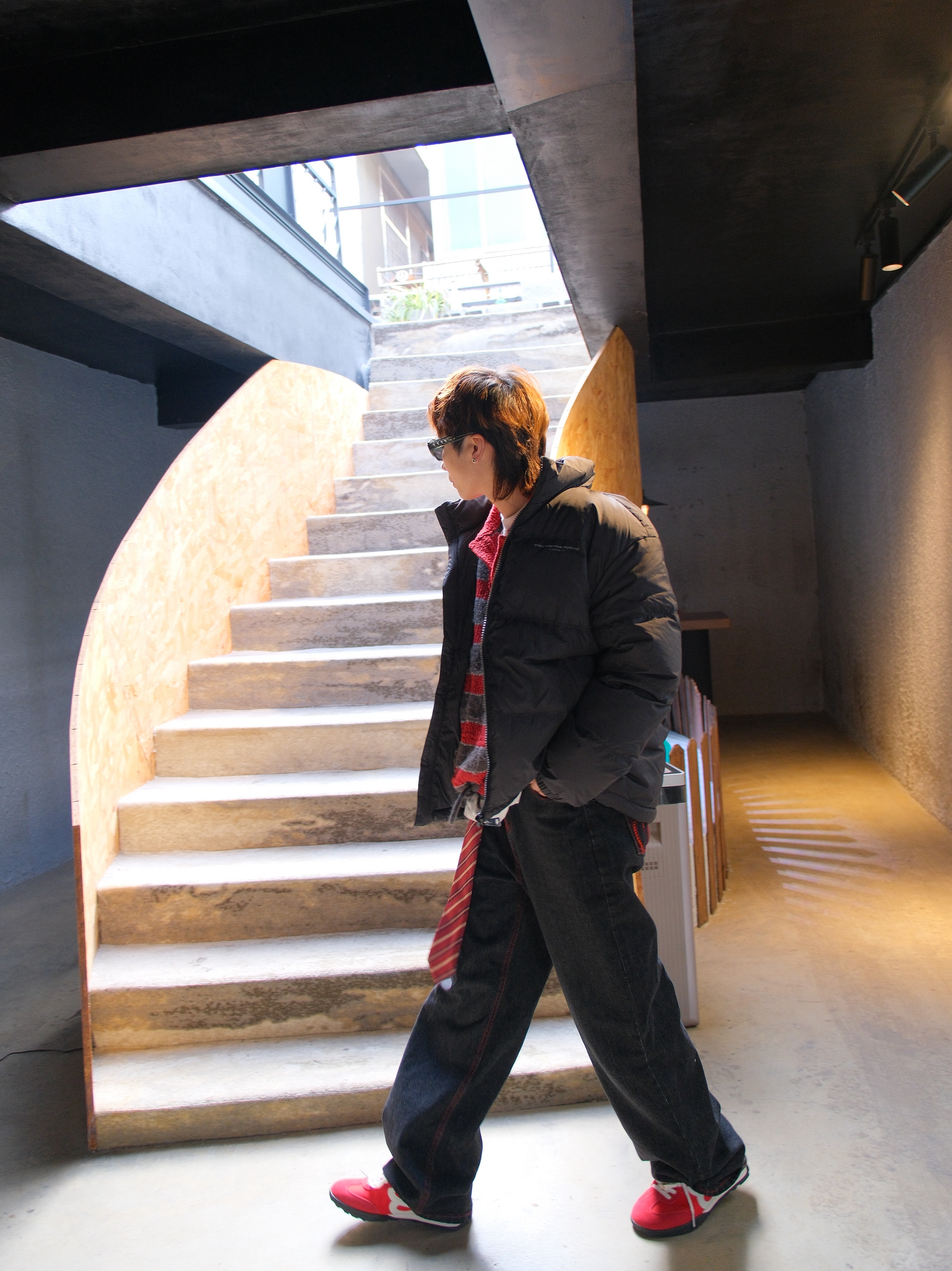 羽绒服是对降温最起码的尊重 妈妈再也不用盯着我穿秋裤了 上身选件黑色羽绒服,经典不出错 短款的面包服版型也不会显得臃肿 内搭红色条纹毛衣 撞色看起来不会太闷 下装选黑色直筒牛仔裤 裤线的红色刚好和内搭呼应下 配上红色薄底鞋,简单利落 尺码参考:163cm/46kg 上身M码