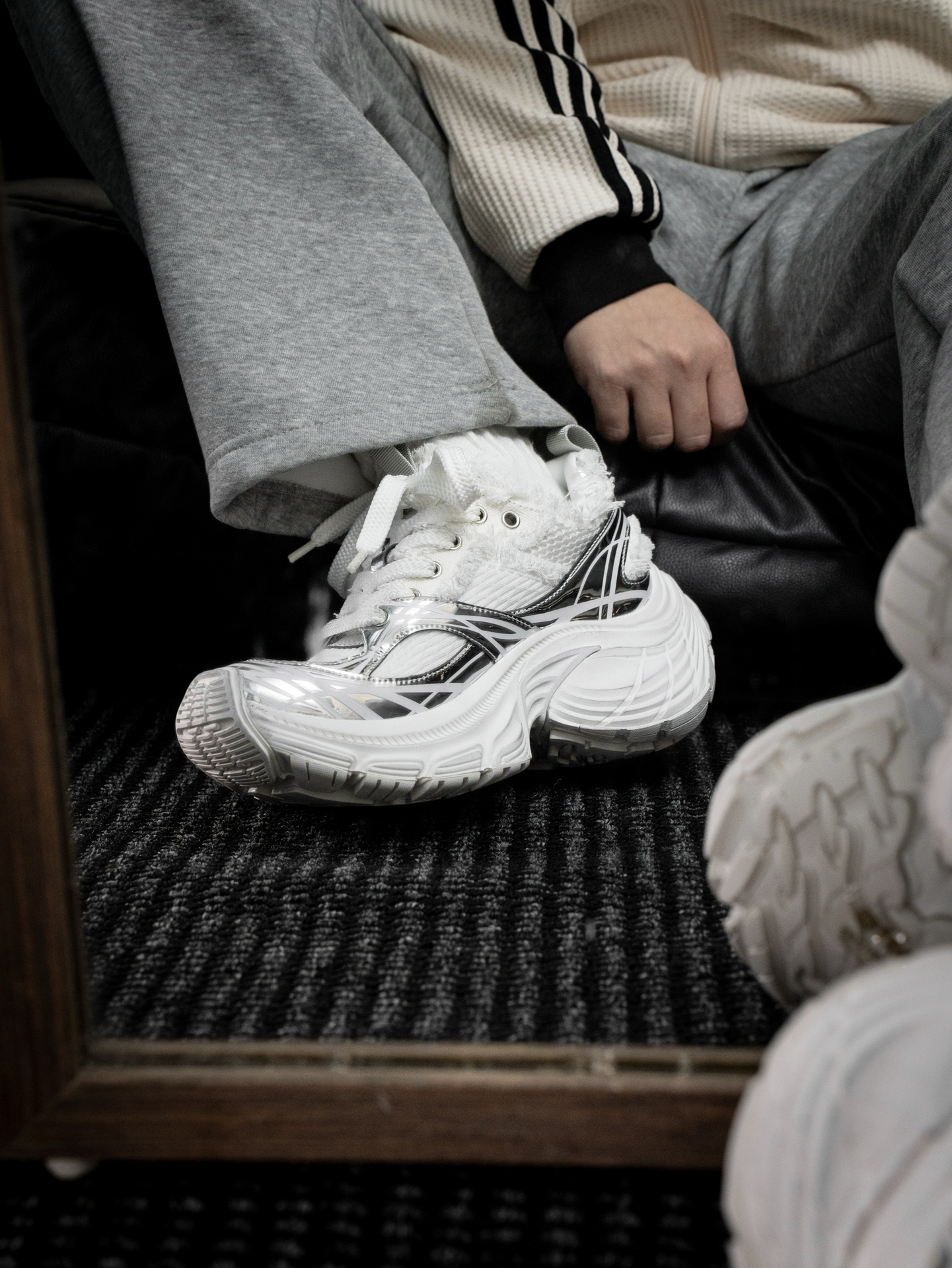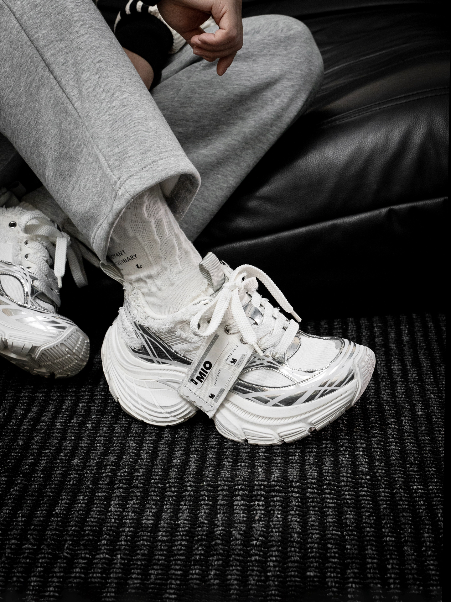 ~ 给大家分享一双 #MIO 的厚底增高老爹鞋👟 这双银白色的配色跟我浅色系的毛衣完美呼应 厚底增高大概有个8.5公分左右 穿上四舍五入报个180一点都不过分 搭配卫裤牛仔裤👖都还蛮好看的 包裹感适中 搭配阔腿会更加潮流一些 都说穿搭越浅越显贵 我觉得说的还蛮对的 尺码小建议: 我个人觉得会比正常的运动鞋稍微偏大一些‼️ #竟然被鞋抢了c位 #时髦蜈蚣精 #分享神仙運動板鞋 #2025年...