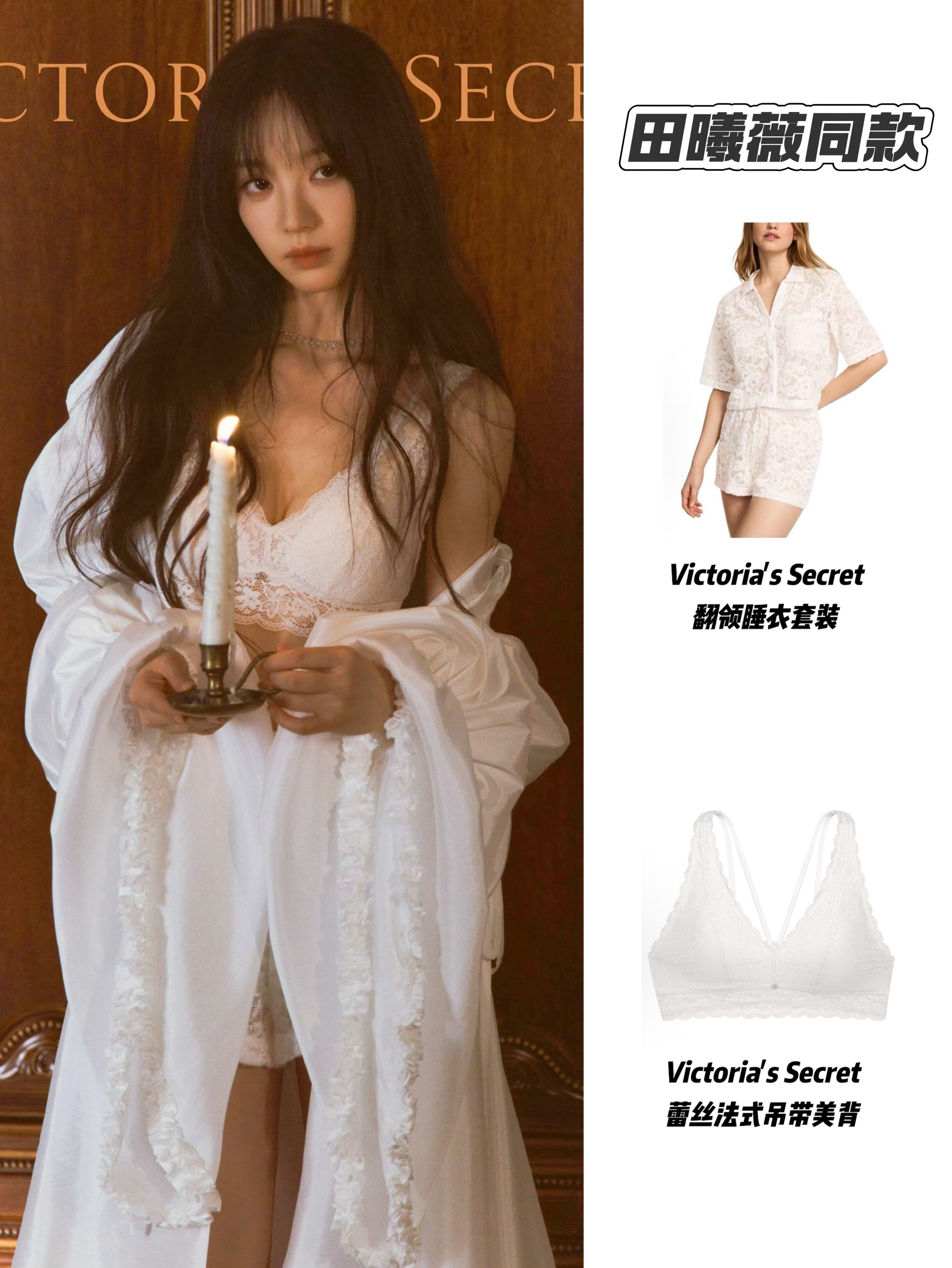 小田这套内搭把柔美与精致感拉满!Victoria's Secret蕾丝法式吊带美背勾勒出优雅线条,刺绣细节尽显细腻;搭配睡衣套装,把内搭的浪漫氛围诠释得恰到好处~