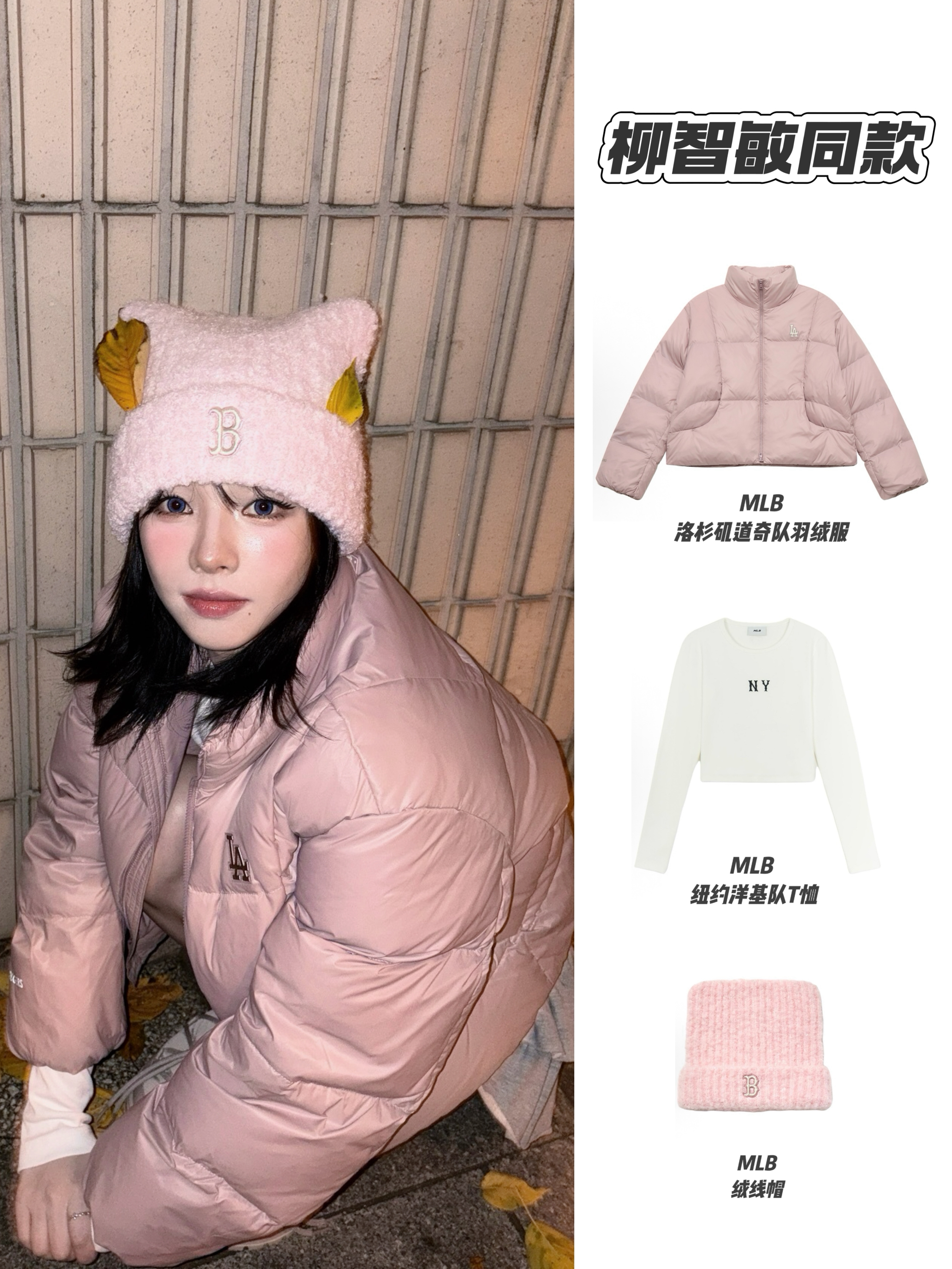 柳智敏这套穿搭把“粉红猫猫”的甜酷感拉满!MLB粉色羽绒服蓬松温暖,搭配同系列绒线帽(猫耳设计超可爱),瞬间戳中少女心;内搭简约白T与浅灰下装平衡甜腻,整体以柔和粉调为主,既保留了冬日保暖性,又靠“粉红猫猫”元素注入俏皮活力,甜酷又治愈~