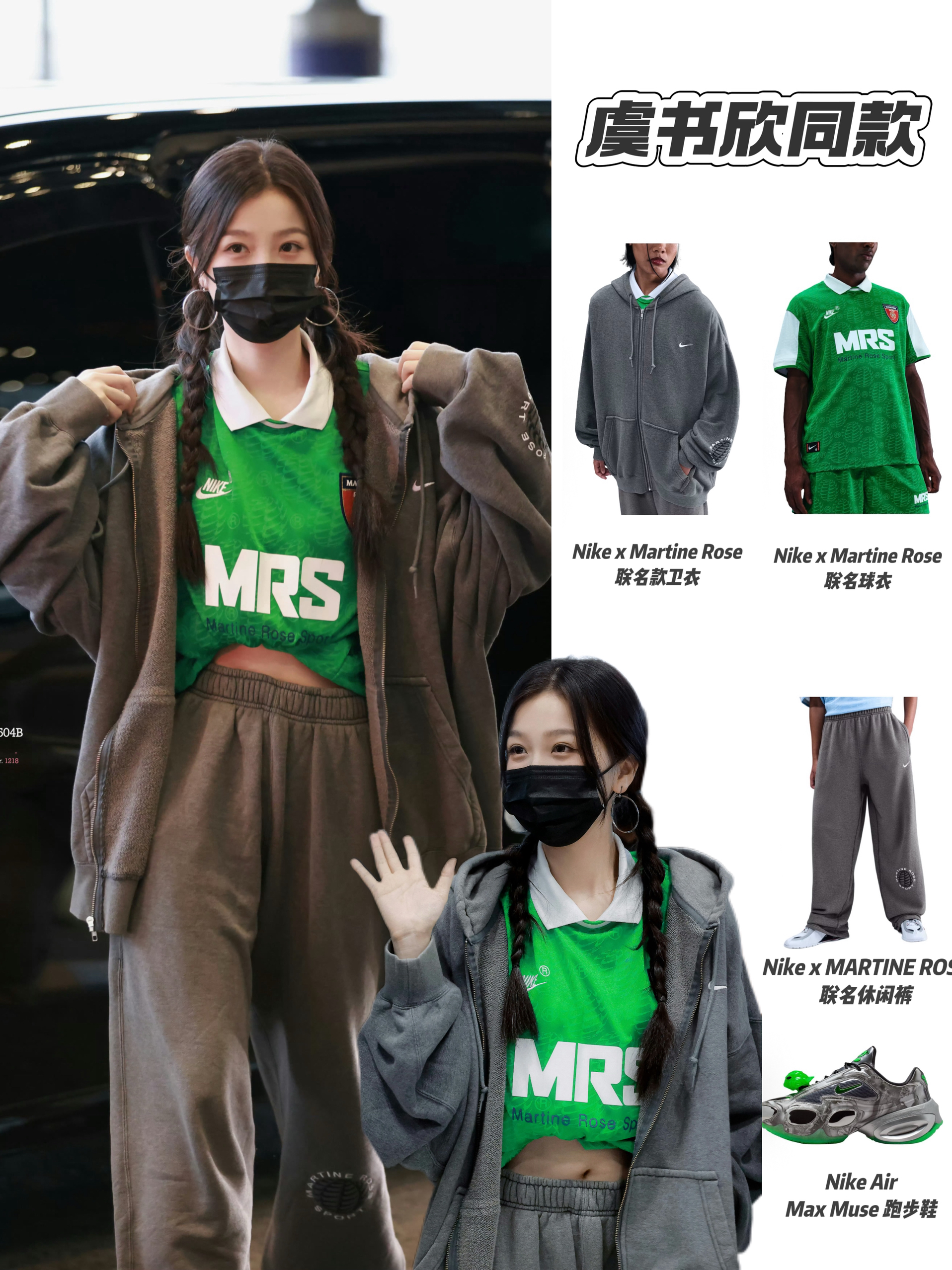 虞书欣这套穿搭里的休闲裤太加分了!宽松版型透着慵懒随性,与同系列连帽卫衣、短款球衣搭配,层次感十足;垂坠感和阔腿设计还能修饰腿型,再配上双马尾,把运动风的舒适与甜妹的活泼融合得恰到好处,整套look休闲又时髦~
