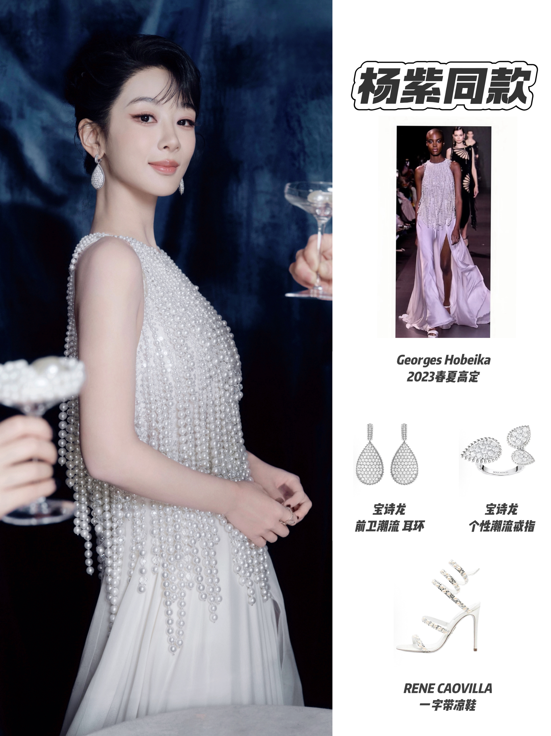杨紫庆生这套珍珠高定太惊艳了!Georges Hobeika 2023春夏高定裙身缀满垂坠珍珠,如月光瀑布,优雅又梦幻;搭配宝诗龙珠宝与RENE CAOVILLA水钻凉鞋,每一处细节都透着高级感,将珍珠的温润与高定的奢华完美融合~
