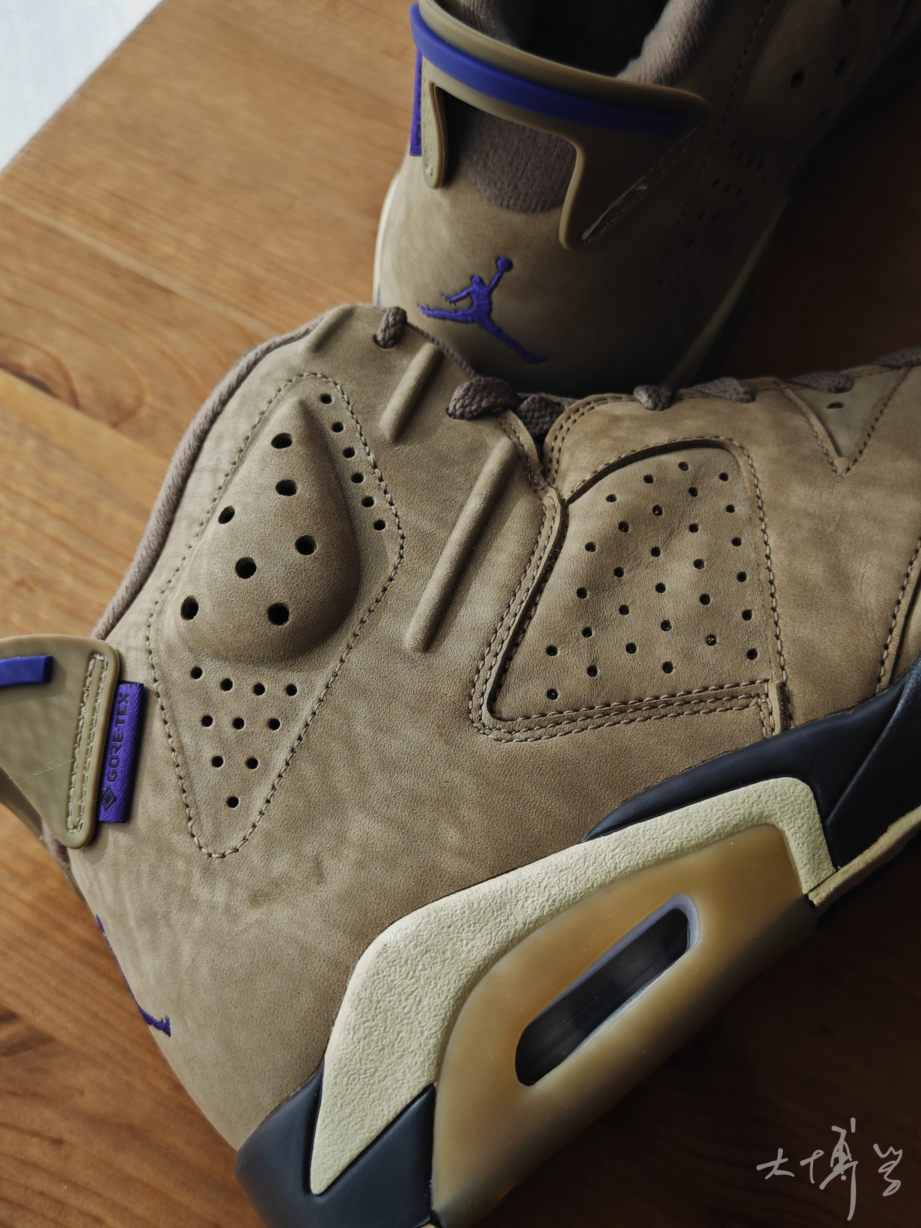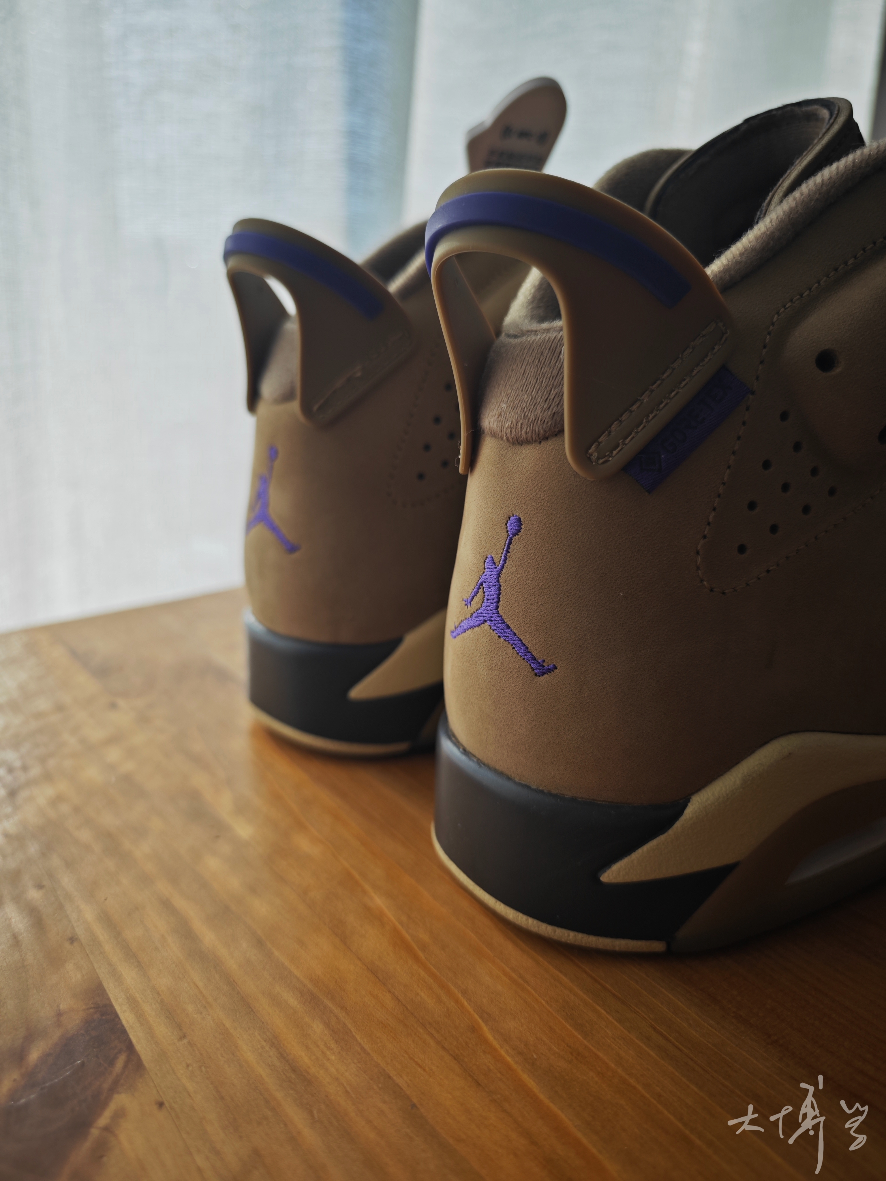 如果问我坏天气穿哪双? 我想到了这款AJ 6 土黄色的鞋面看起来就很耐脏 一点紫色点缀,有点变形金刚狂派的感觉 gtx内衬加持,基础防水没问题 女款尺码建议和平时选男码一样