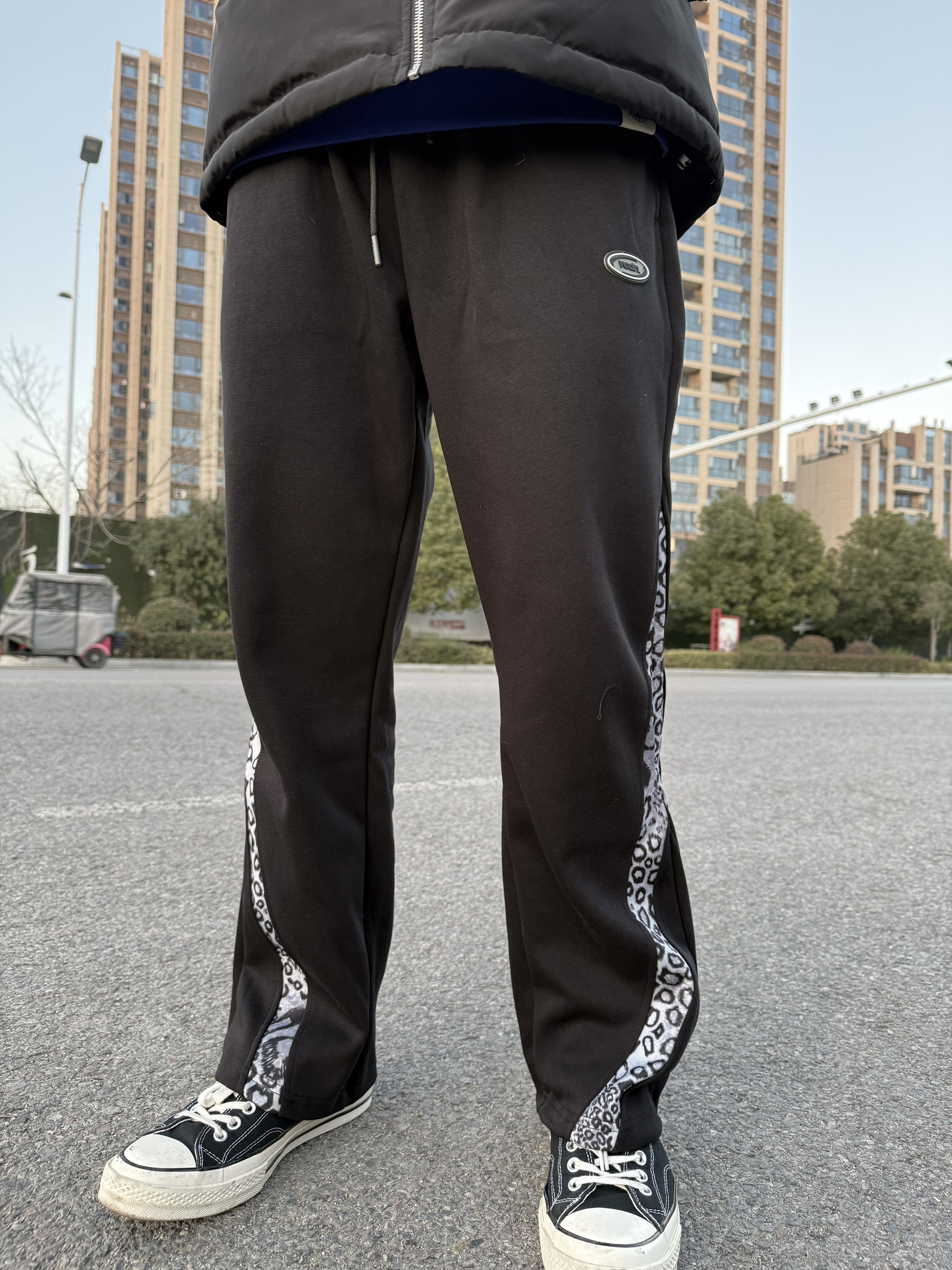 VEIDOORN猎影系列男士运动长裤 黑色针织面料,宽松直筒版型,穿着舒适透气 适合跑步、训练、篮球等运动场 黑色阔腿裤细节亮眼,侧边豹纹条纹打破全黑单调感 垂坠面料走路带风,蹲坐活动都自在 腰部抽绳设计,松紧可调,秋季日常或运动都很OK! 性价比高,功能与潮流兼具,运动休闲两不误心。