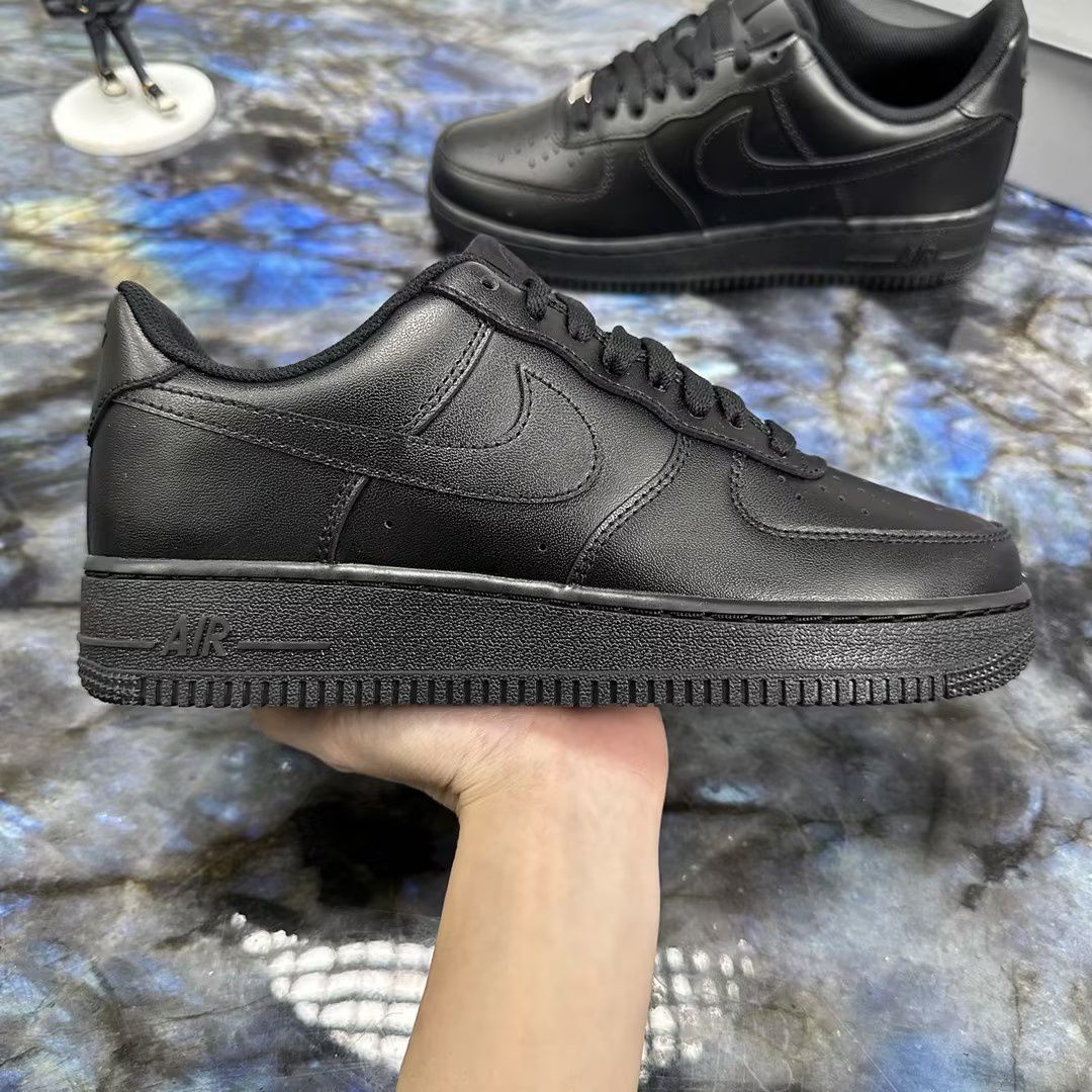 谁的鞋柜里还没双全黑空军一号啊!这双纯黑AF1真的是闭眼入的款,全黑皮质鞋面质感拉满,经典的空军版型怎么搭都不违和,不管是牛仔裤、运动裤还是休闲裤,套上就能出门,懒人穿搭直接焊死在脚上👟 脚感也不用多说,Air气垫踩开之后软乎乎的,日常通勤、压马路都贼舒服,而且耐脏属性直接拉满,随便造都不心疼,真的是穿一次就会爱上的百搭神鞋!