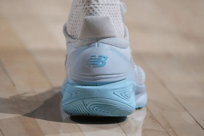 圣诞大战掘金加时险胜森林狼,穆雷这双New Balance Two Wxy v5 PE的冰蓝配色直接戳中审美,赛场上的清冷质感和他的发挥适配度拉满! 全场打满42分钟,32投12中砍35分2篮板10助攻1盖帽,尤其是18记三分投进9个,加时赛里的传球和投篮直接盘活全队,硬是把胜利攥在了手里。这双冰蓝战靴跟着他突破分球、干拔三分,每一次移动都透着丝滑,颜值和实战性能双在线。 浅灰搭配冰蓝大底...