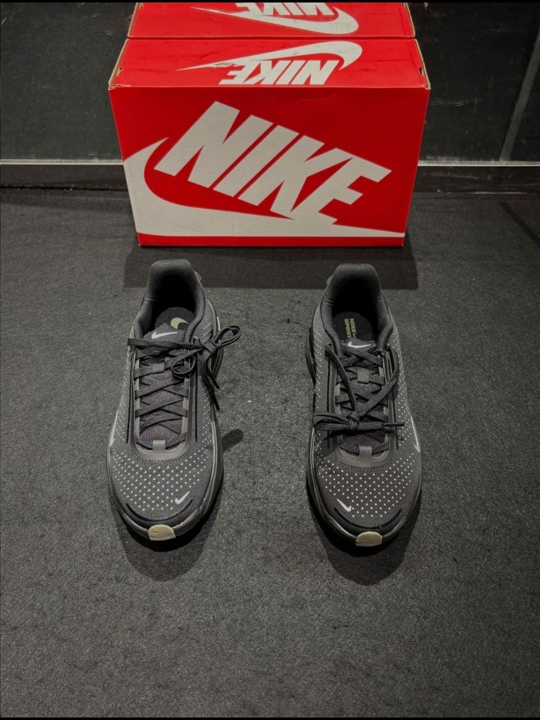 这双Nike 上脚软弹感很惊喜,后跟Zoom气垫踩下去能明显感觉到回弹,久走不累。网眼鞋面透气不闷脚,包裹贴合但不挤脚,低帮鞋型配裤子显利落。橡胶底抓地稳,日常通勤、轻运动都适配,黑灰配色也很百搭,脚感和颜值都在线~