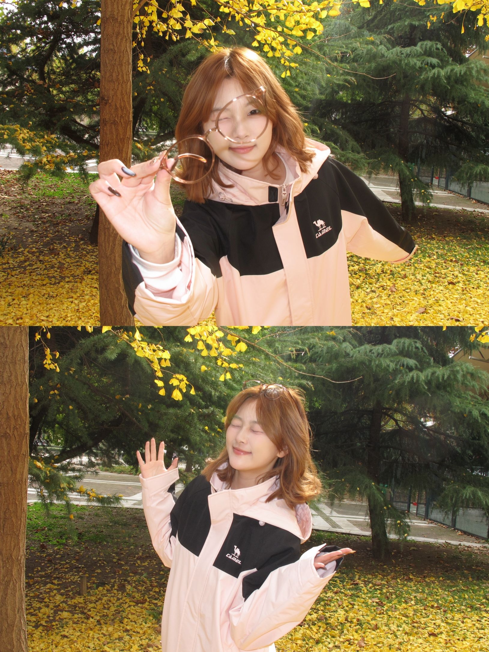 今天是被#骆驼CAMEL 这波粉黑拿捏的一天! 粉黑配色尊嘟戳中少女心了~💕 软乎乎的淡粉+酷黑拼接又甜又飒 夹克面料防风还抗造❄️ 版型是那种宽松的~套厚毛衣也不臃肿 保暖和颜值双在线的夹克我真的爱了🥰 冬天的第一件夹克就选它💕💕