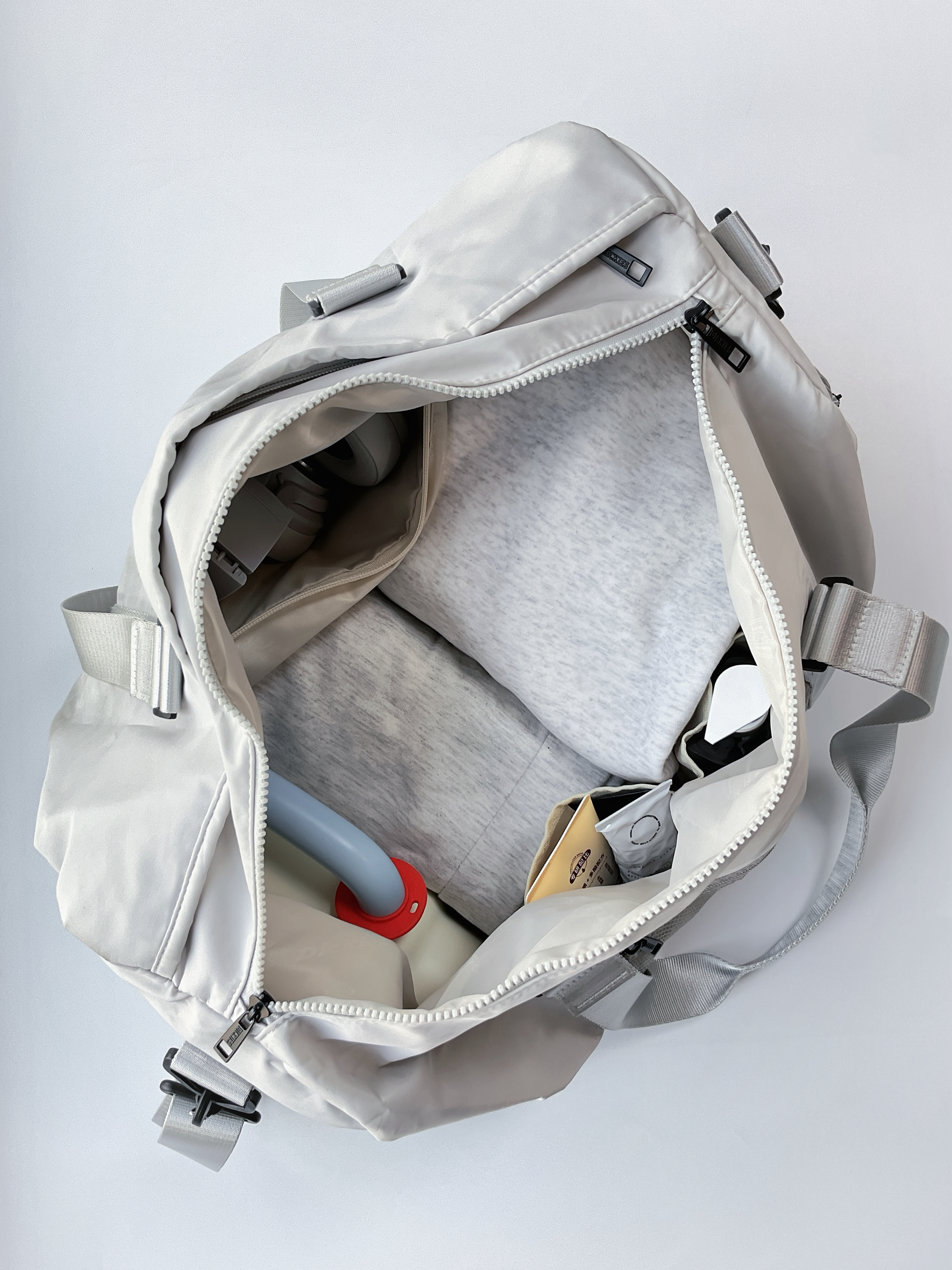 冬天去健身,麻烦的不是训练,是出门那一刻! 真的不想裹得里三层外三层,还得像个逃难一样大包小包⋯ 近期背上了这一个浅灰色斜挎包出门 又轻又酷,健身需要的东西都能装下!感觉去健身都变轻盈了~ 这个灰色真的蛮百搭的,冬天穿深色浅色外套都能配。 中间有个小小的品牌logo,不张扬但很有细节感,潮酷风拿捏得刚刚好 健身完直接去逛街喝咖啡也完全不违和。 而且它有 独立鞋仓和干湿分离区 运动完汗湿的衣服和鞋子...
