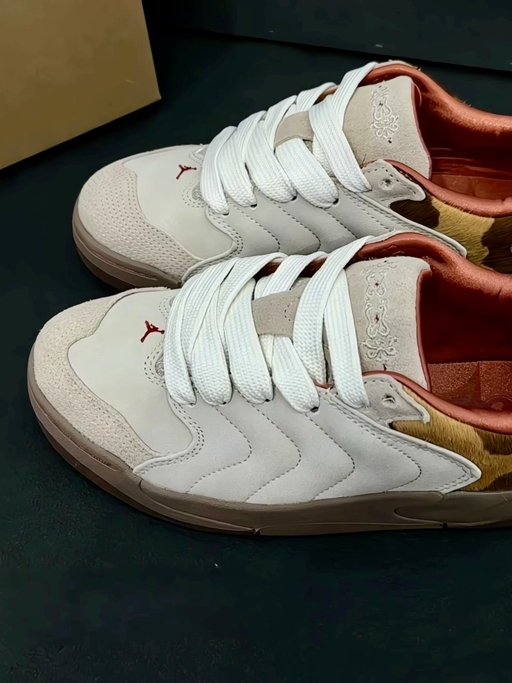 谁能拒绝一双年味拉满的AJ面包鞋啊🤩!奶白麂皮搭仿马毛拼接,酒红内衬藏着新年小惊喜,复古又高级。试穿踩屎感超绝,通勤挤地铁走一万步不累脚,滑板刷街抓地超稳,逛市集配大衣也巨出片~穿搭建议搭工装裤/百褶裙,秒解锁美式复古风,宽脚姐妹选正码就ok👌。马年穿它直接一马当先,小众不撞款的新年战鞋锁死这双!