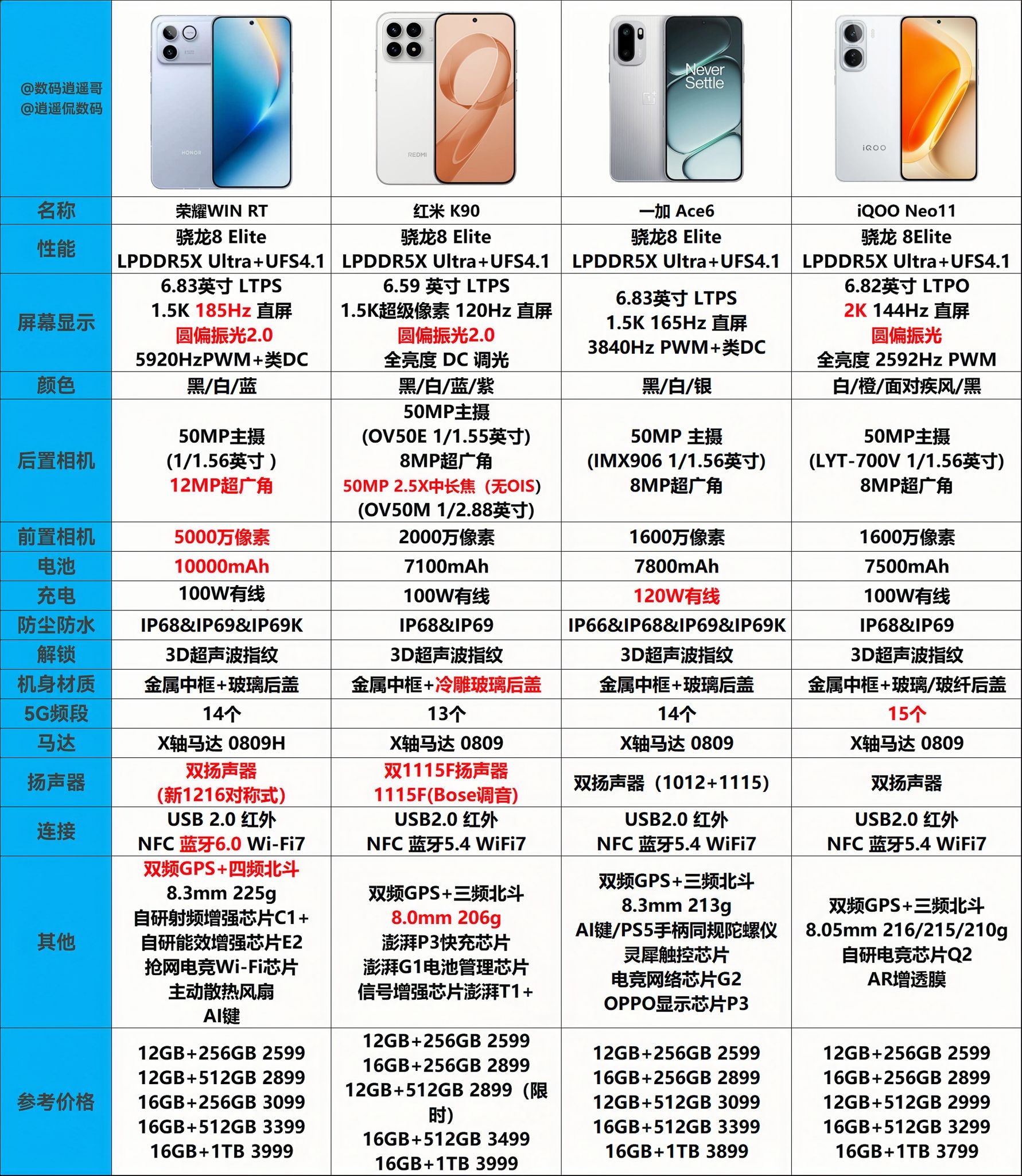 【荣耀WIN RT对比红米K90、一加Ace6、iQOONeo11。】,由用户 数码逍遥哥 分享,来自河北。这是一篇来自识货社区的真实用户分享笔记。