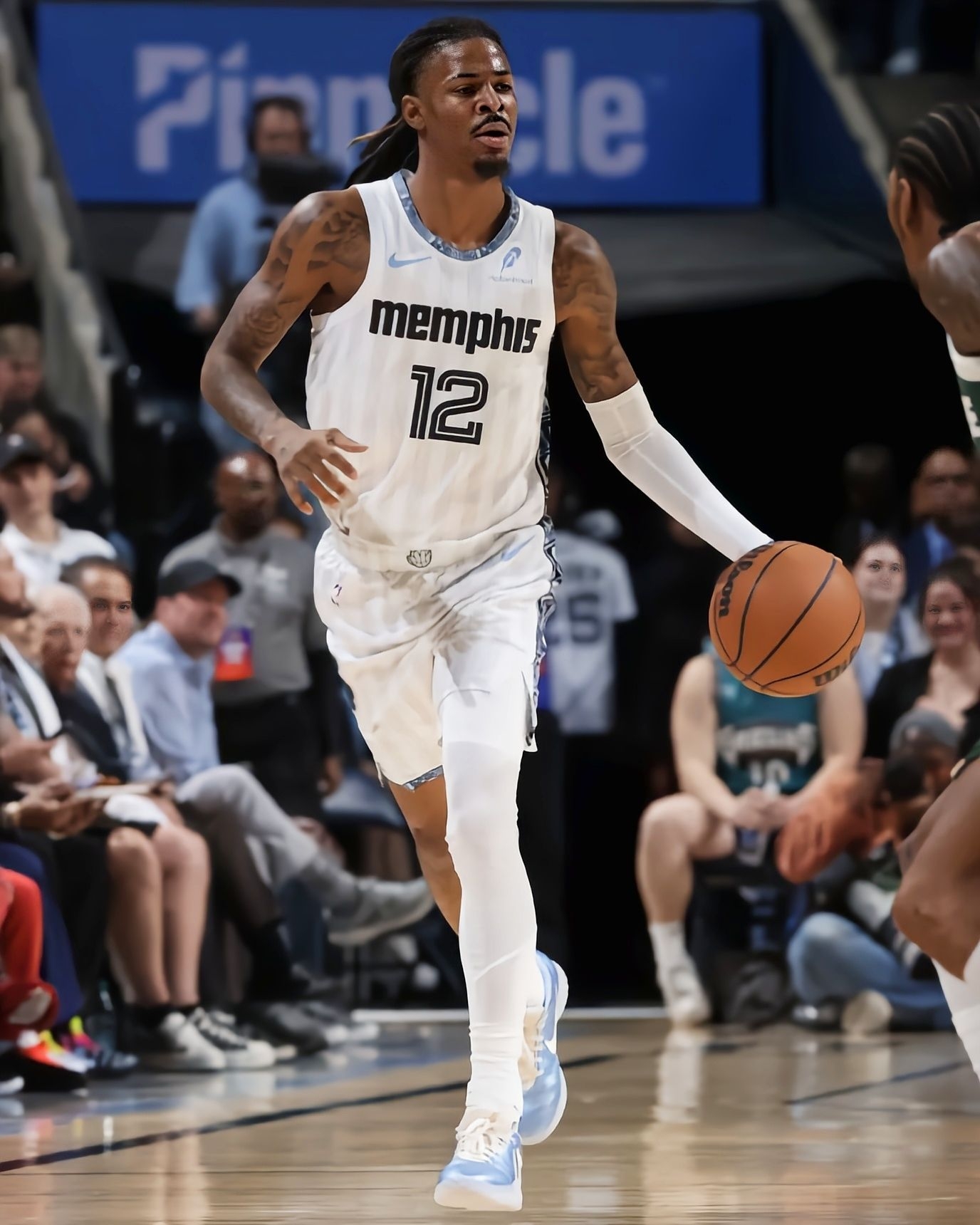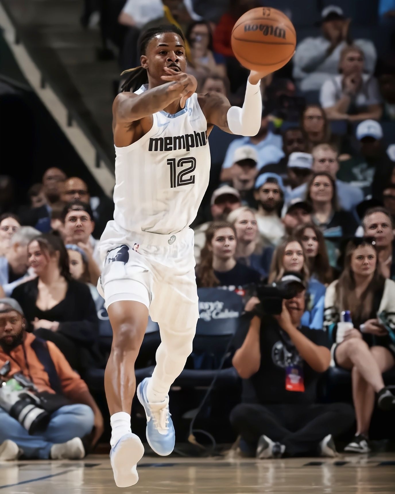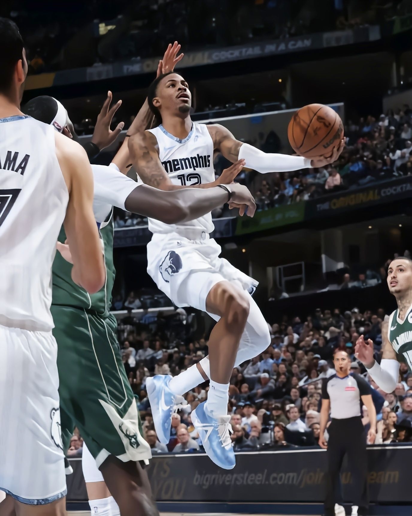今天看灰熊对雄鹿的比赛,直接被莫兰特脚下的冰蓝配色Nike JA3吸睛了! 灰熊125-104赢下雄鹿,莫兰特出场25分钟砍17分4篮板10助攻2抢断,数据依旧在线。而这双冰蓝JA3在球场上的视觉效果真的绝,浅蓝的鞋面搭配透明外底,清爽又有质感,和他的球风一样灵动。 鞋身的透气网面设计看着就很适合实战,鞋型的包裹感从赛场动态里也能看出来,难怪莫兰特这么爱穿自己的签名鞋打比赛。这配色不管是实...