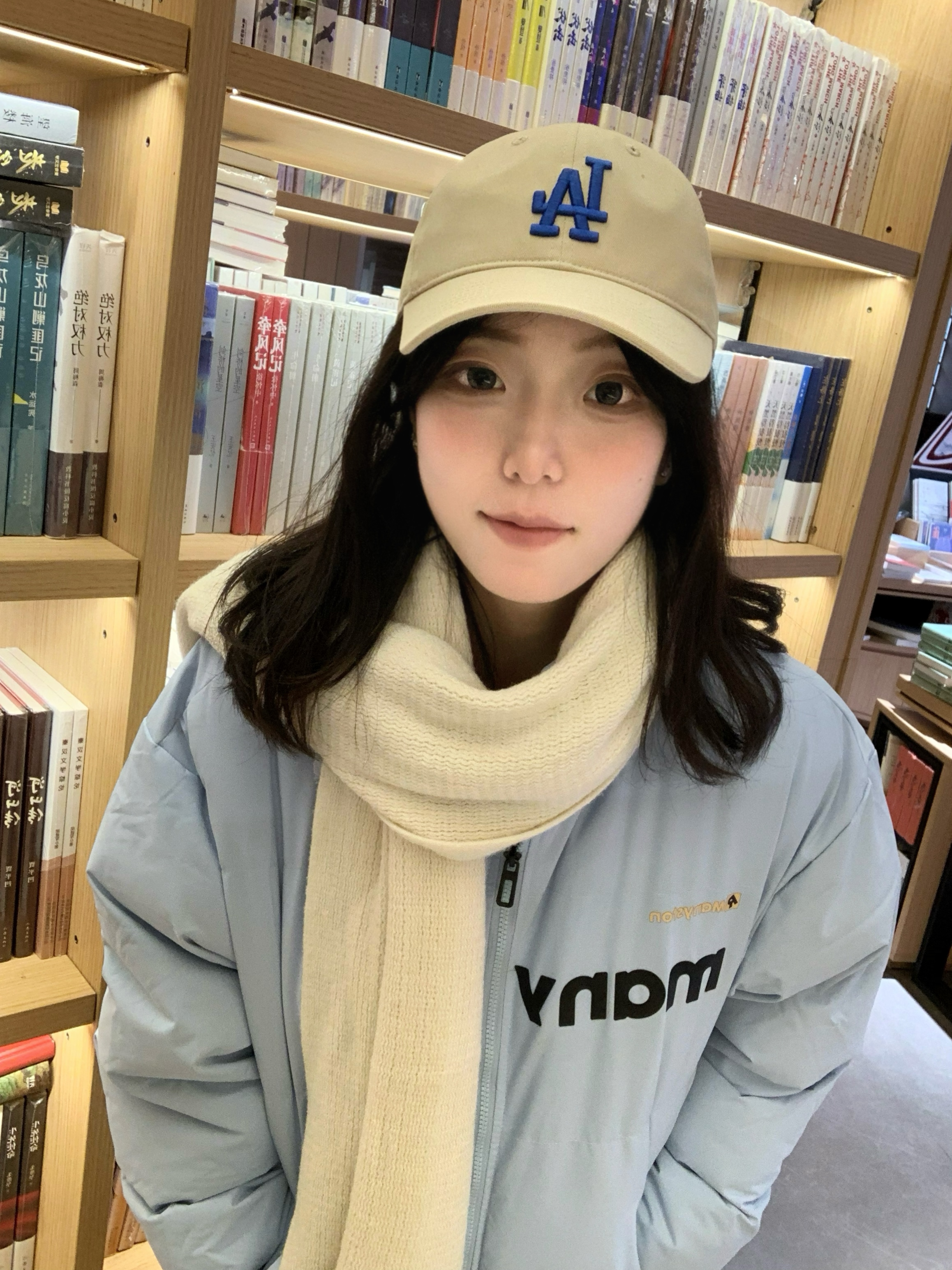 冬天夏天戴都好看 作为搭配很合适 今天穿了一件蓝色棉服 搭配米白色的mlb帽子就很好看
