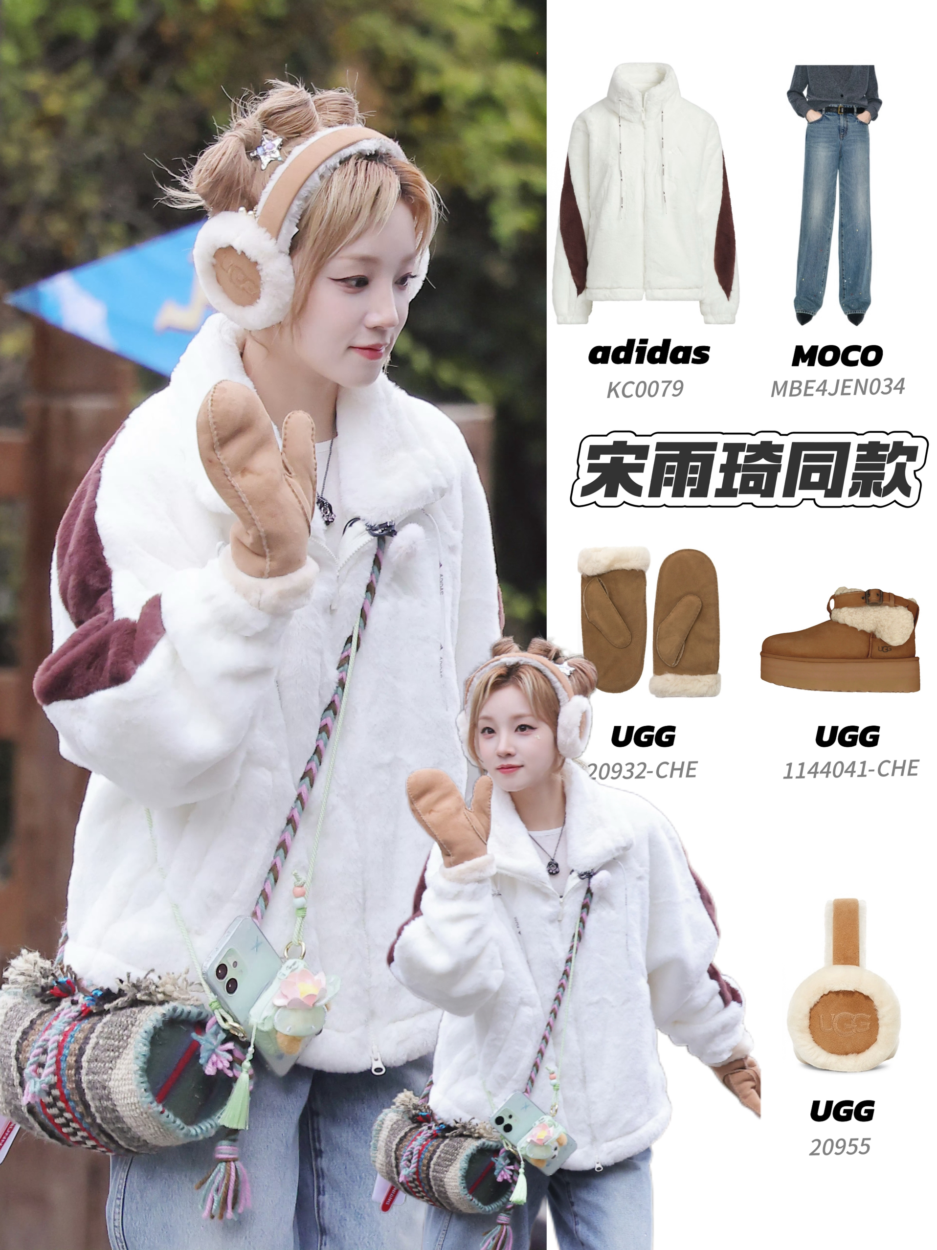 雨琦综艺路透来啦~adidas白色毛绒棉服太可爱了,治愈氛围拉满~ Adidas毛毛外套蓬松柔软的质感自带温暖氛围,却完全不显臃肿,撞色条纹设计为简约版型注入活力,既保留了棉服的实穿保暖性,又兼具时尚感。搭配阔腿牛仔裤与UGG系列配饰,轻松成为冬日造型的吸睛焦点~