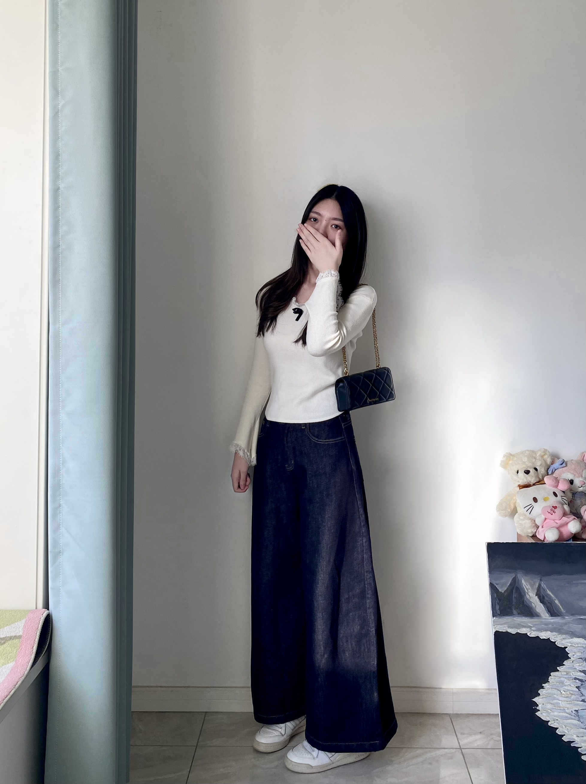 衣柜里最不能少的就是牛仔裤了,玫丝朵家这条蓝色阔腿裤深入我心啊 宽宽松松的版型,很修饰腿型对于我这种梨形身材尊滴很友好了 而且颜色也特别复古,随便一搭都很有氛围感,真滴爱了爱了