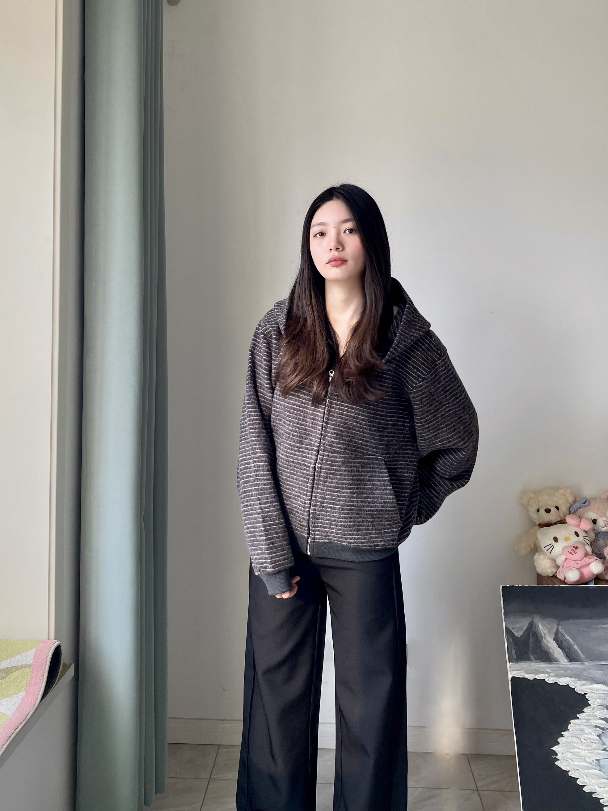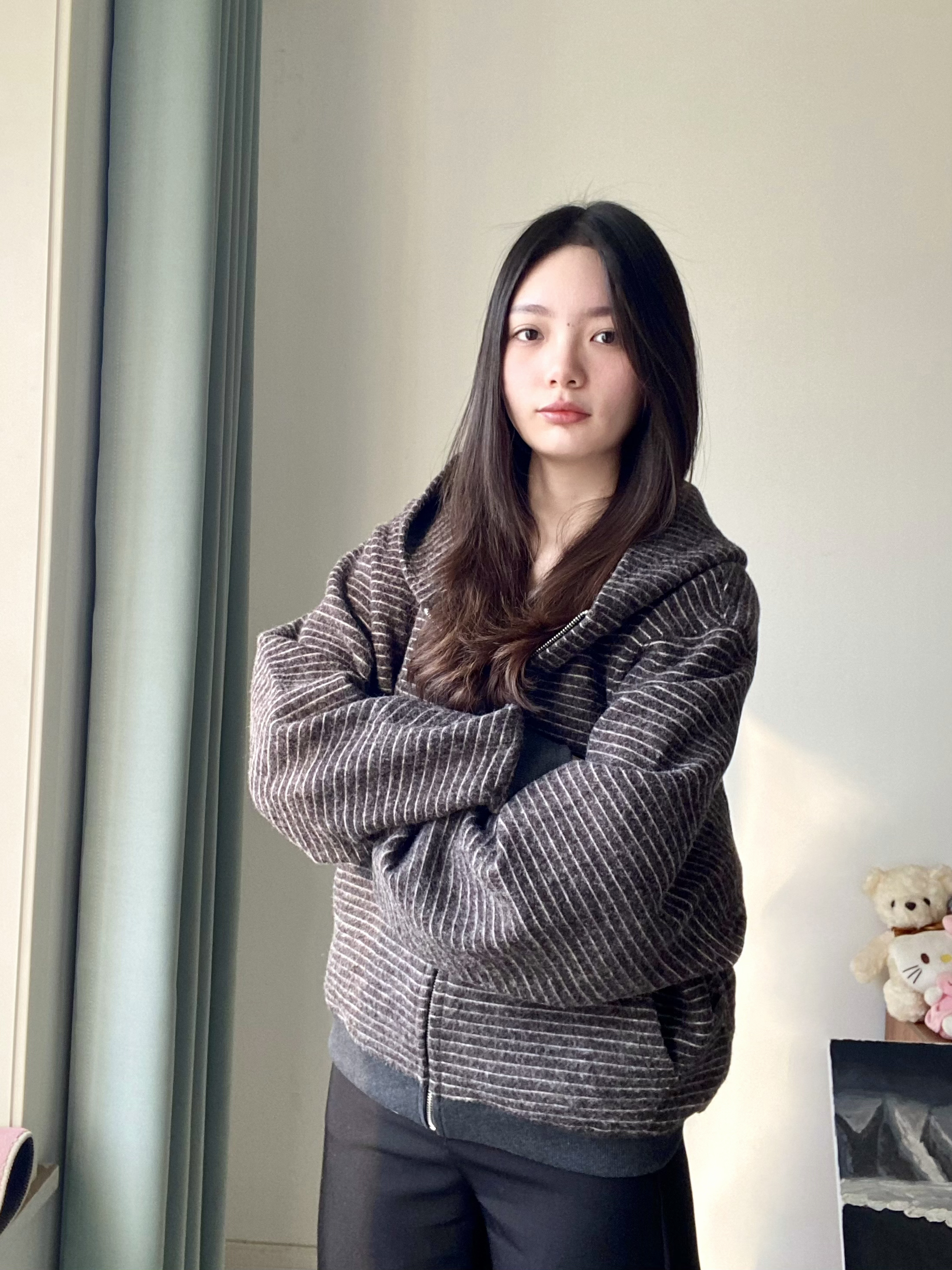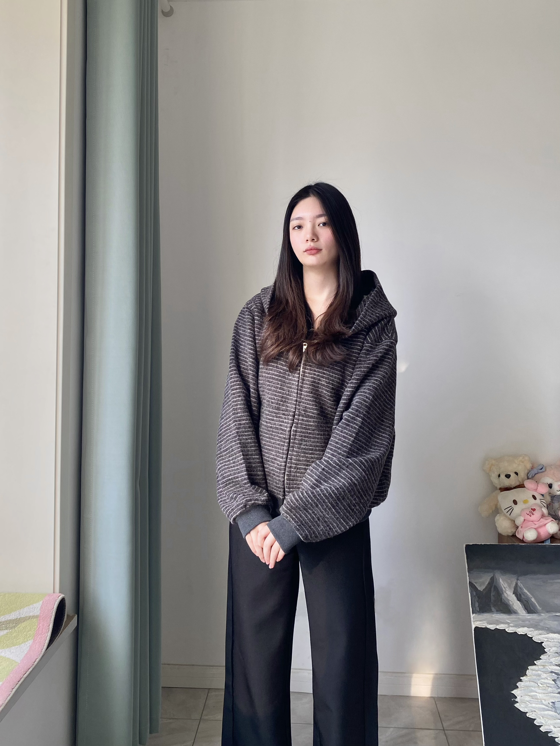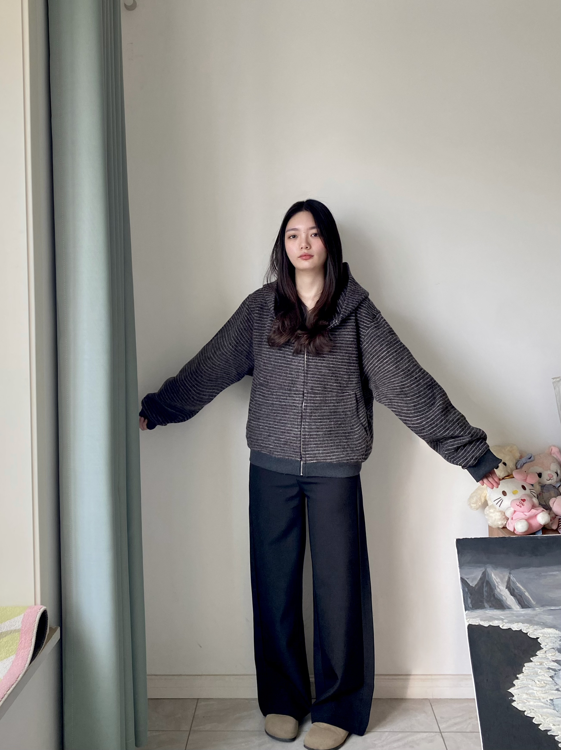 秋天尊滴好喜欢这种版型的外套,宽宽松松的视觉上特别显瘦, 面料是那种软fufu 的,上身很舒服,搭配黑色长裤或者牛仔裤很吼看 条纹的设计自带慵懒氛围,日常出街,上课通勤都蛮适合穿的