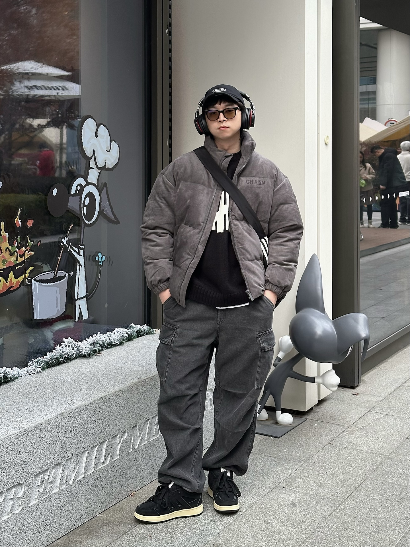 ▫️这套LOOK是我近期利用率最高的一套。这件翻领哈灵顿夹克是整身的视觉核心,灯芯绒领口的细节处理瞬间拉满了复古氛围感,不像传统工装那样粗犷,反而透着一种利落的精致感。内搭我选了黑色打底,刚好在夹克开襟处形成了自然的视觉跳跃,层次感拉满。 ▫️裤装方面,这条卡其色阔腿工装裤简直是年度真香单品。硬挺的面料撑起了下半身的廓形,微阔的裤腿自然垂坠在厚底黑色穆勒鞋上,视觉上不仅拉长了腿部比例,还中和了上...