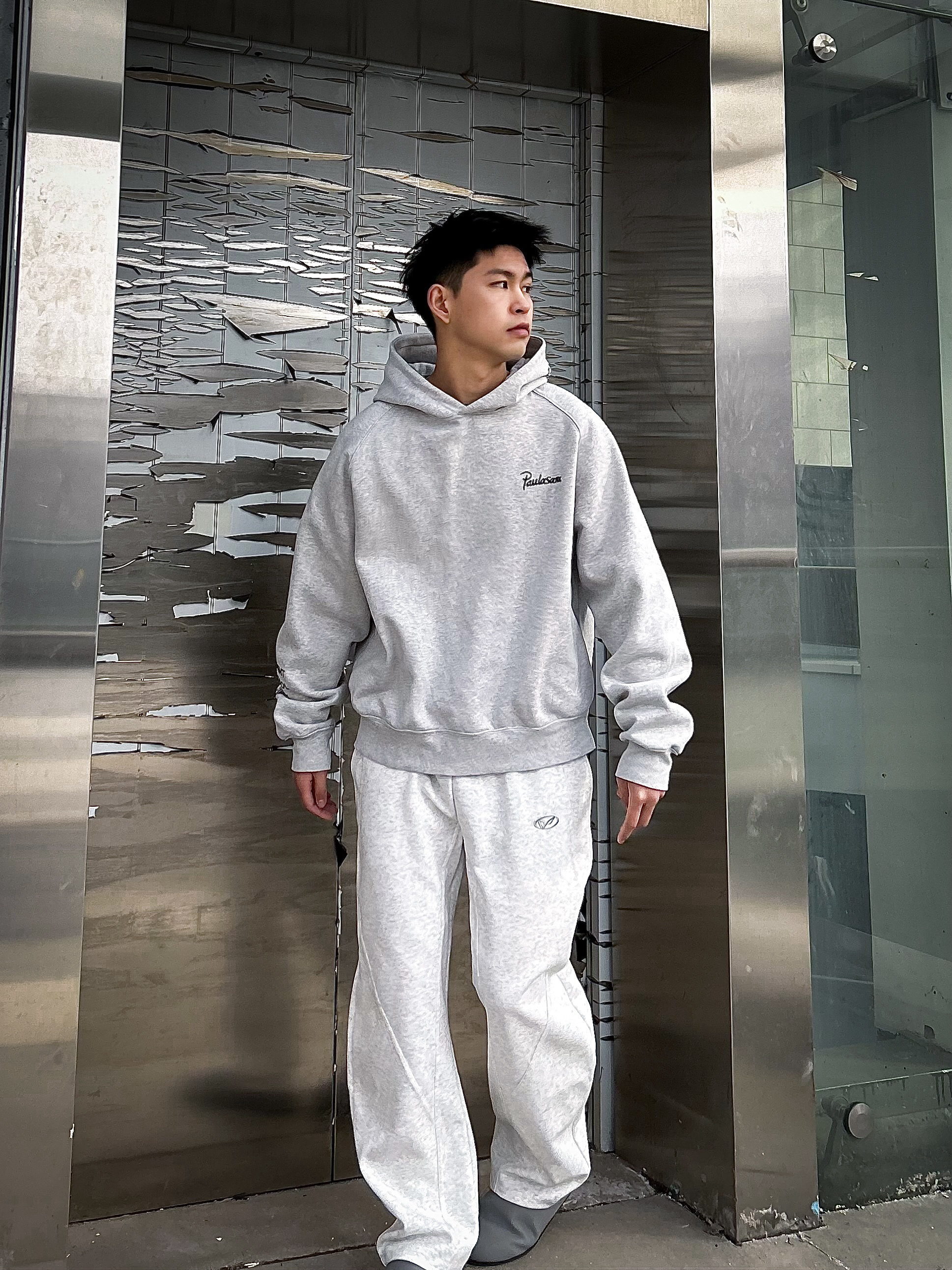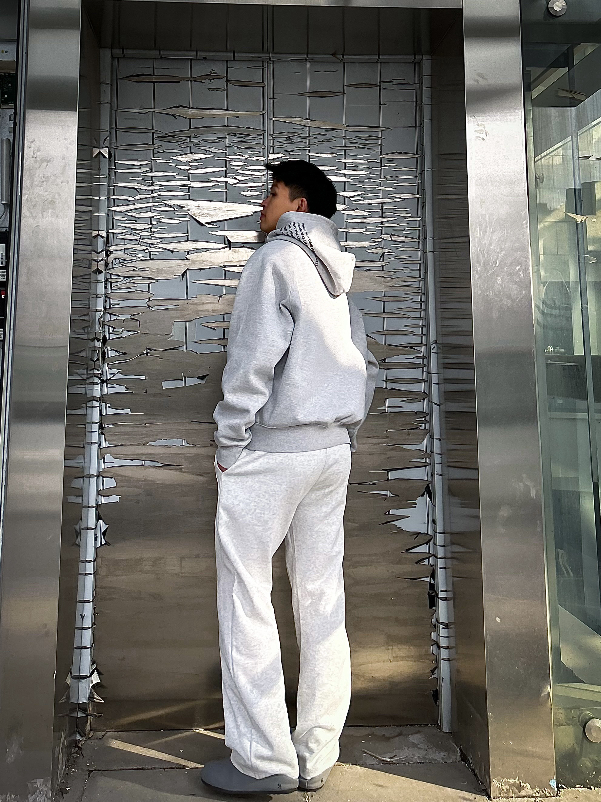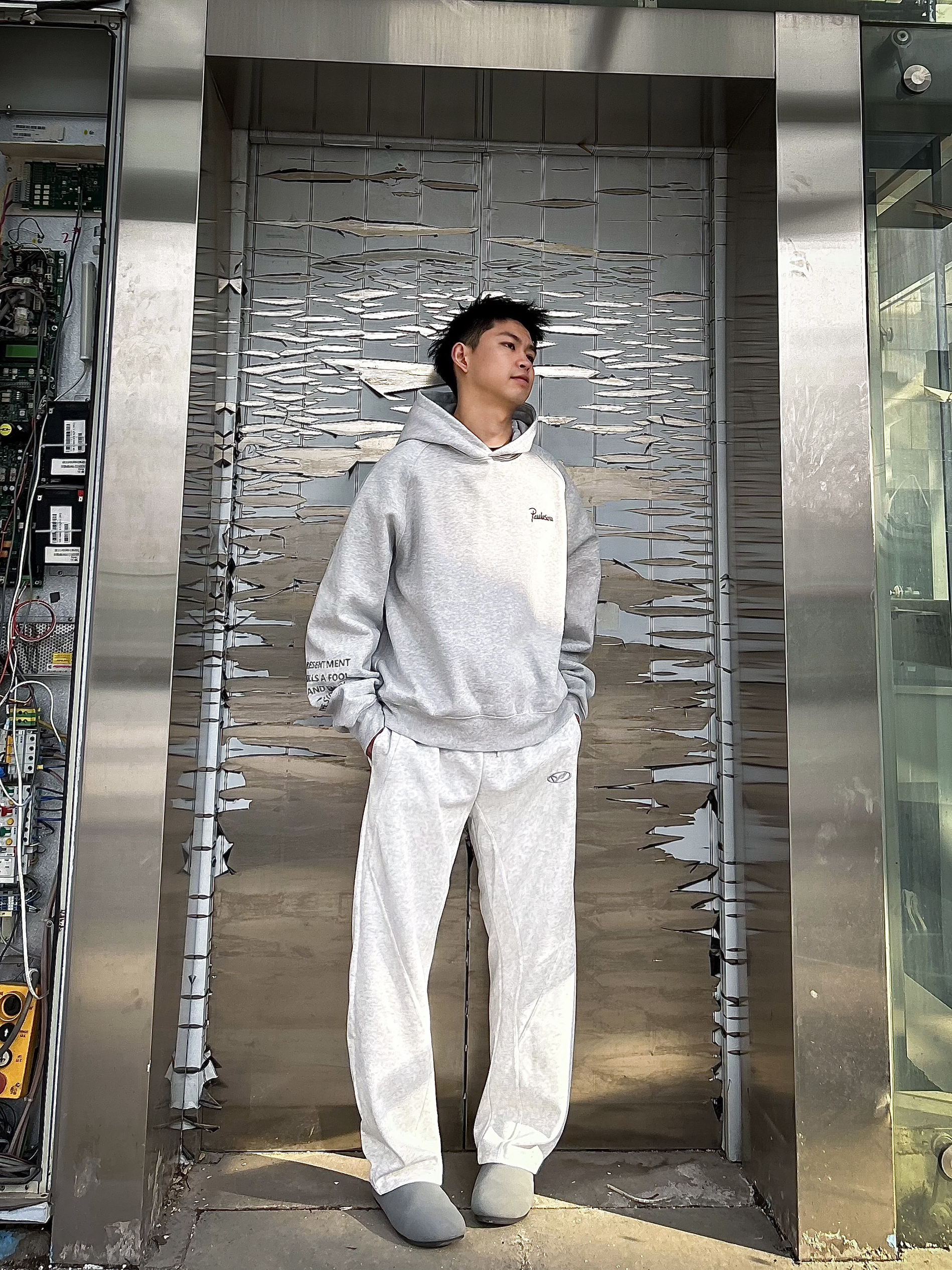 哈咯,这里是卢_SG 秋冬慵懒感运动风套装穿搭! 上身选了件浅灰字母连帽卫衣 胸前小logo+袖身+帽沿的文字装饰层次感拉满 宽松落肩版型,藏肉的同时还能穿出随性松弛感! 软糯的面料亲肤又保暖 下身搭了条同色系浅灰卫裤 同色系搭配直接拉满整体的协调感 阔腿裤型自带垂坠感,既能中和卫衣的臃肿 侧边小标装饰简约不单调 整套同色系穿搭懒人也能轻松拿捏氛围感!