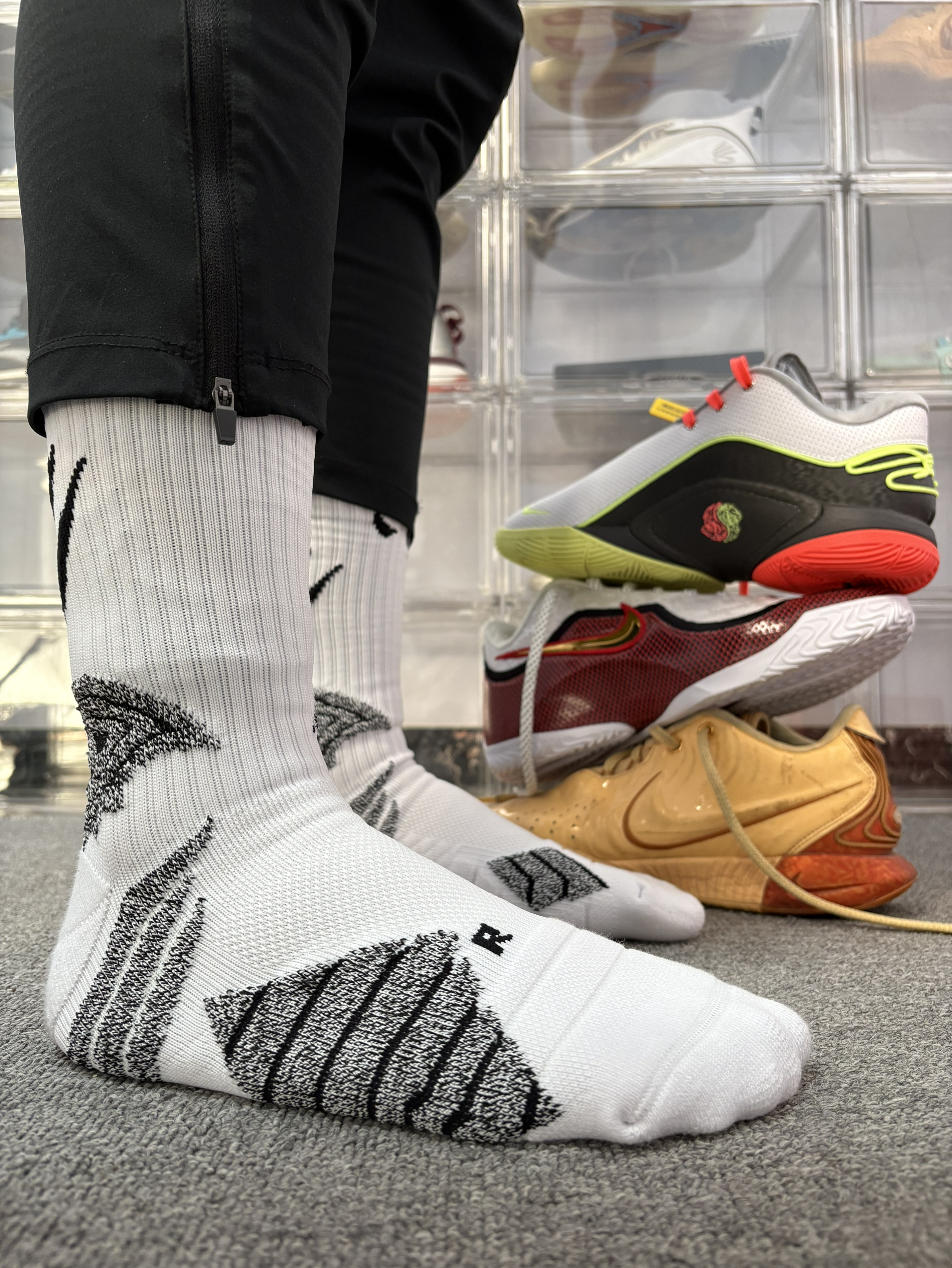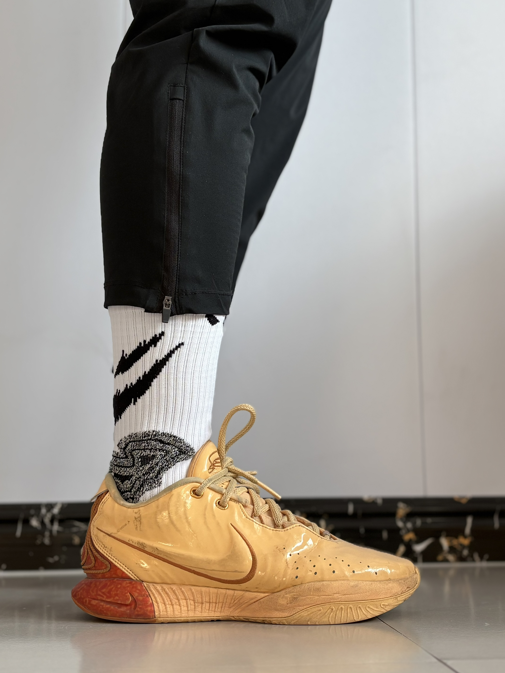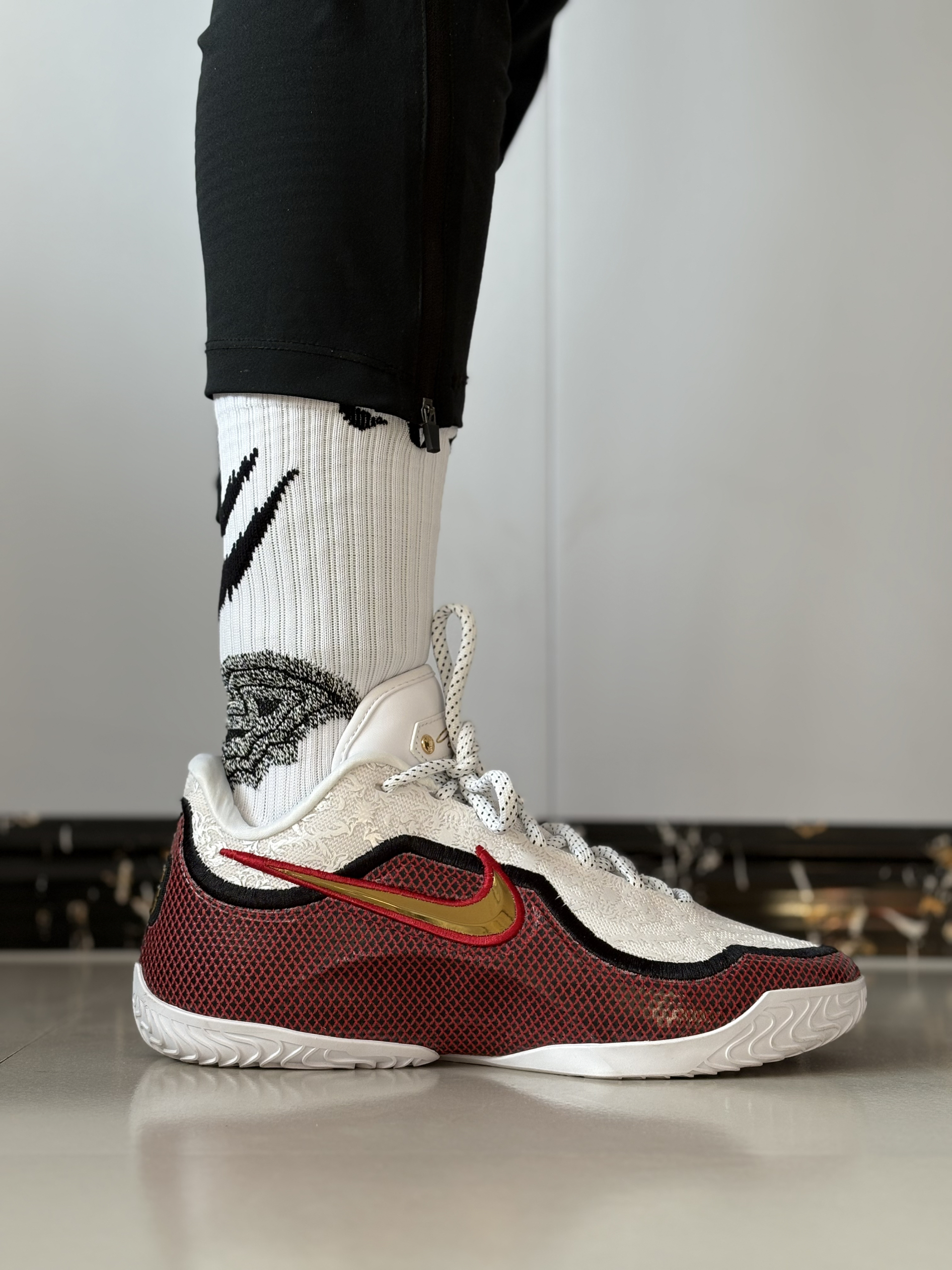 这几代的詹姆斯球鞋我真的超级喜欢🥰 配上我的宝藏球袜@维动VEIDOORN 恶魔pro真的很帅‼️ 身高181cm,体重77kg,选的均码超合适~每次打球最怕袜子滑来滑去,这双的防滑砂配置和多层防滑模块真的救星,跑跳变向时脚底牢牢贴住球鞋,完全不会移位✅ 足跟的减震防护设计也很贴心,落地时能明显感觉到缓冲,打半场下来脚后跟都不酸。脚背是大面积透气网面,就算夏天打全场,脚也不会闷得慌,毛巾底的脚感...
