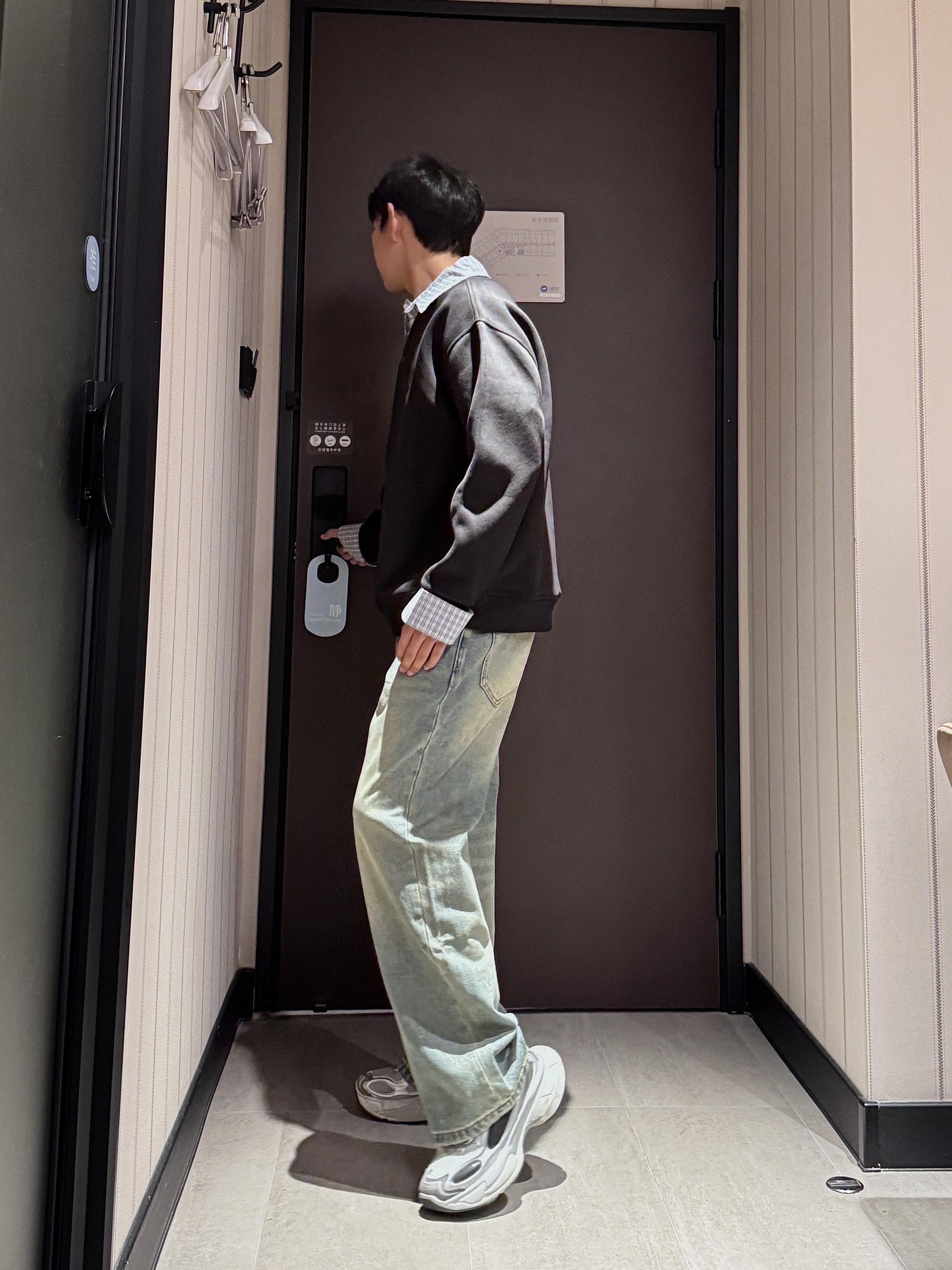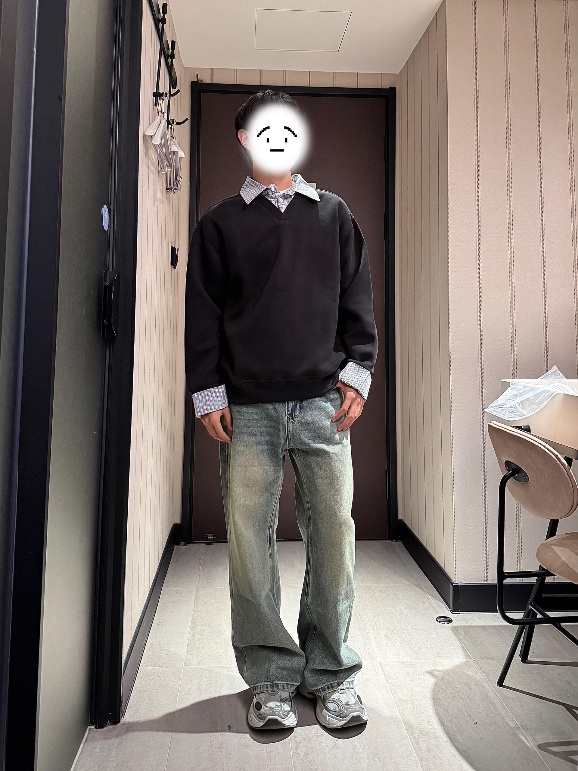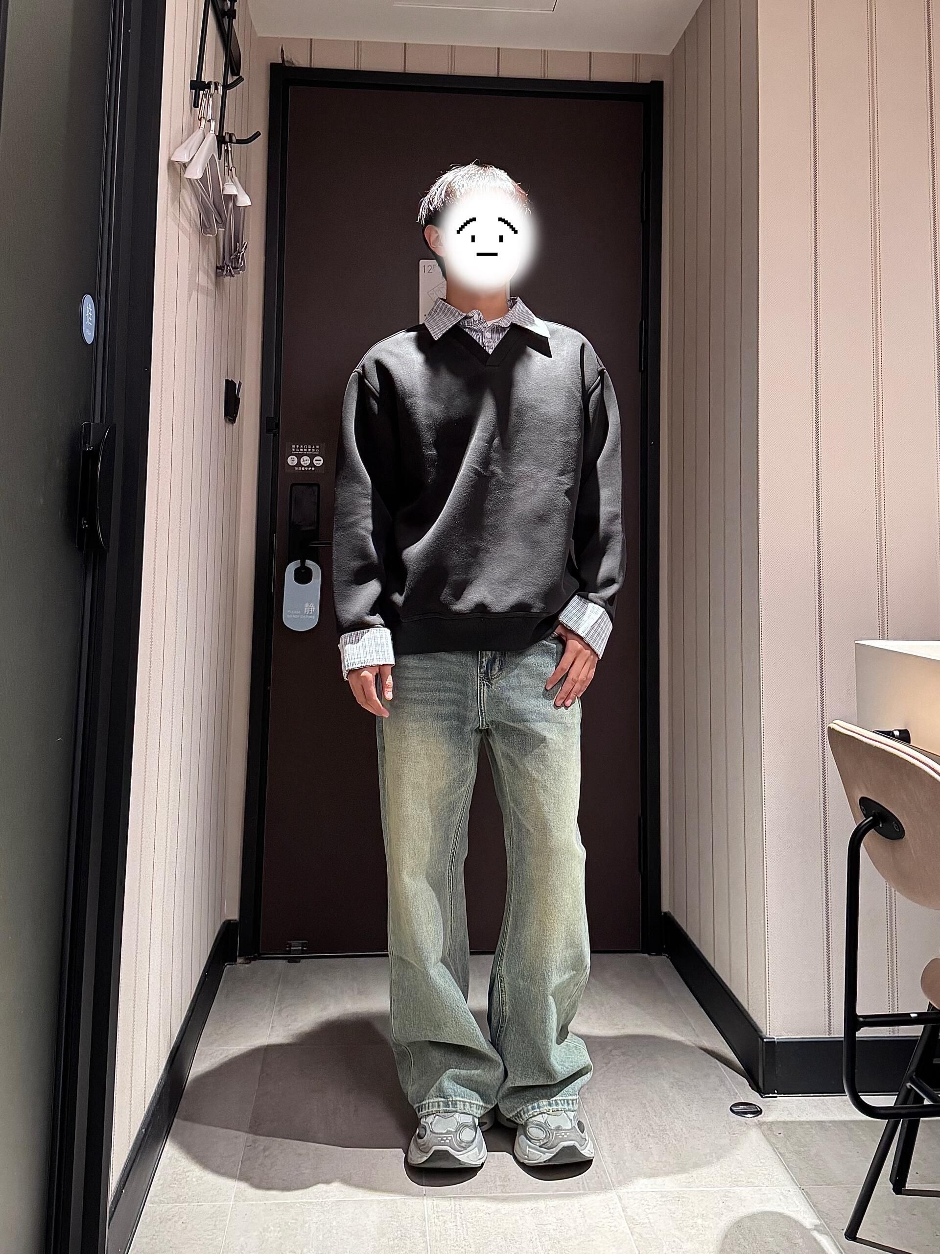 好久没穿卫衣咯!!今天穿了个假两件的卫衣 内搭外穿都好看嘿嘿 裤子选了一条带一点点黄色调的牛仔裤 版型刚刚好 重点是裤长刚刚好!!是那种刚好堆在脚面上 很显腿长嘿嘿