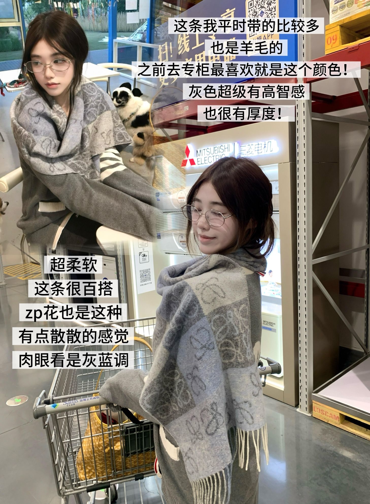 本篇笔记关联了LOEWE/罗意威 Anagram印花格纹绒线羊毛流苏围巾 F810487X17 蓝色5102等商品,为用户提供真实的使用体验和购买参考。