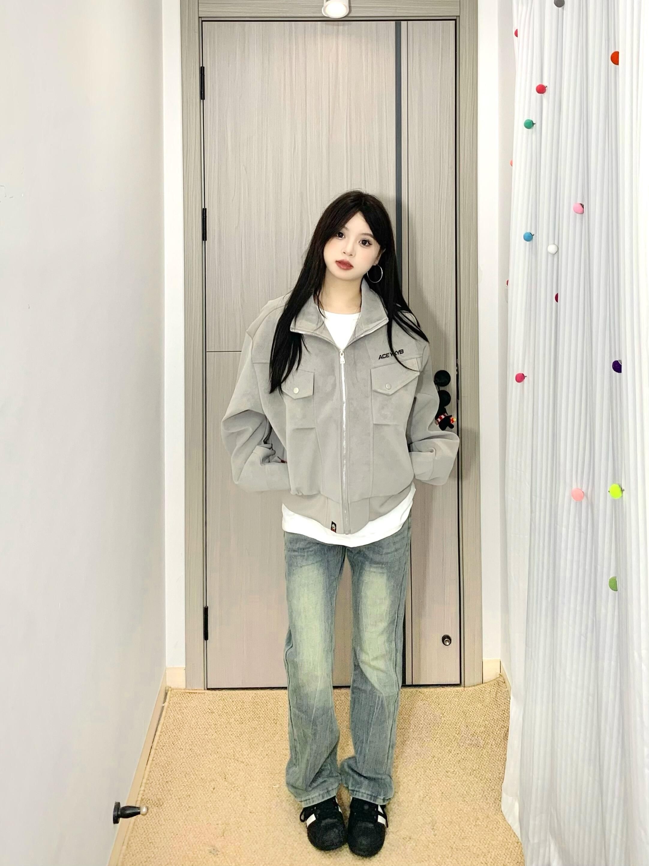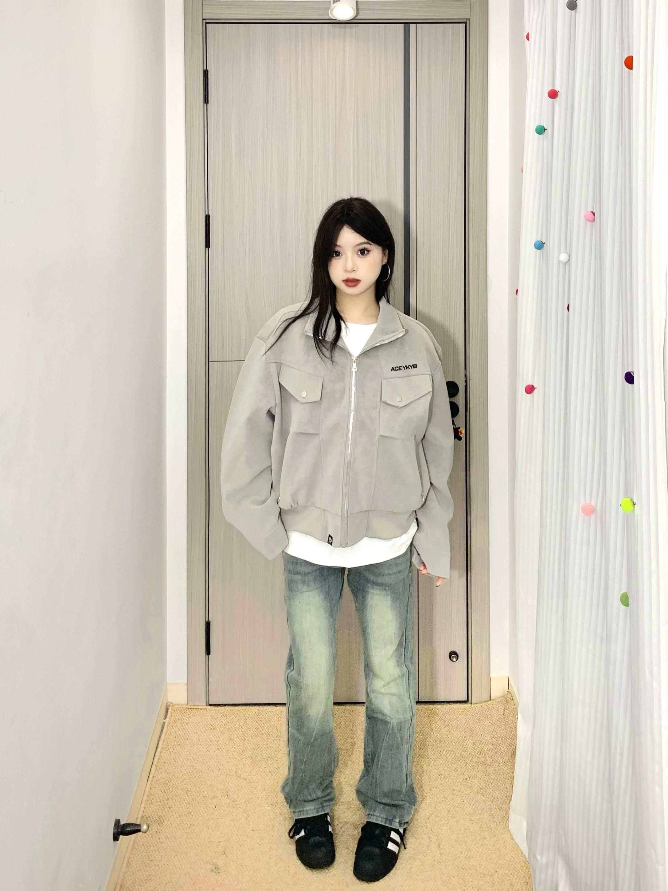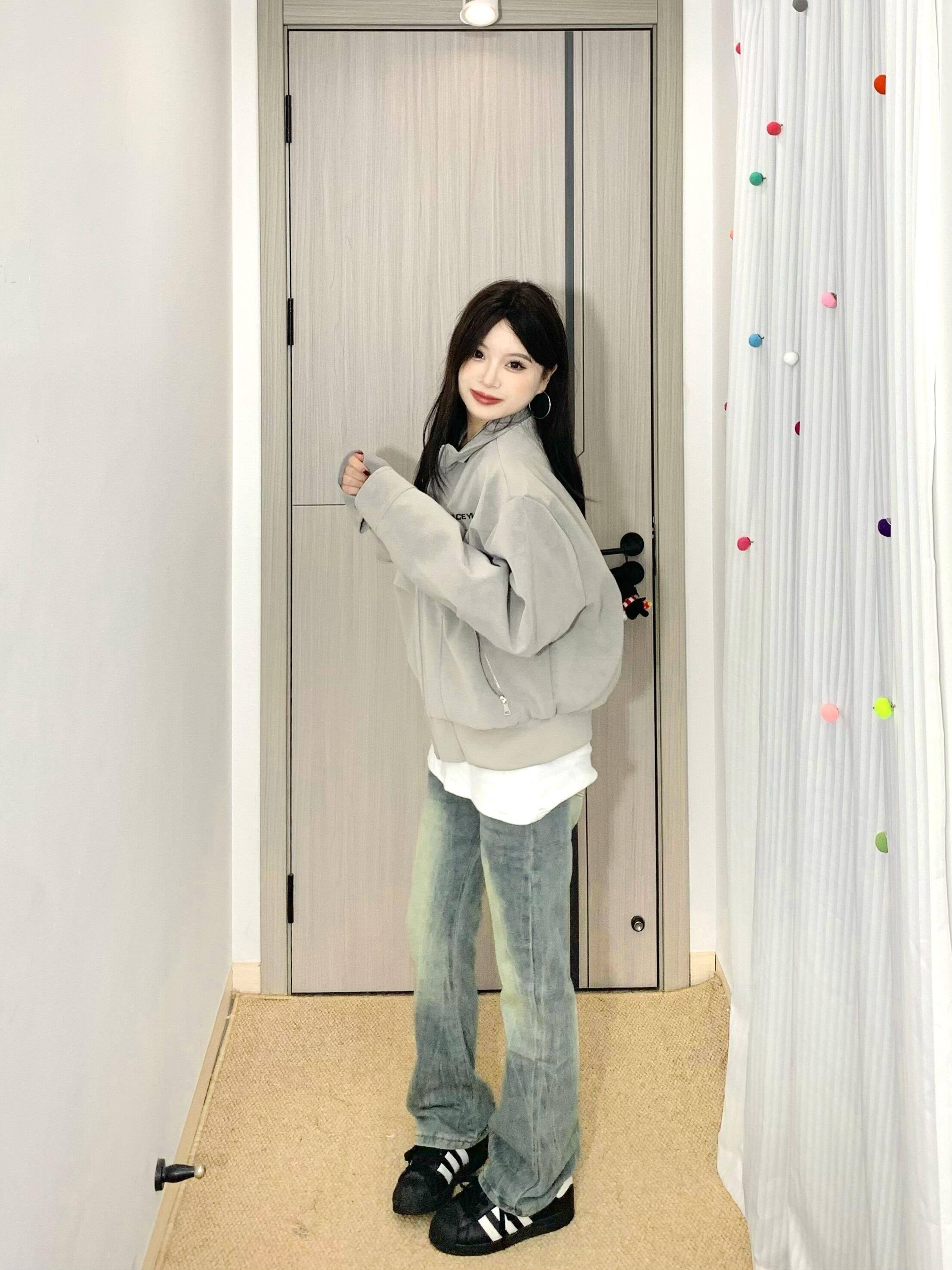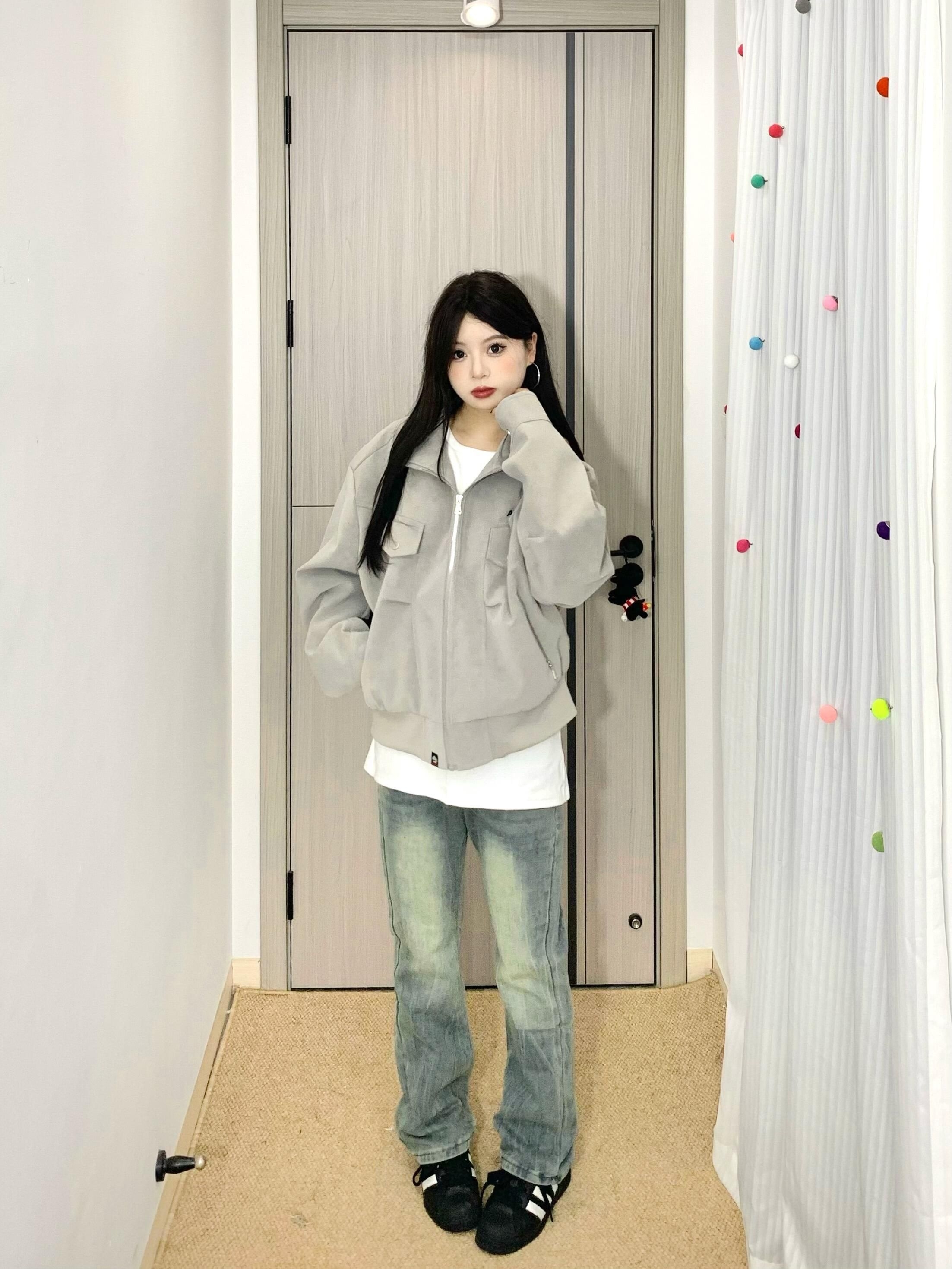 哈咯哈咯来分享今日穿搭啦! 163cm 50kg 尺码:M - 复古机车夹克真有点街头风的感觉🤩 雾面pu皮面料质感拉满✅ 耐穿又时尚打理起来也蛮方便~ 立领设计防风又很有个性🌬️ 宽松的版型男女都可以穿👫 上身敲有造型不用担心会软塌 搭配水洗牛仔裤一整个就很酷! 日常很百搭🥳出门玩都很在线呢~