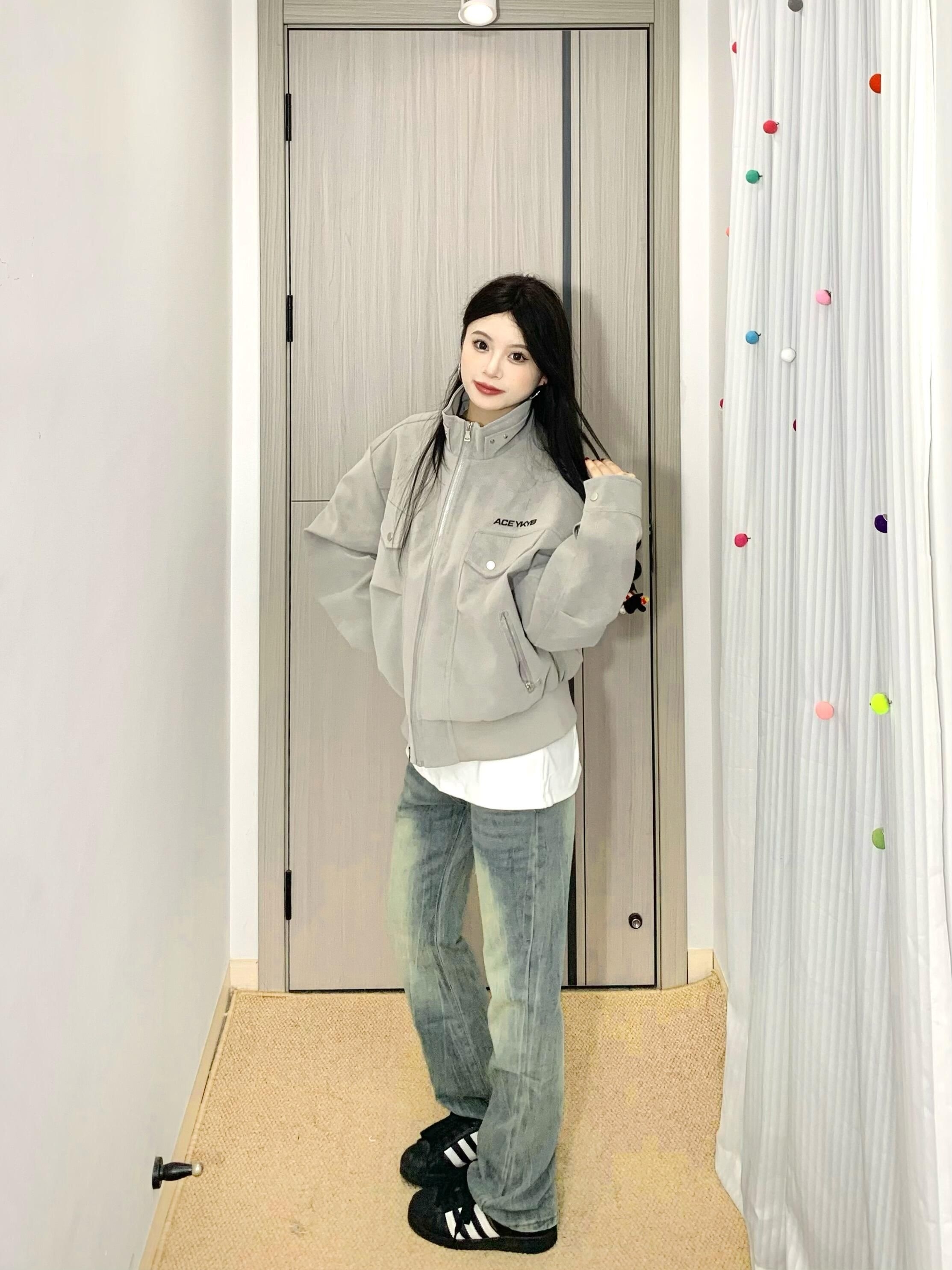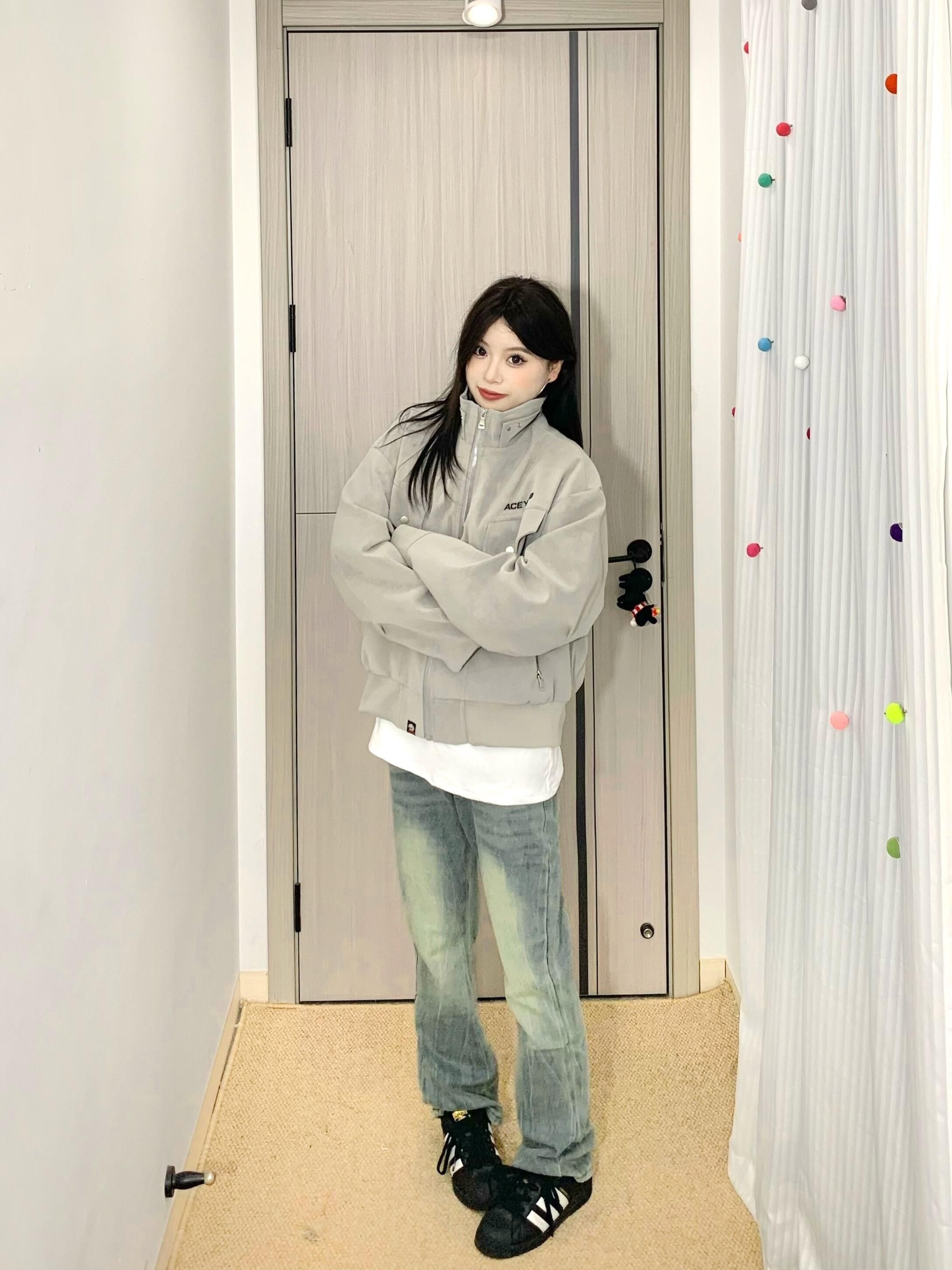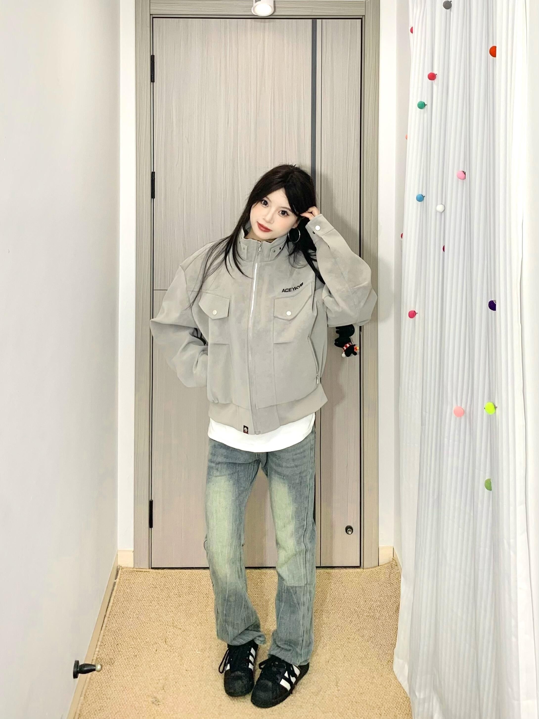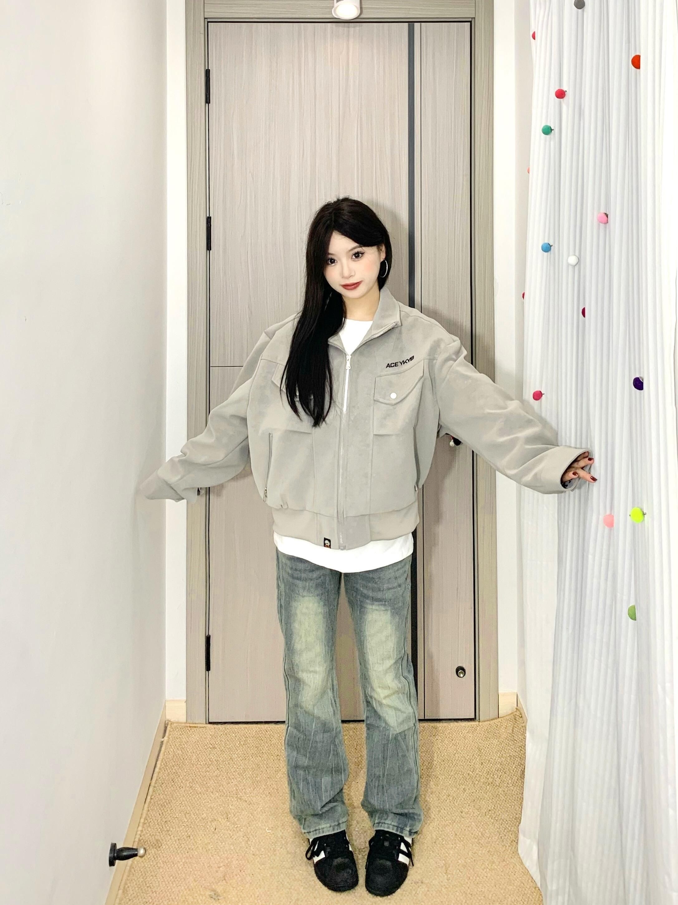 哈咯哈咯来分享今日穿搭啦! 163cm 50kg 尺码:M - 复古机车夹克真有点街头风的感觉🤩 雾面pu皮面料质感拉满✅ 耐穿又时尚打理起来也蛮方便~ 立领设计防风又很有个性🌬️ 宽松的版型男女都可以穿👫 上身敲有造型不用担心会软塌 搭配水洗牛仔裤一整个就很酷! 日常很百搭🥳出门玩都很在线呢~