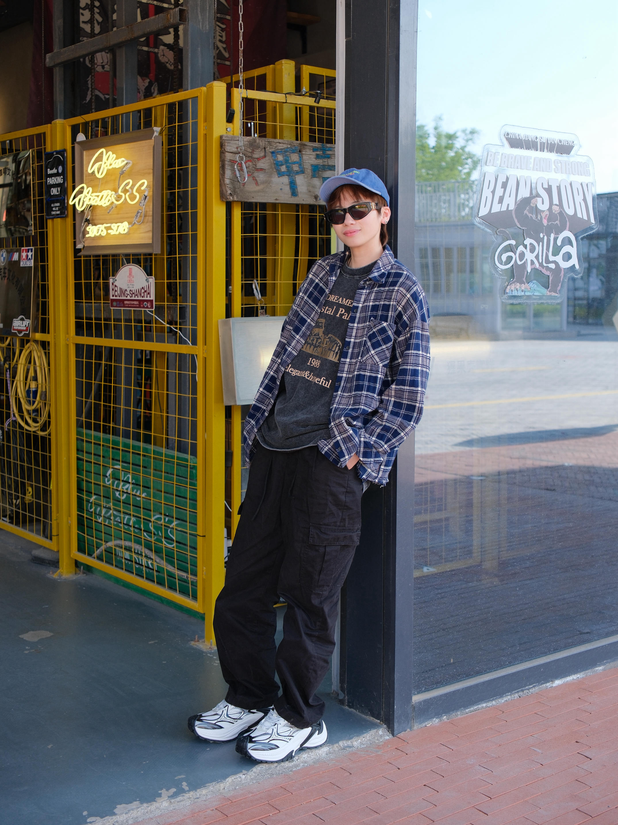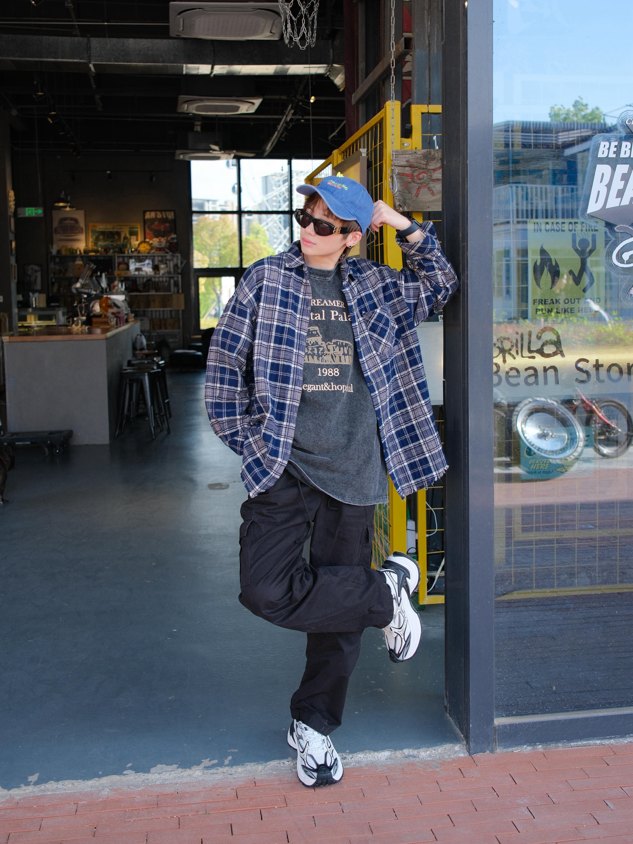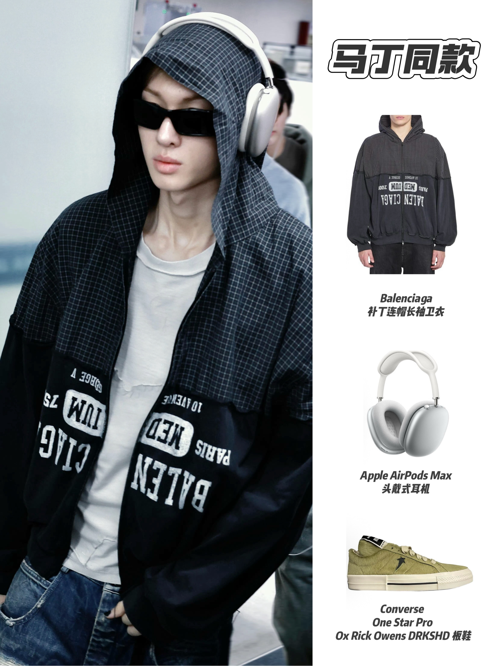 明星穿搭回归现实 想买同款衬衫结果没货 就用件格子元素的衬衫代替一下 内搭也选了灰色的T恤 下半身用工装裤搭配老爹鞋 鞋子找到了同款,算完美复刻上了 黑白配色上脚非常百搭 鞋身带点银色设计,有点y2k的未来感 厚底增高5cm,对我这种小个子比较友好 整体上脚的包裹感也很舒服