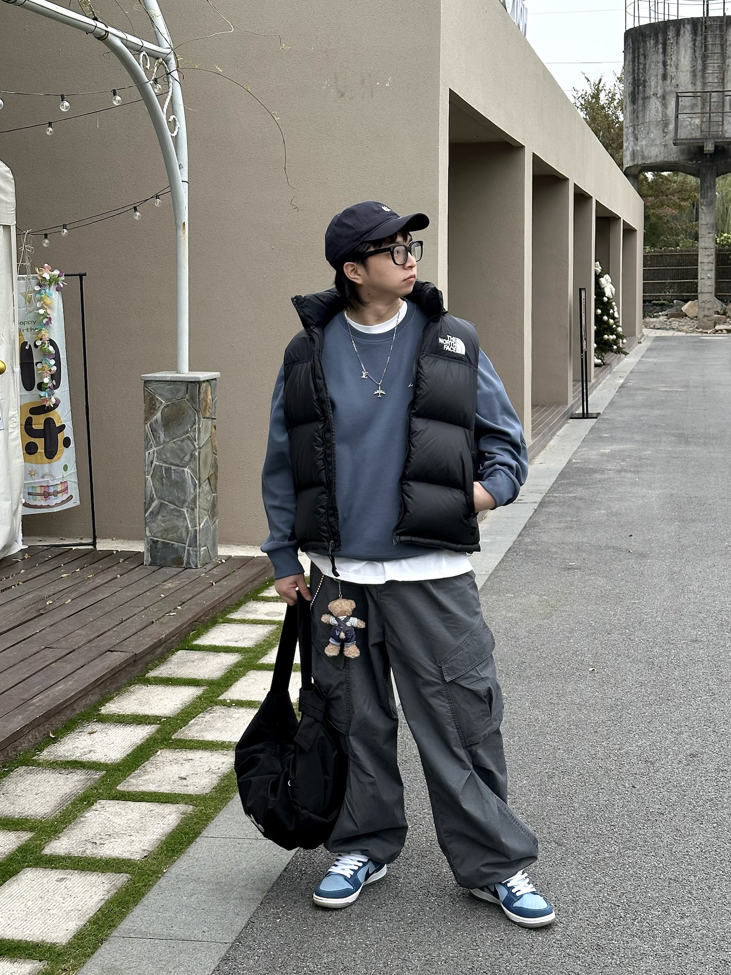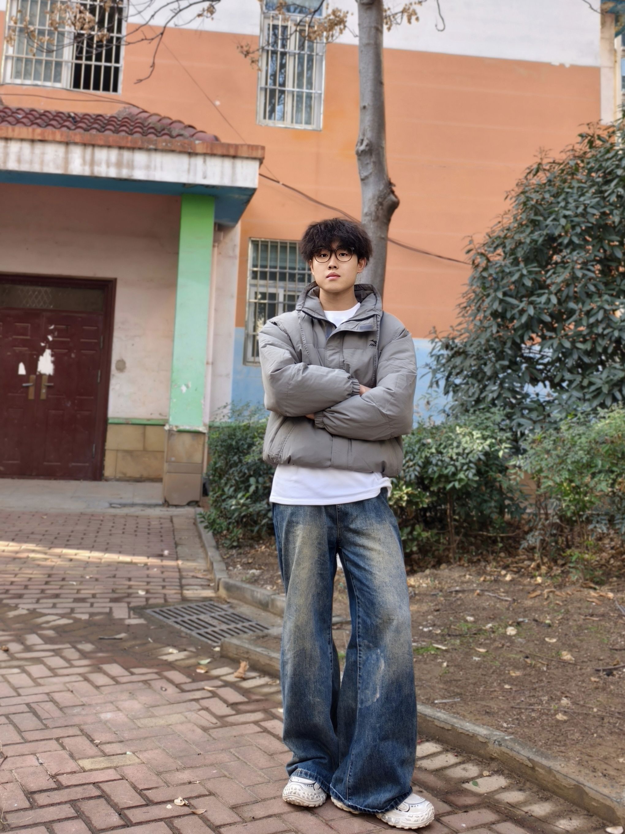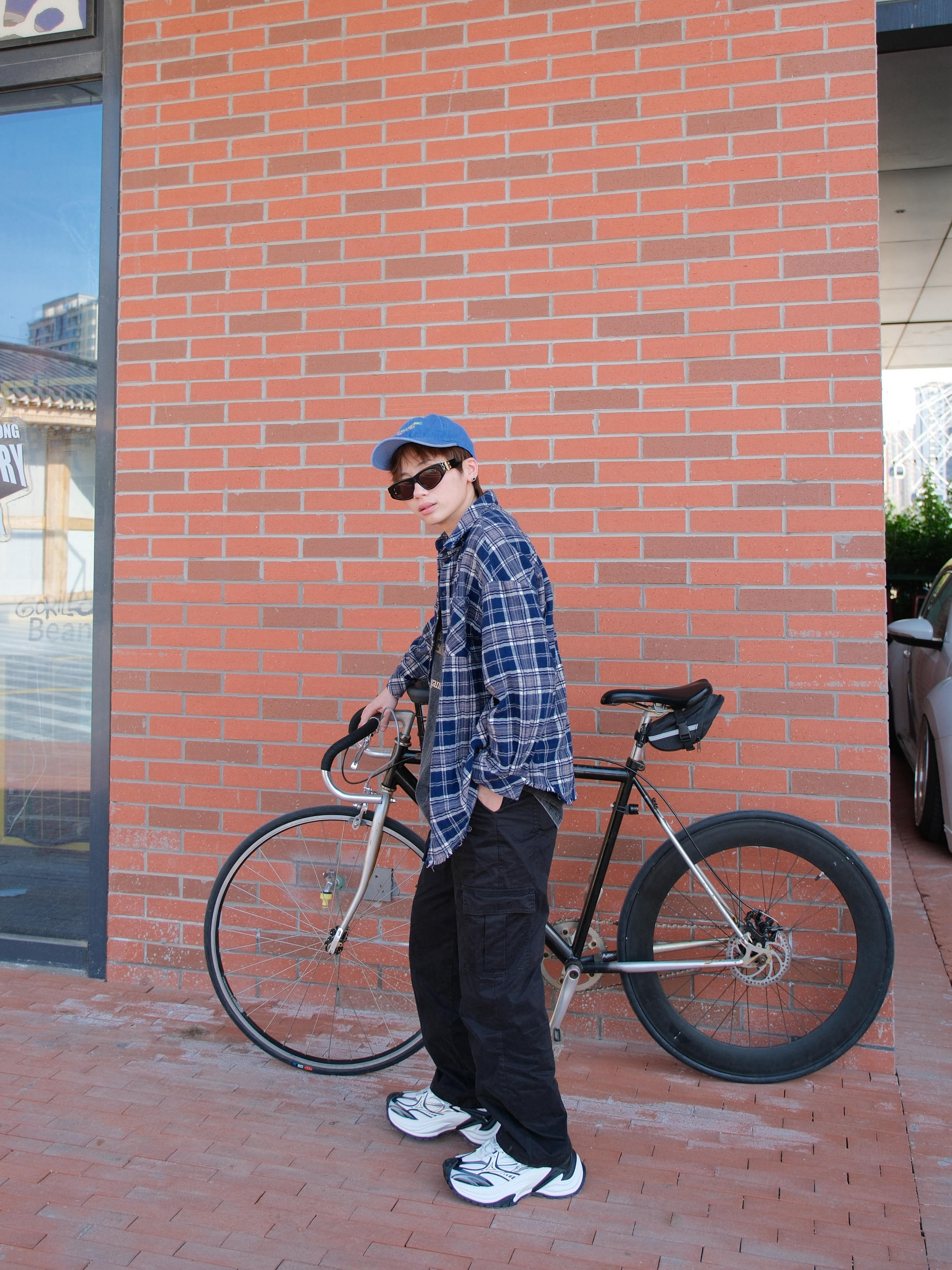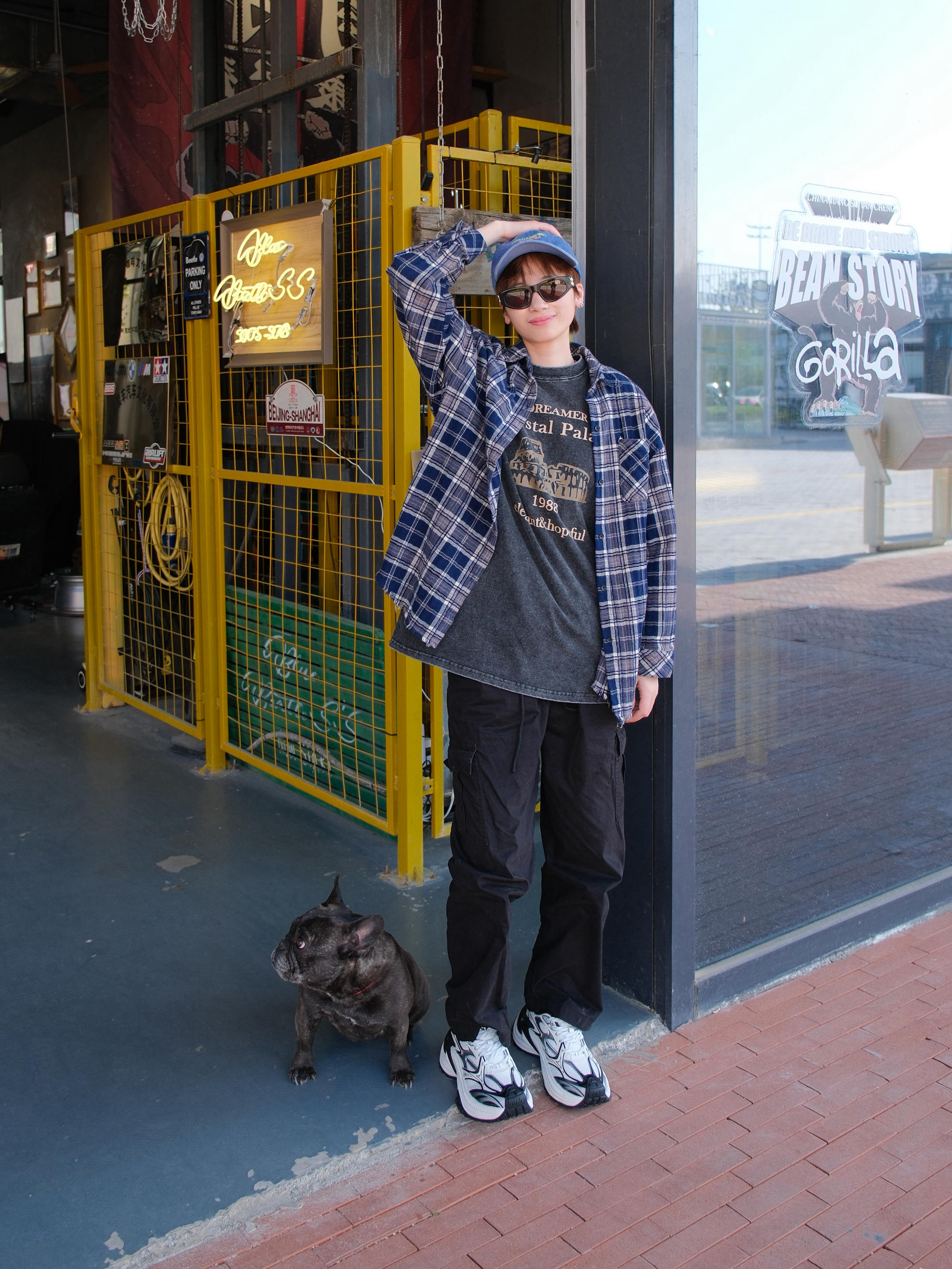明星穿搭回归现实 想买同款衬衫结果没货 就用件格子元素的衬衫代替一下 内搭也选了灰色的T恤 下半身用工装裤搭配老爹鞋 鞋子找到了同款,算完美复刻上了 黑白配色上脚非常百搭 鞋身带点银色设计,有点y2k的未来感 厚底增高5cm,对我这种小个子比较友好 整体上脚的包裹感也很舒服