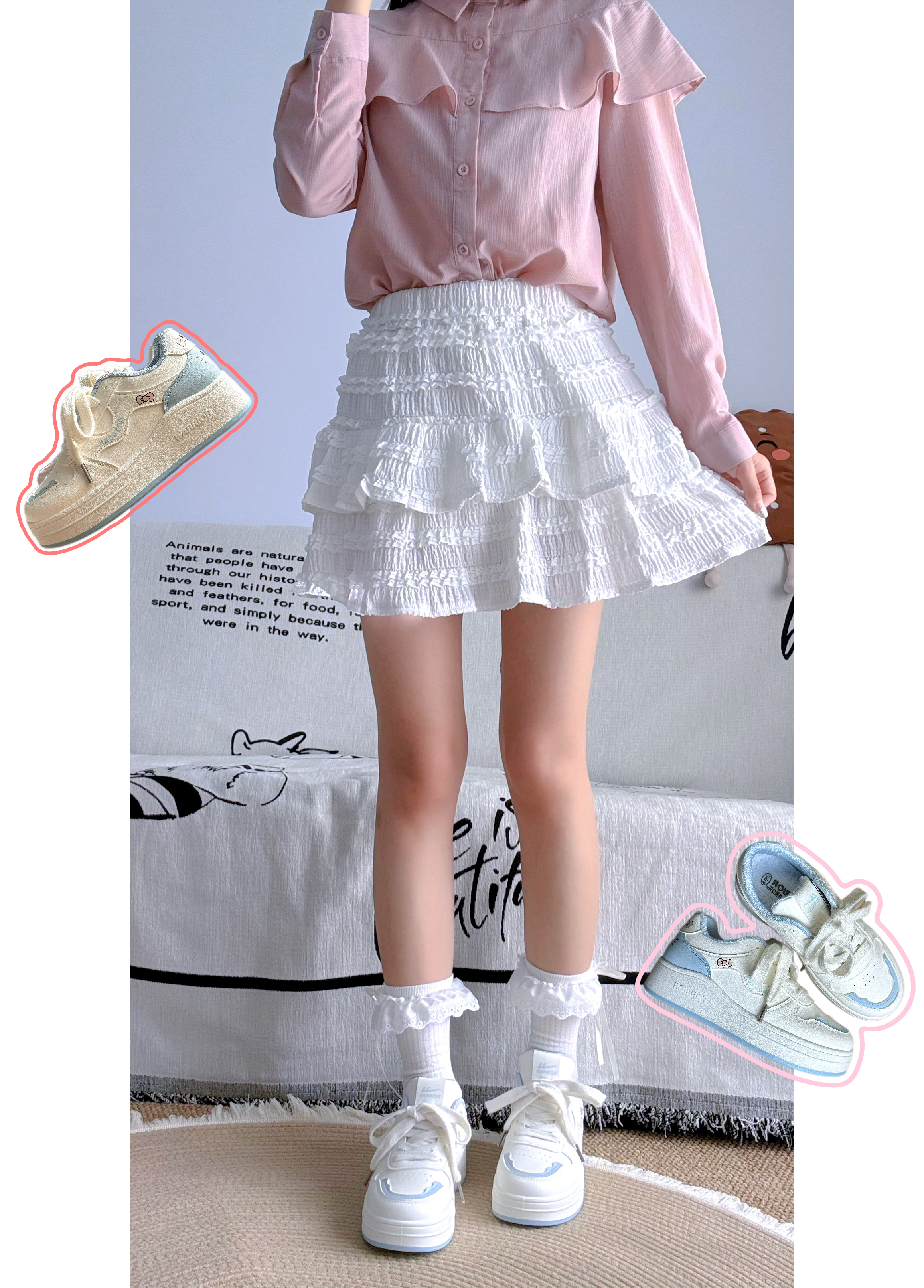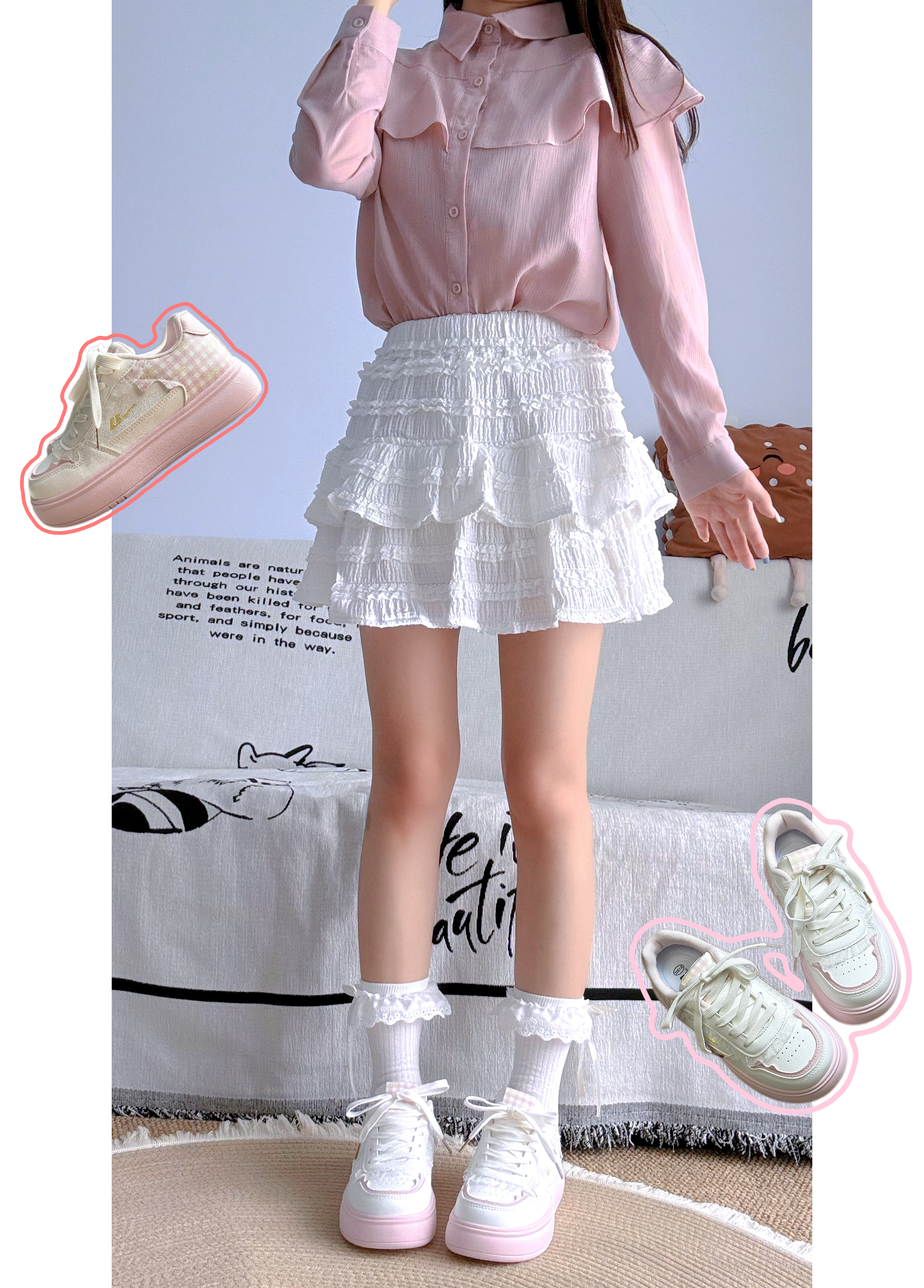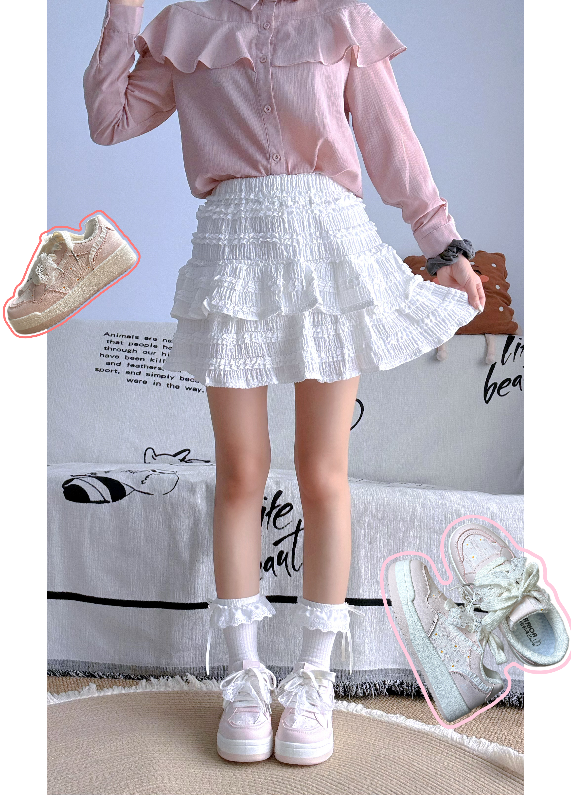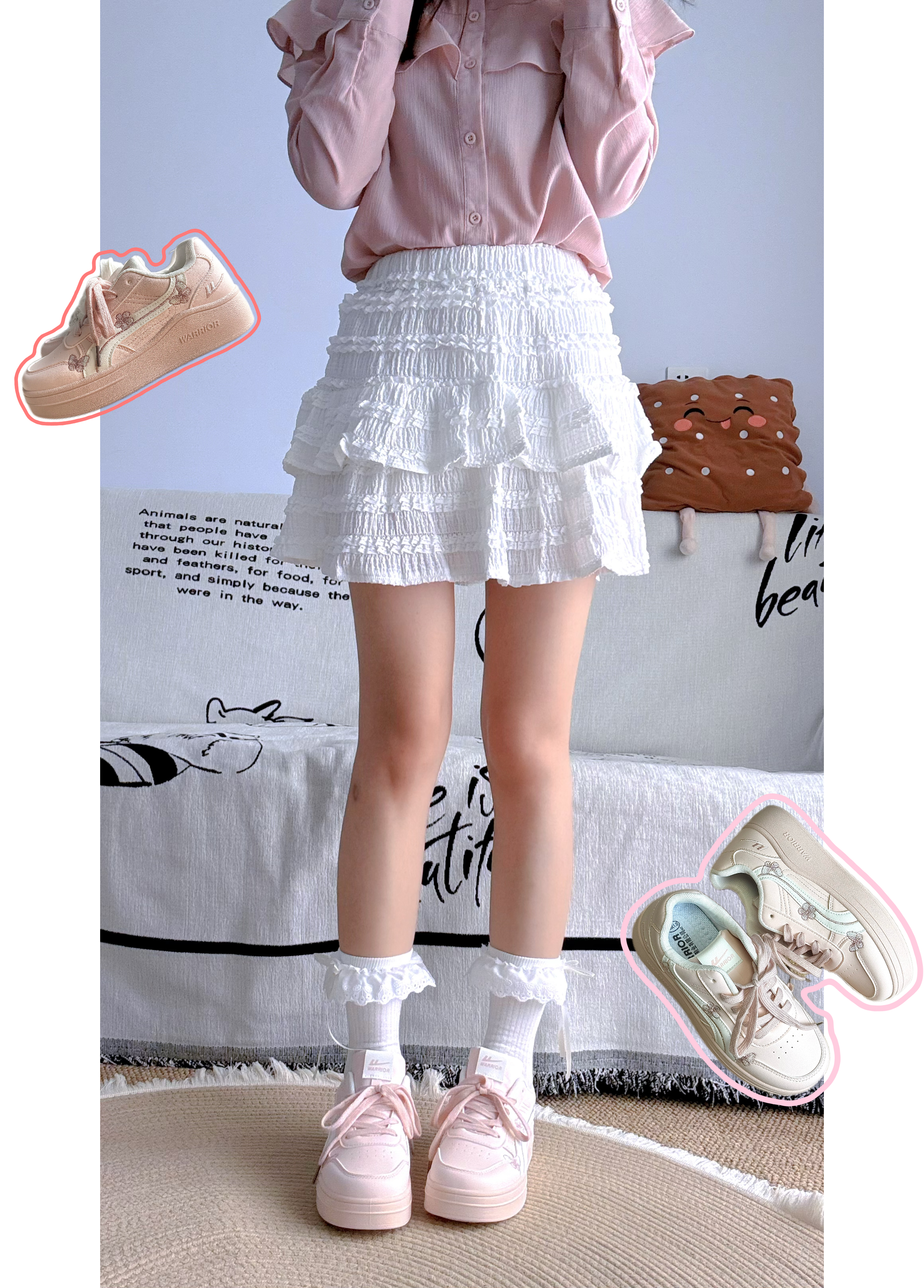 4️⃣双不同🥛奶fufu的配色+松糕底,💕搭粉色上衣+百褶裙👗脚感软乎乎像踩棉花☁️上脚超方便还显腿长🥰逛街暴走都不累!🧸通勤约会都能打!
