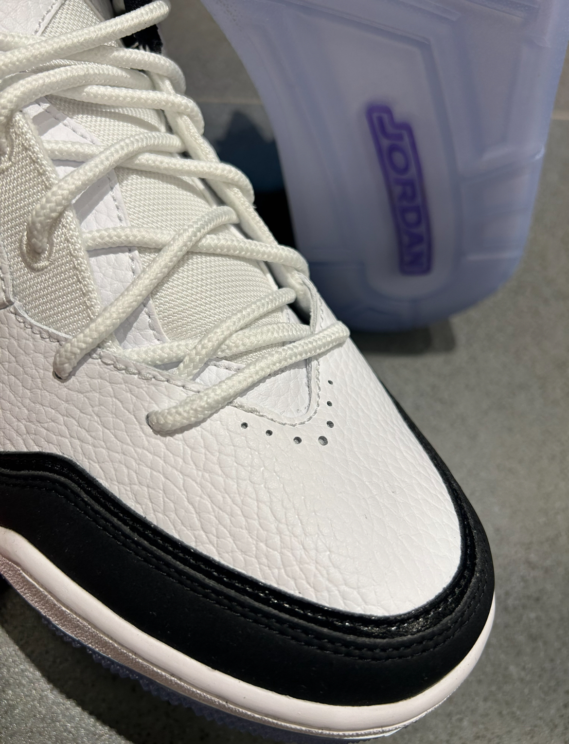 今天开箱拍摄分享的是JORDAN COURTSIDE 23复古篮球鞋 整个大底采用了与AJ3相同的设计 配色上致敬了AJ11经典的康扣配色 采用了水晶底设计 配色简单大气 上脚也是相当百搭 最值得称道的是性价比不错。