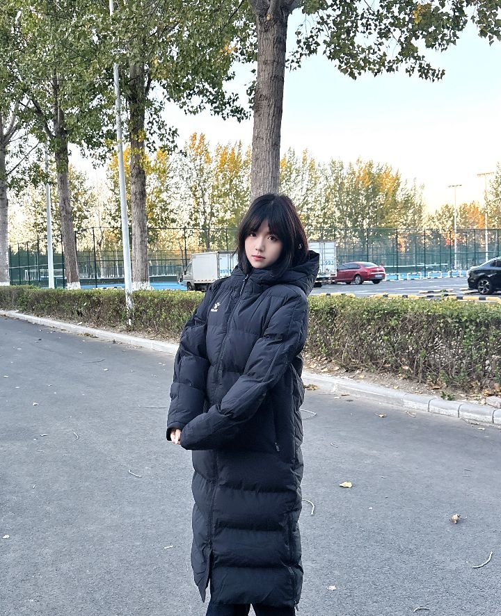 早八神器黑色长款羽绒服,长款廓形从颈间裹到脚踝,把冷风都挡在外,一件承包整个冬天的温暖与风格,运动系女生的过冬刚需就是它~