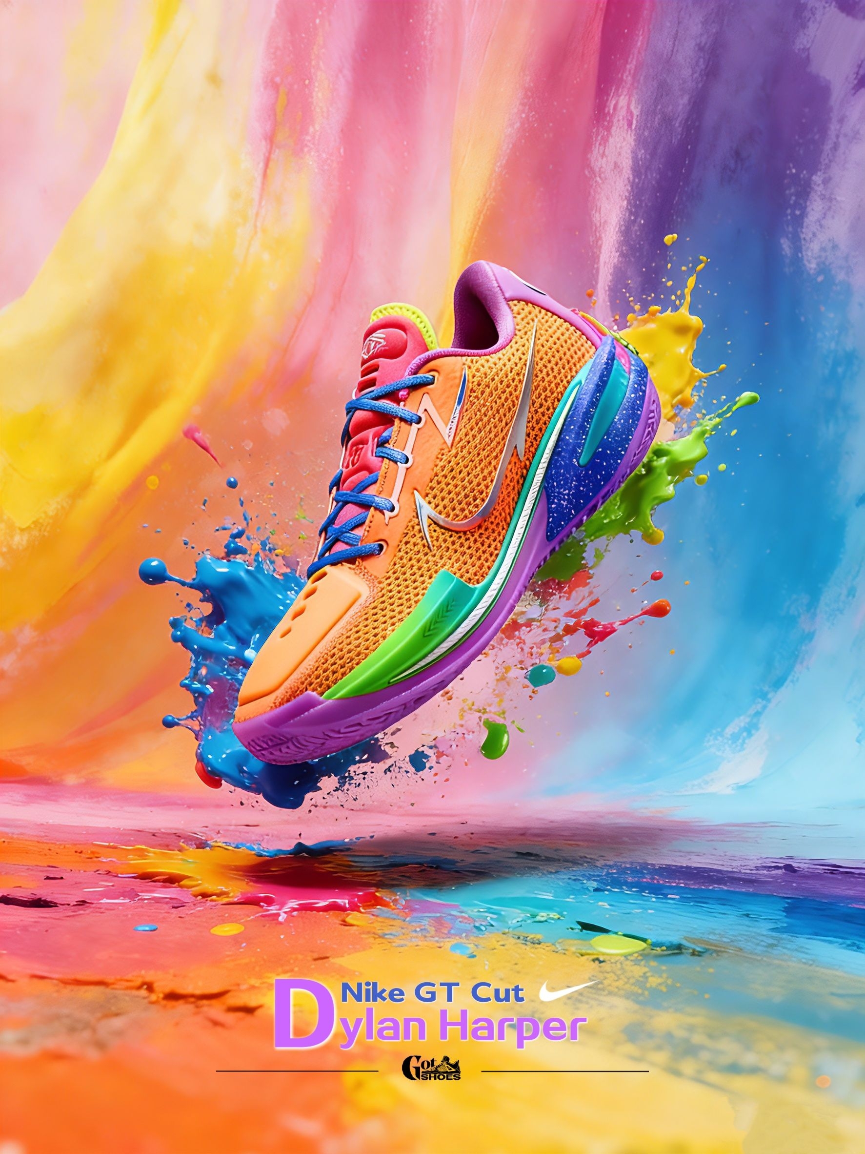 GT Cut 初代凭借其卓越性能被誉为“年度实战神鞋”,如今再度迎来全新配色。此次是为马刺队新星、榜眼秀迪伦·哈珀打造的专属球员版配色。 设计上采用了大面积充满活力的橙色网眼材质,并大胆融入粉紫、青绿与蓝黄等色彩进行撞色点缀,整体呈现出丰富而鲜明的视觉层次。细节之处同样精心:鞋舌饰有代表纽约的“212”区号与“NY”字样;左脚后跟设有镭射纽约标识及三角州标志,右脚后跟则印有专属个人标...