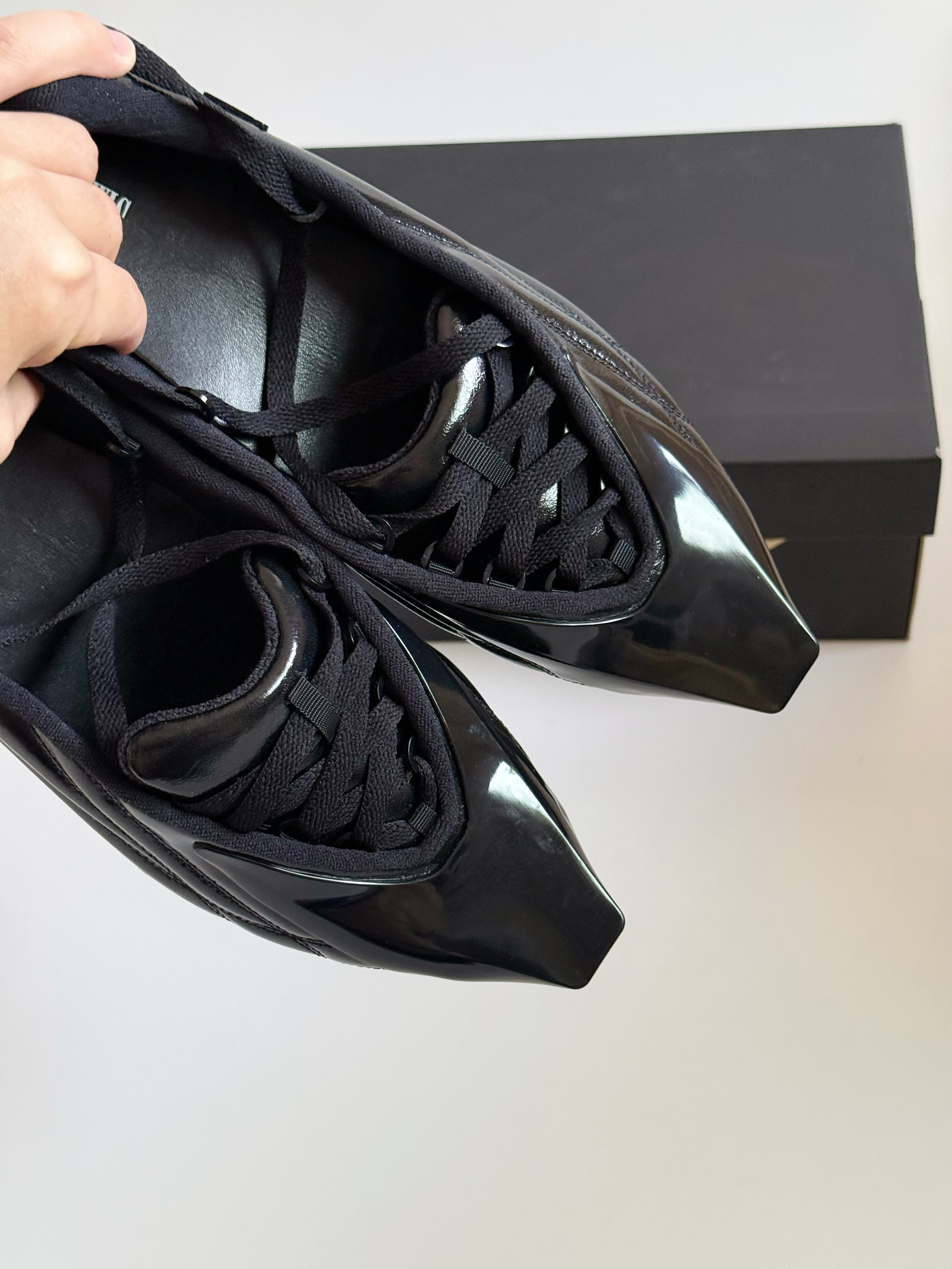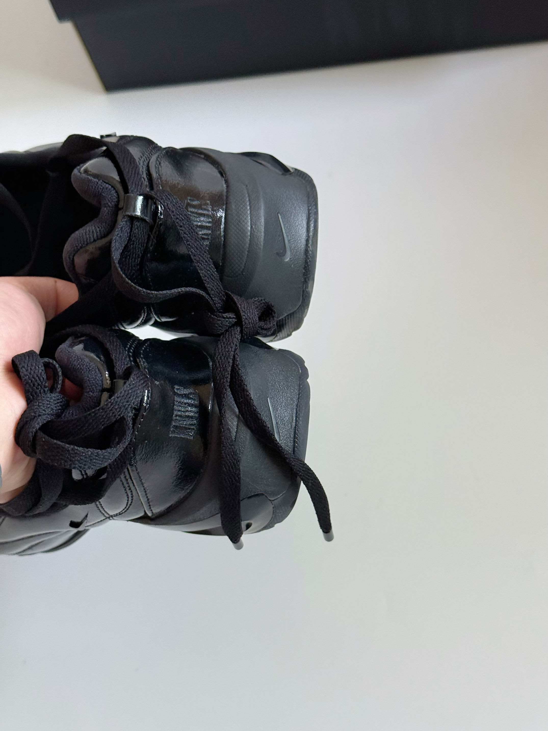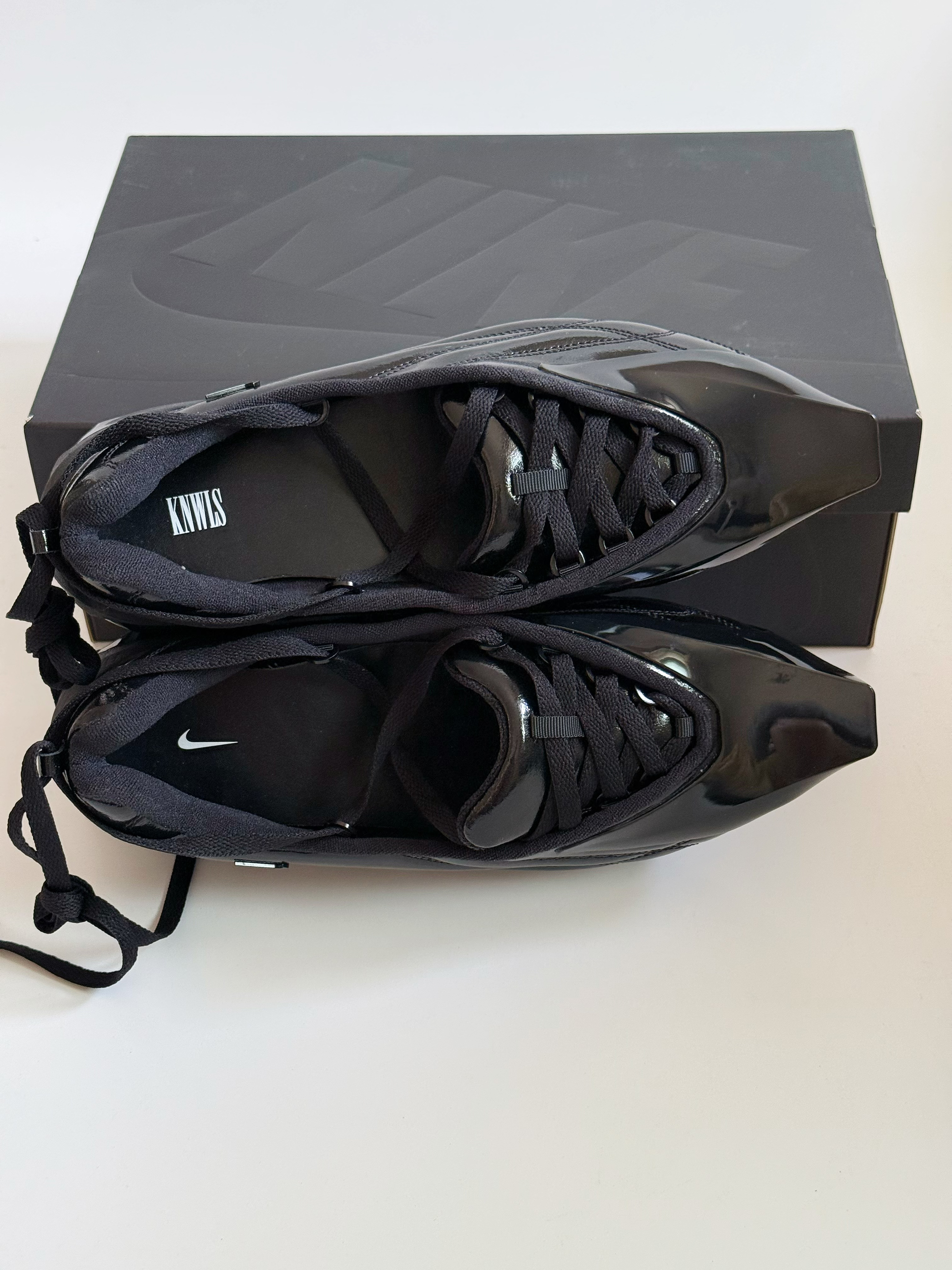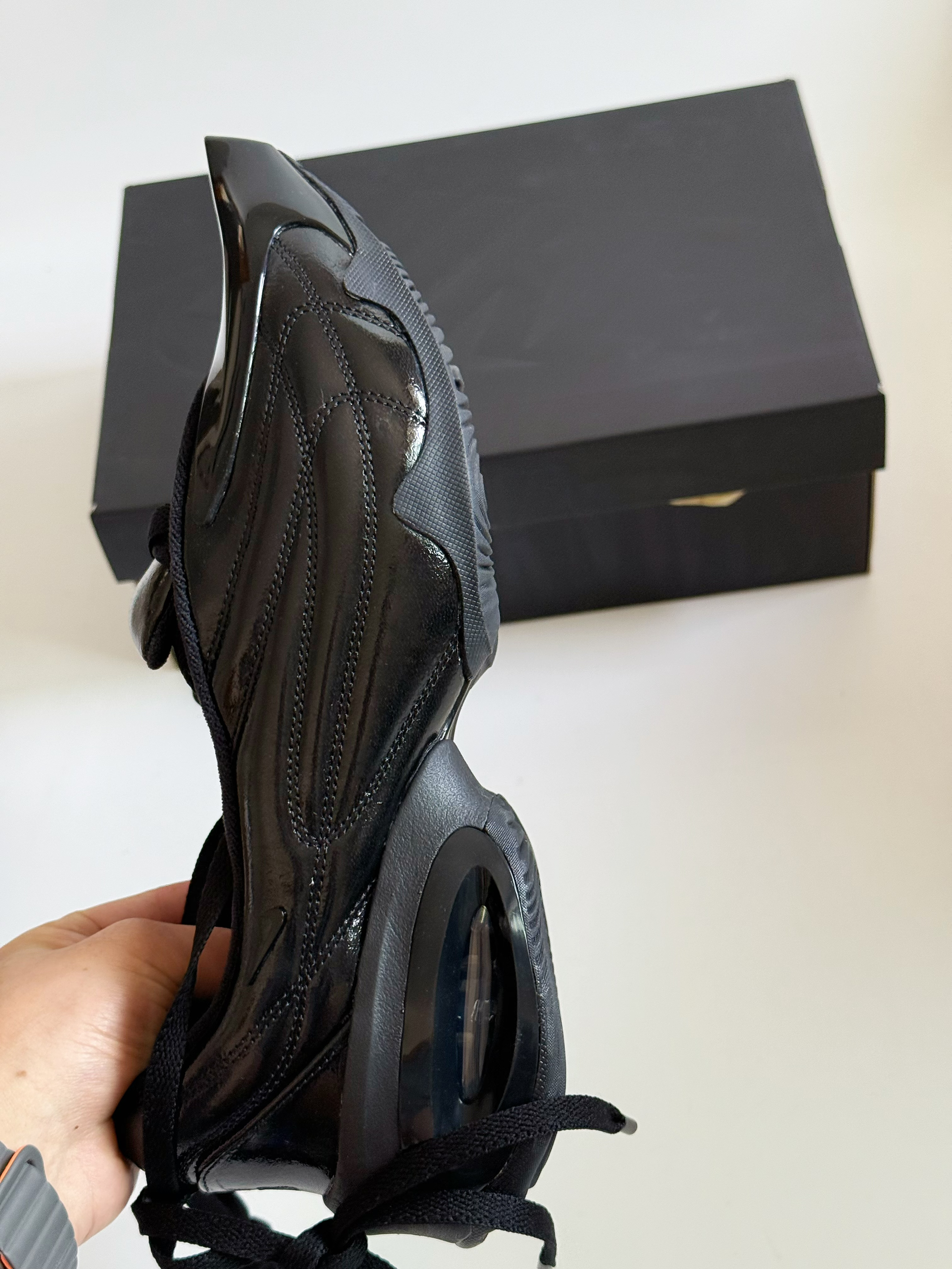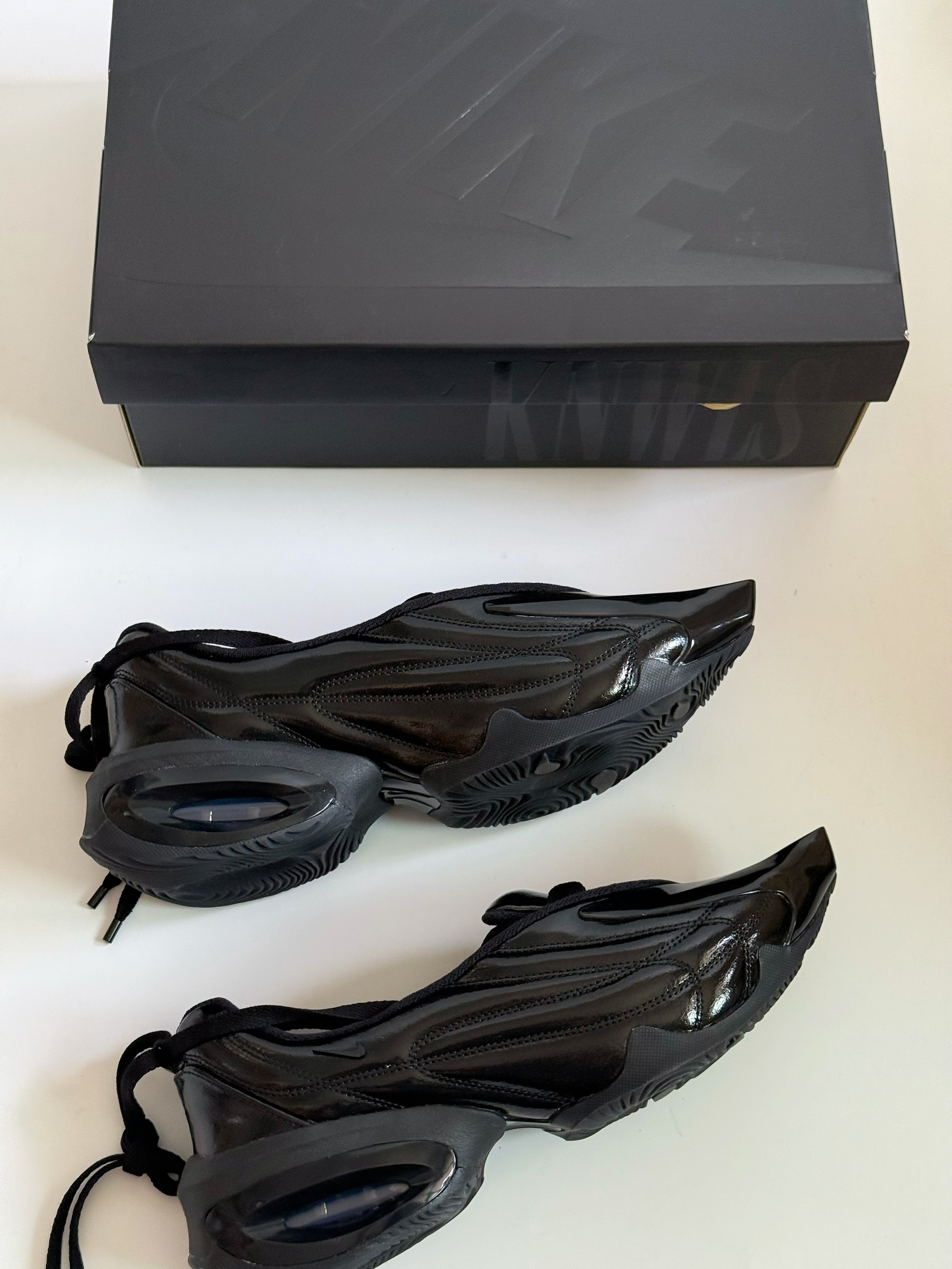 哈喽大家好呀~ 今天的这双Knwls联名的AirMax系列我真的也算是第一次见到了 联名鞋型为 AirMaxMuse 👟 但是这次定义为芭蕾舞鞋 镂空的脚面设计 这个👆🏻点设计的还是蛮新颖的 看来又是一双适合于穿搭潮人 凹造型的酷酷黑武士