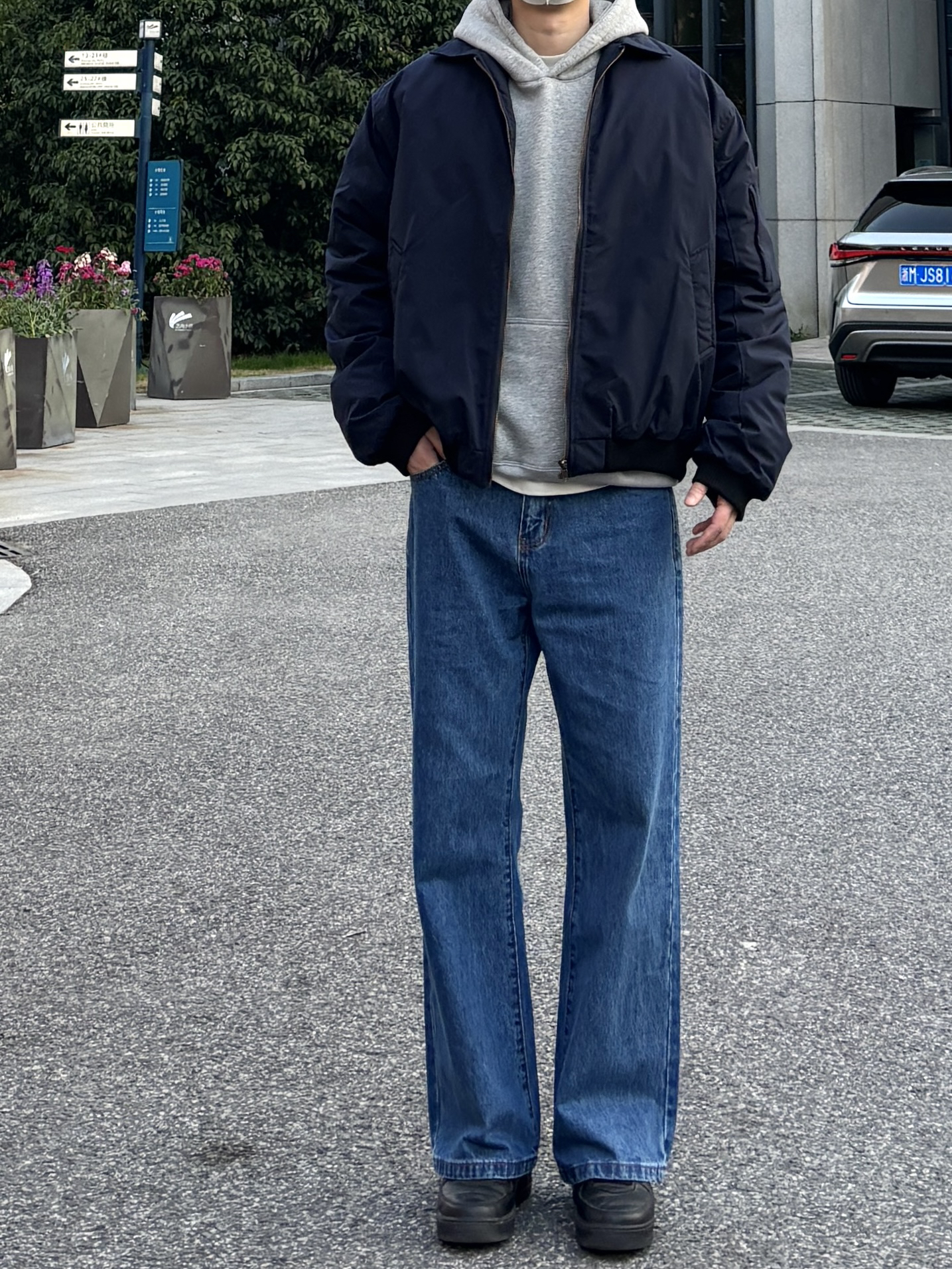 冬天出门总在“穿太多臃肿”和“穿太少冻人”之间纠结?今天这套实穿耐看的look,分享给还在头疼怎么穿的男生🙋♂️ 藏青色空军棉服搭配浅灰色连帽卫衣,宽松版型叠穿更显随性,层次感和保暖度都up。下身深蓝色微喇牛仔裤搭配简约经典黑色皮质低帮板鞋,利落又复古,整体配色控制在三种基础色内,简约高级又不失松弛感~ - 今日穿搭 衣服裤子:NICE LILI 鞋子:AF1