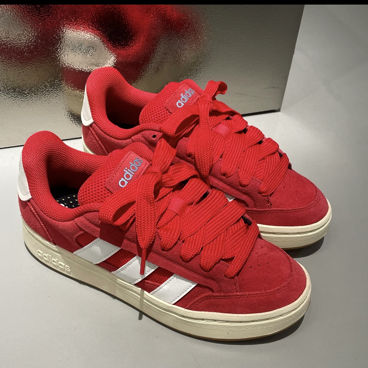 当经典网球鞋基因与复古“面包”廓形碰撞,再注入一抹高纯度的宝石红——这双Adidas Grand Court Alpha便不再是普通的运动鞋。它丝滑的皮革光泽,宛如经过雕琢的红宝石,在每一步中流转低调的奢华。加厚的鞋舌与鞋帮包裹感十足,确保复古外型下的全天候舒适。无论你想成为人群焦点,还是为基本款注入灵魂,这抹浓郁而高级的红色,就是你无需多言的风格宣言。 1. 高街焦点风 · 核心公式: 一身...