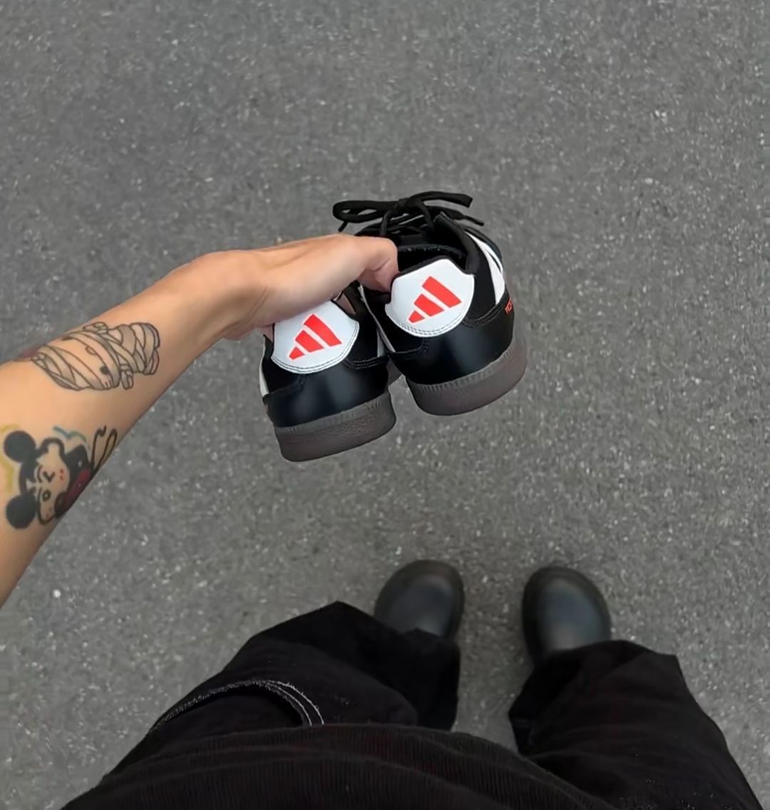 这双 阿迪的低帮德训鞋真的很酷! 鞋头的山字头设计我很喜欢,而且还是翻毛材质很有质感! 侧面是Adidas标志性的三条杠,以往不同的是这款做了加款跟斜形的设计,很独特! 最吸引🤩我的还是鞋后跟的橙色logo,颜色亮眼很吸睛 鞋子整体是织物鞋面,穿上脚虽然轻盈舒适,唯一缺点是不太透气,汗脚的朋友们可考虑后再入手 但我就冲它这颜值就闭眼入了