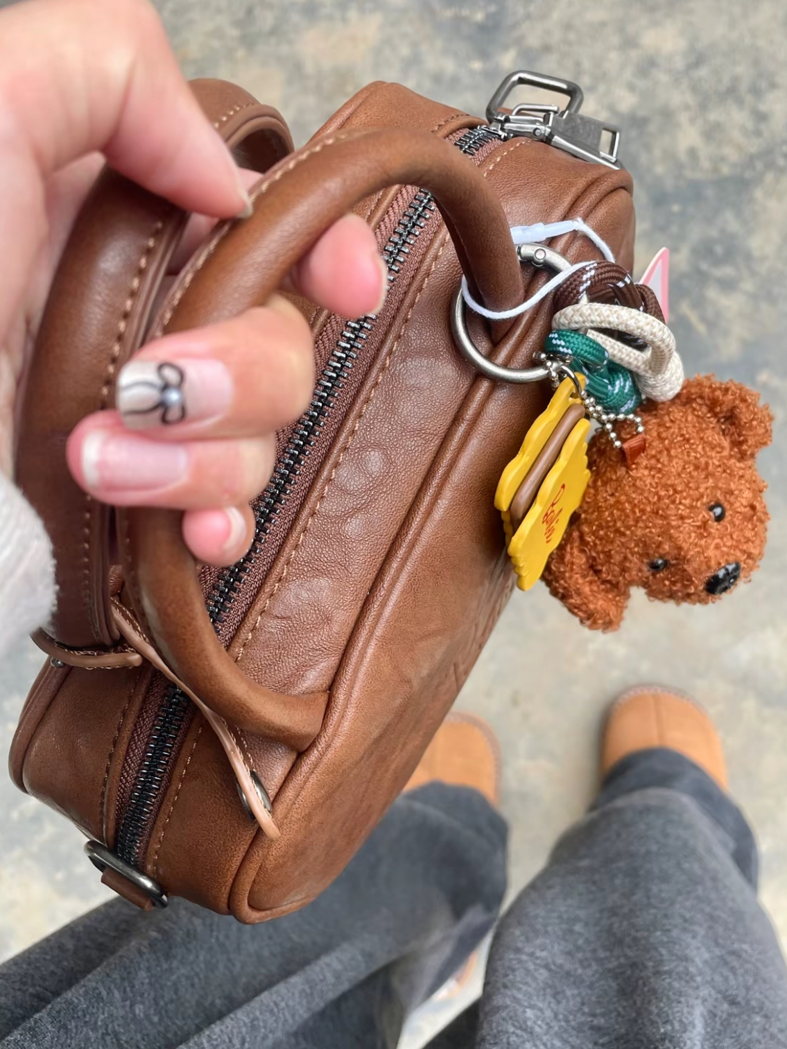 介个小方包搭配上这个小狗也太吼好了叭 巧克力棕复古又高级🍁 皮也不是那种很容易皱巴的那种 而且比我想象的大好多⭐️ 最起码可以装下一个散粉 充电宝 耳机 唇釉 还能空出好多来,还有斜挎带 多种背法非常适合秋冬背⛄️