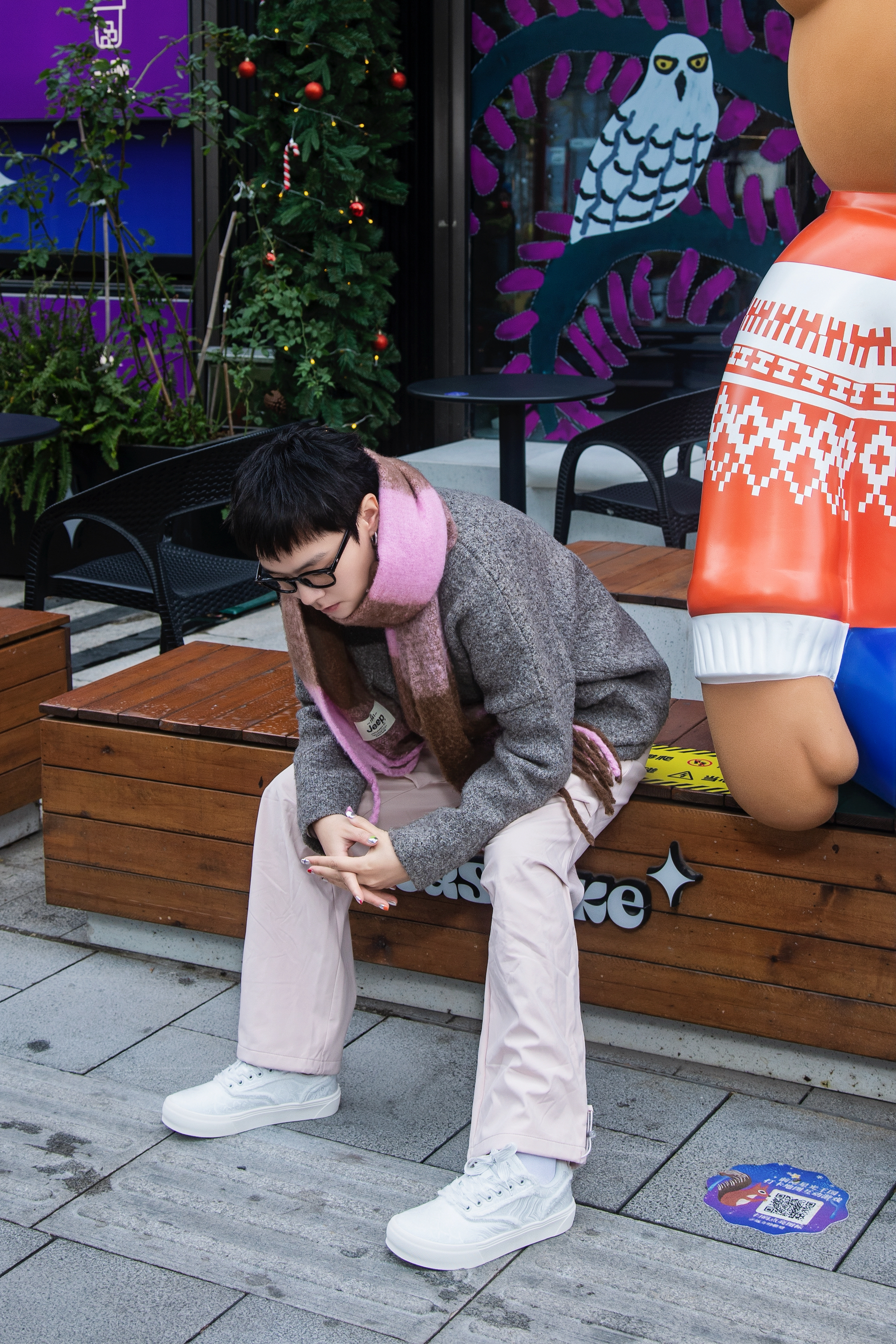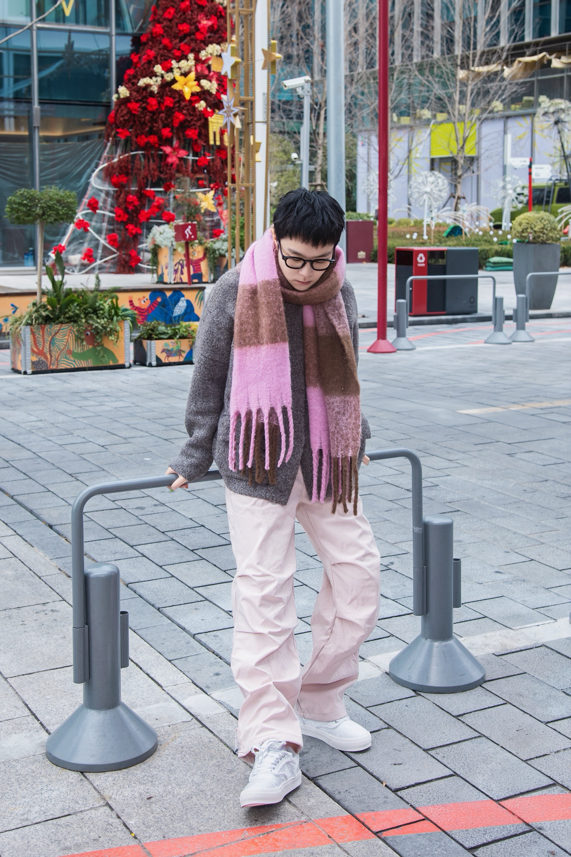 年度穿搭怎么能没有软糯糯的毛衣? 分享一套韩系毛衣穿搭 穿搭指南: 上身一件白色德绒打底 外搭一件灰色毛衣开衫 羊绒面料太暖和啦 配一条浅粉色伞兵裤 灰粉低饱和搭配超温柔的 上脚tcellars休闲板鞋 简简单单的白色怎么搭都好看 戴一条粉棕色大围巾 韩系欧巴的感觉这不就有了