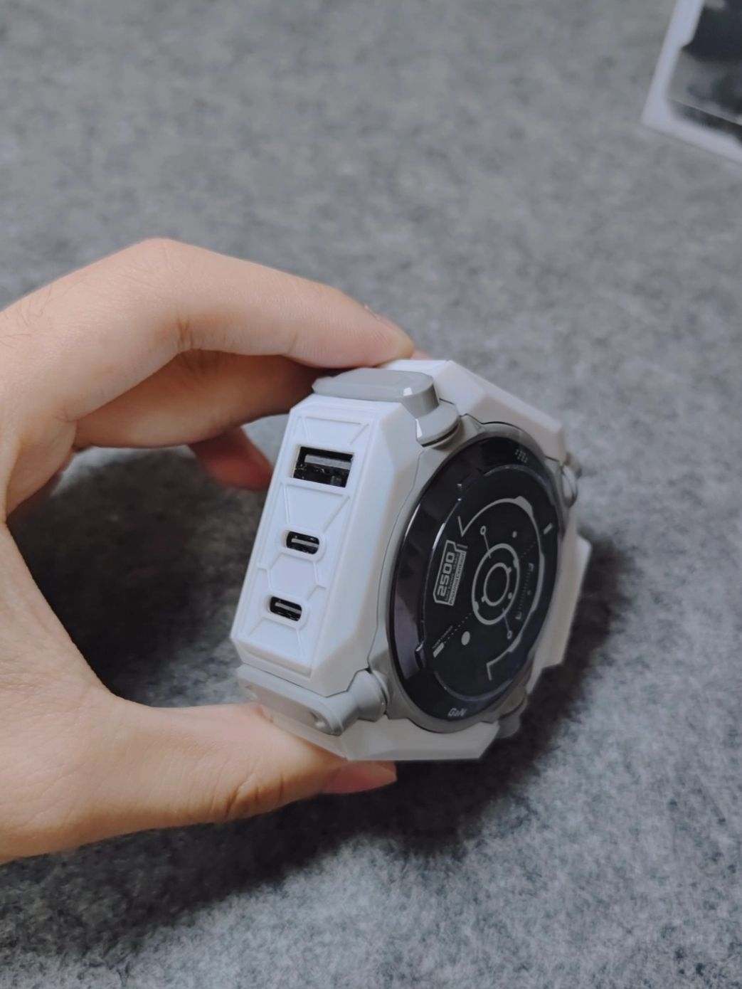 ⚡我的这款流浪地球充电头,先不说性能🌚,就说它的外观有没有迷到你吧 🌠机甲风的外形,就像一个变身器,非常炫酷⛰️,还能看到里面的电路板⚡ ⚡充电的时候会有炫酷的灯光💡亮起,还可以调换不同颜色的灯光😎,特别有感觉 70w碳化镓快充头,并且三合一☀️,大多数的设备都适用,充我的手机是快充⚡,速度挺快的🚅 他还送了一根充电线和很炫酷的胸针🏖️,胸针带着真的巨帅 咱就是说这样子的充电头真拒绝不了